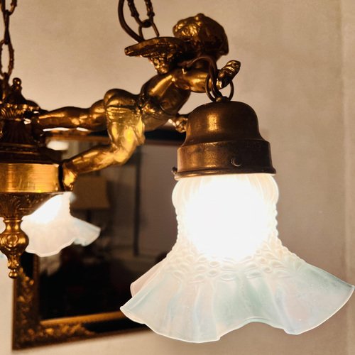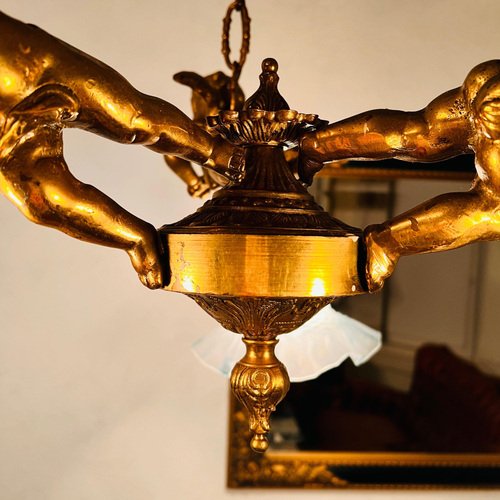 19th Century French Bronze Chandelier with 3 Angels Cherubs