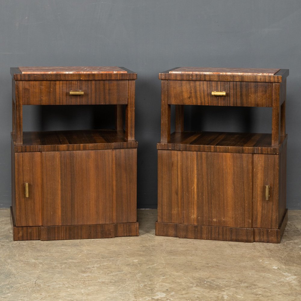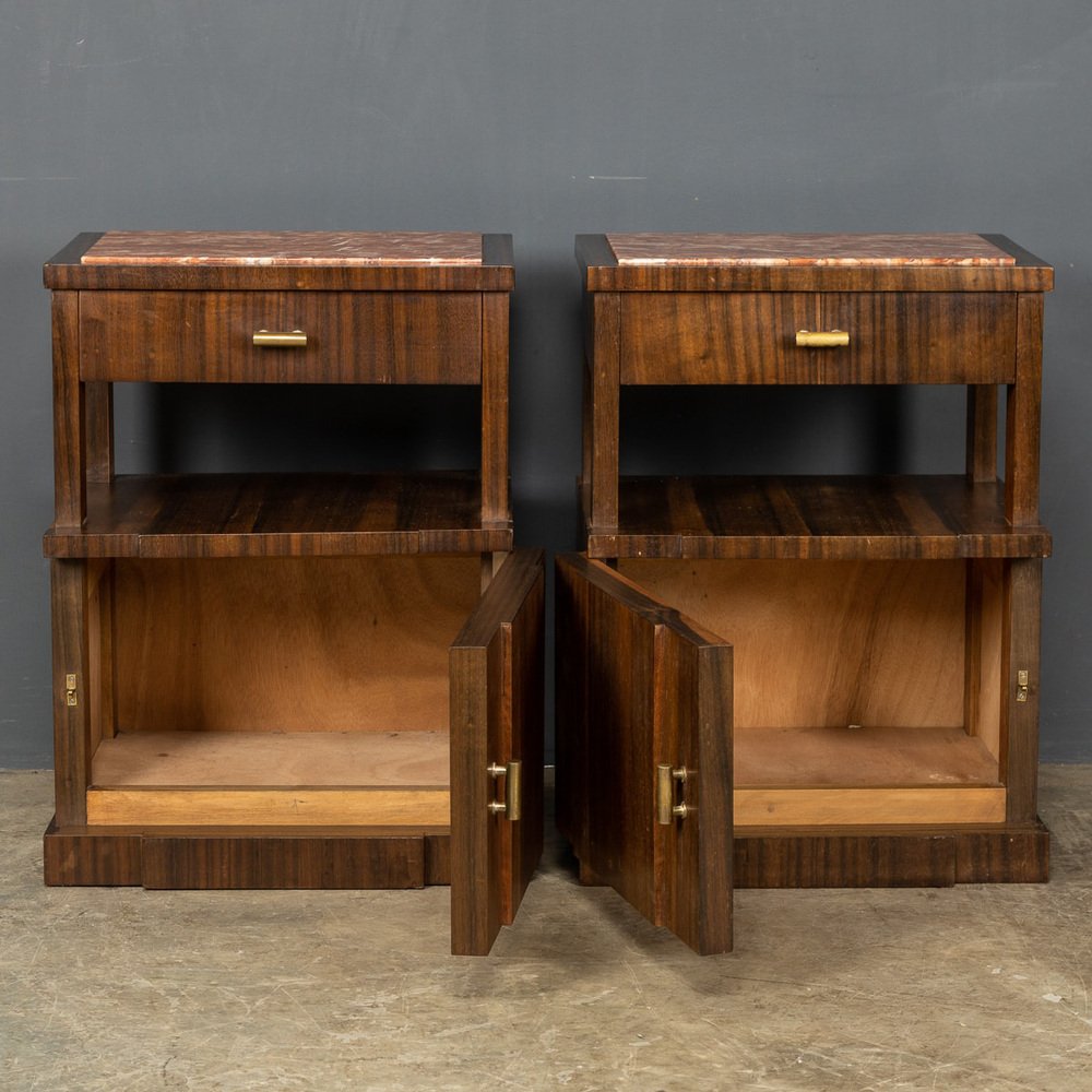 20th Century Italian Kingwood & Marble Bedside Cabinets, 1950s, Set of 2
