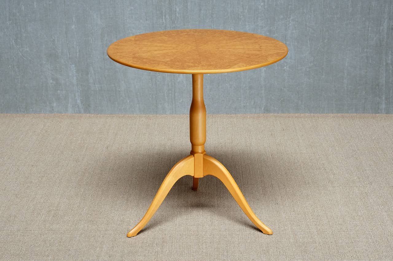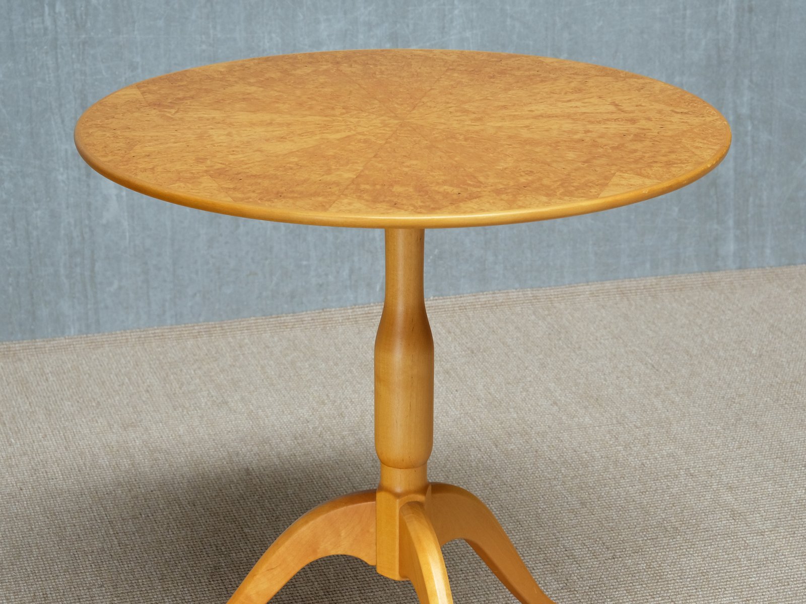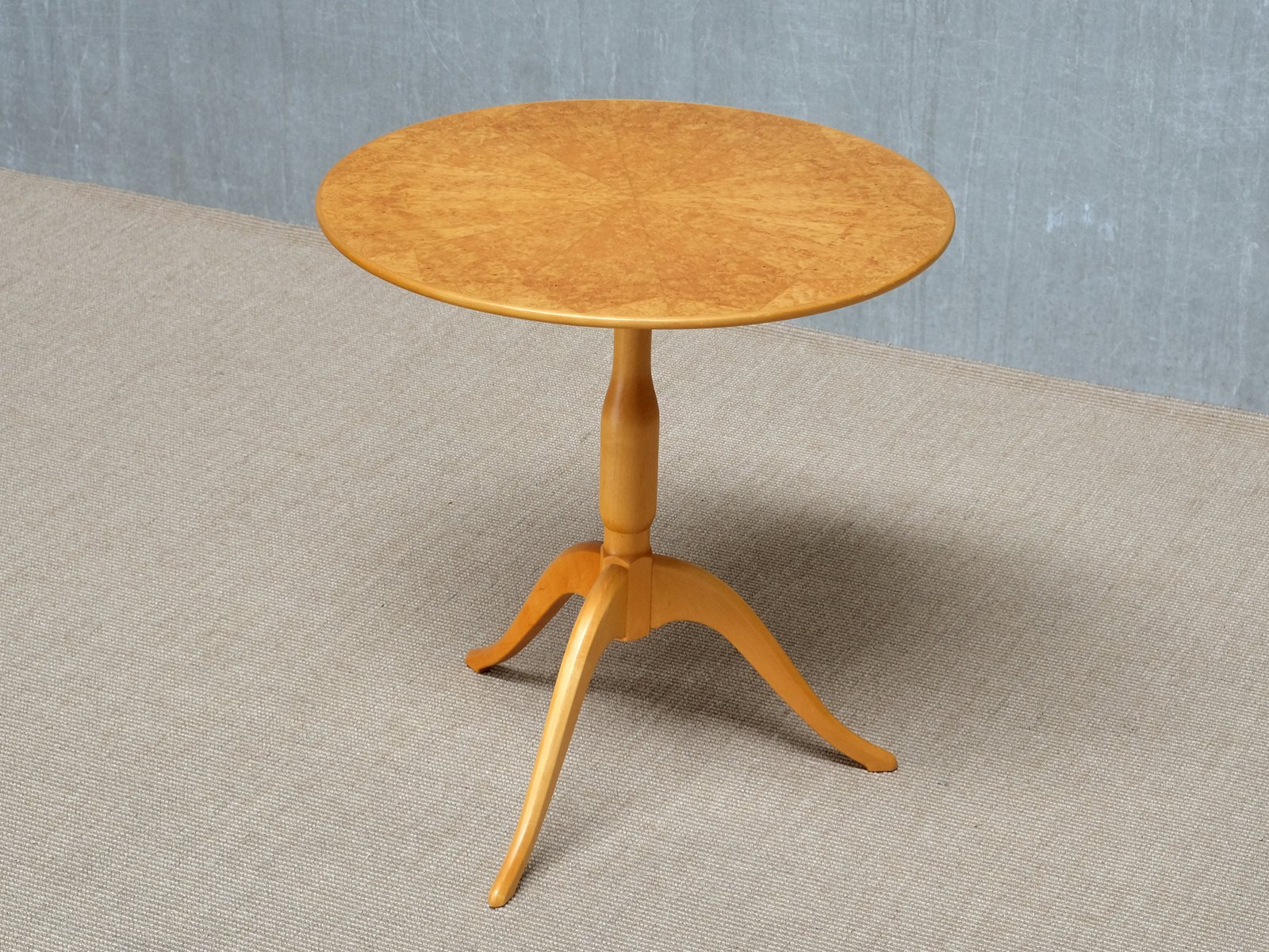 3-Legged Side Table in Masur Birch by Carl Malmsten, Sweden, 1950s