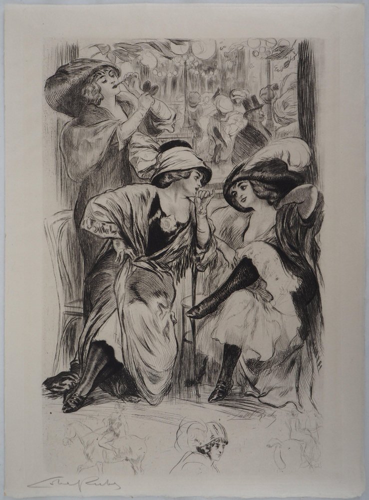 Alméry Lobel Riche, At the Cabaret, Original Signed Engraving