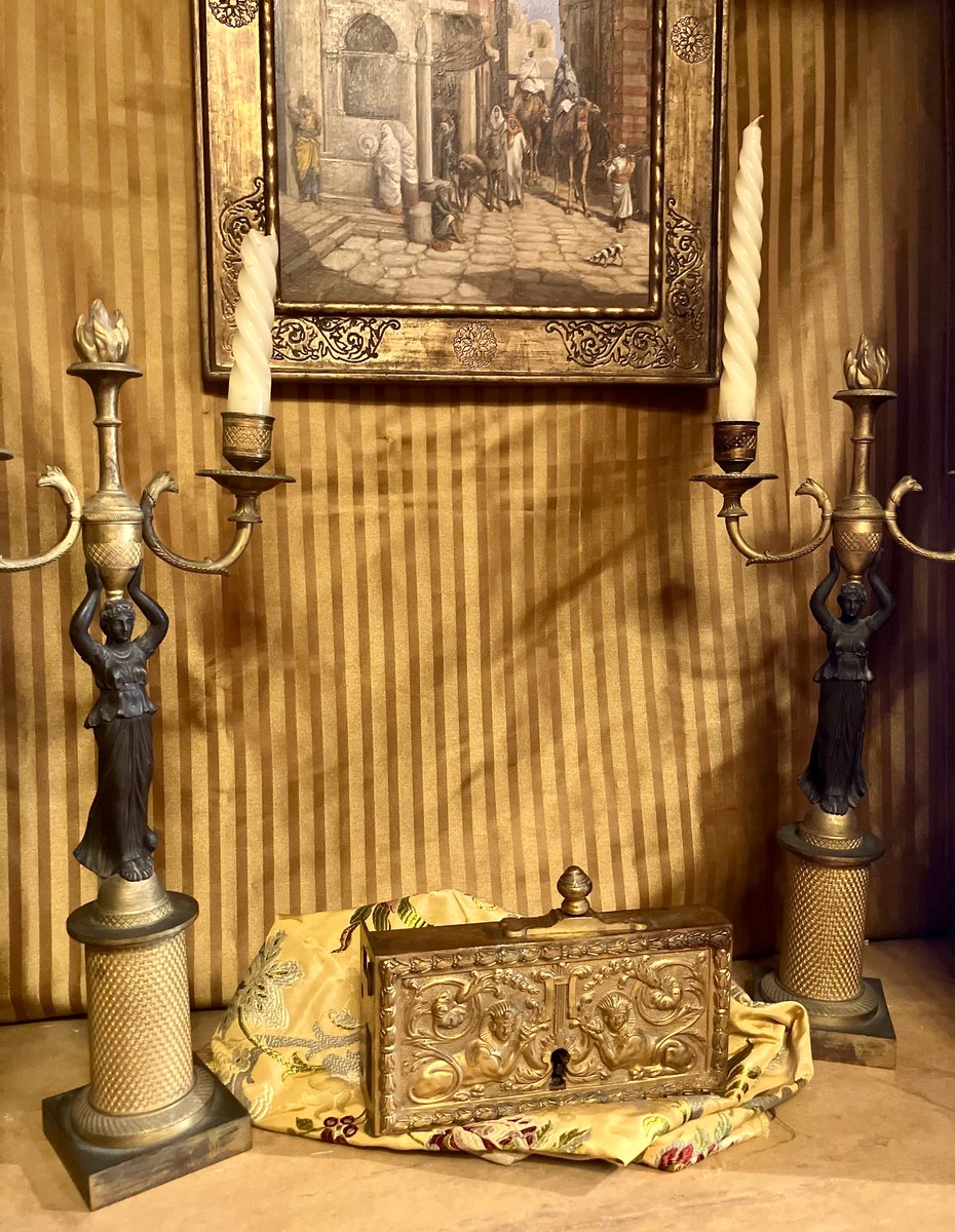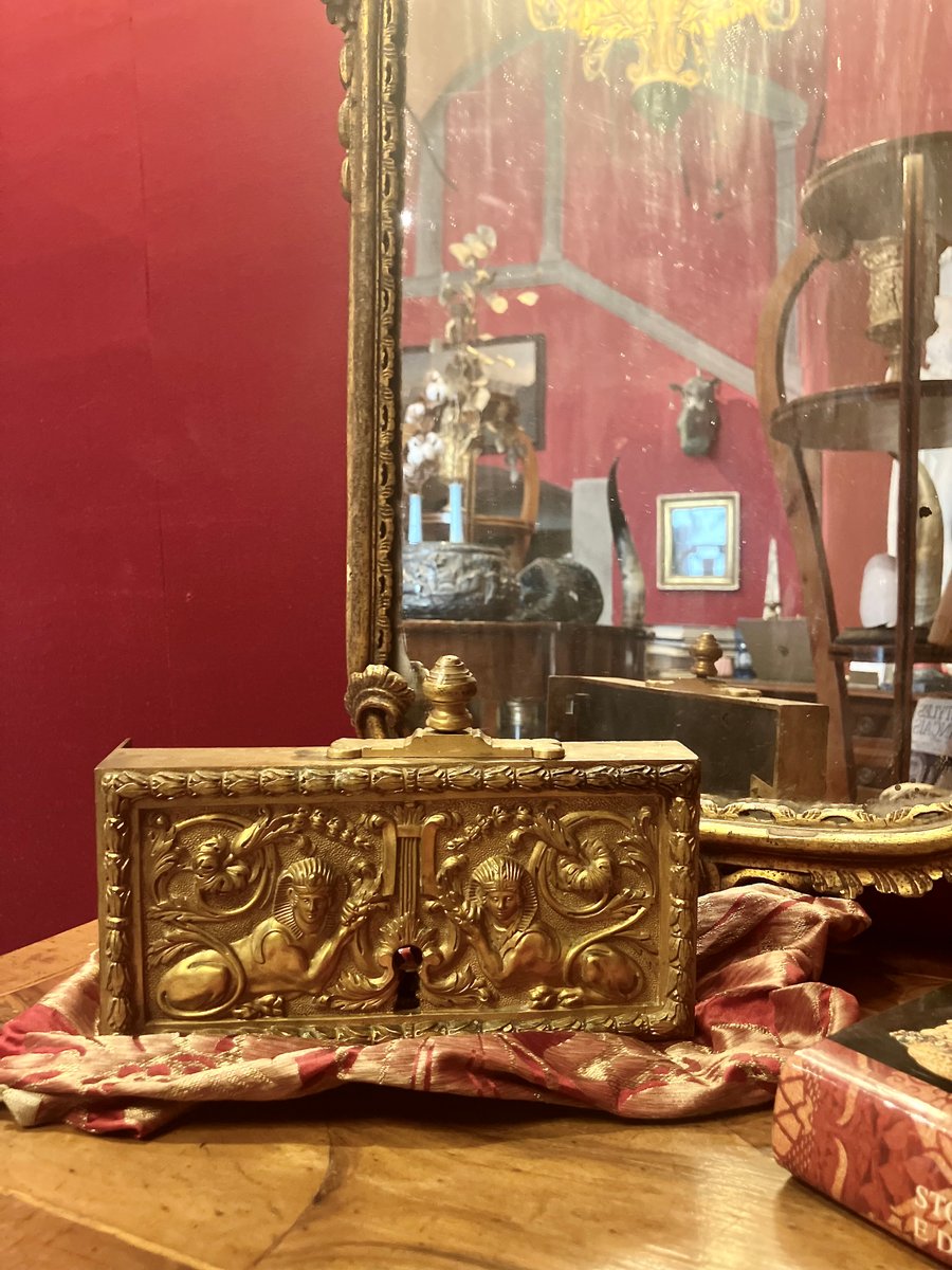 Antique 18th Century Door Lock in Gilt and Chiseled Bronze, France