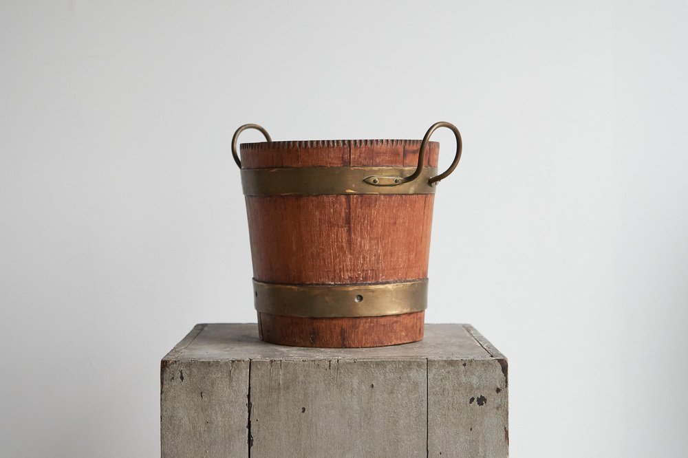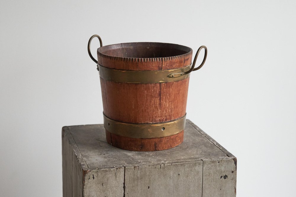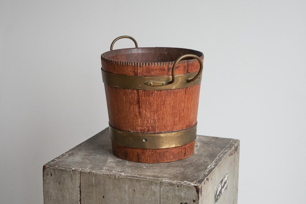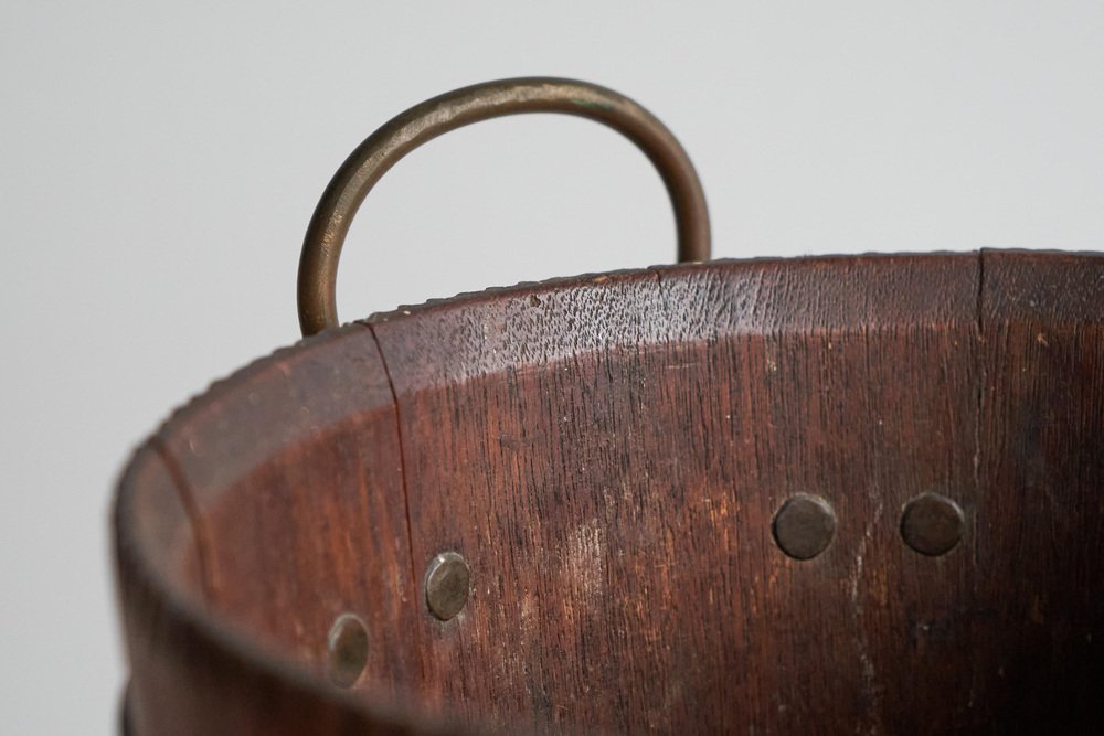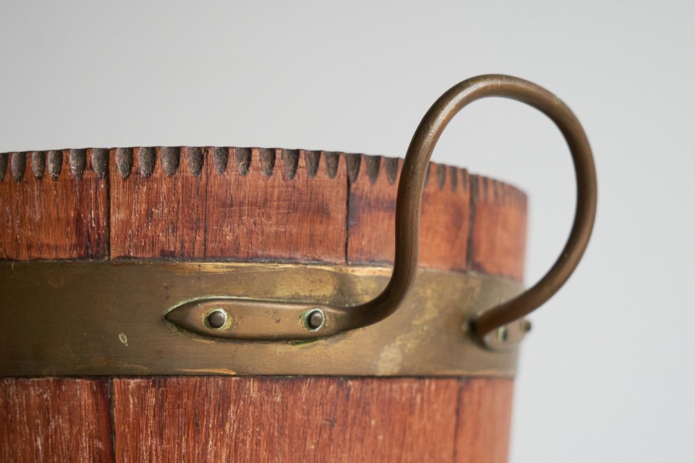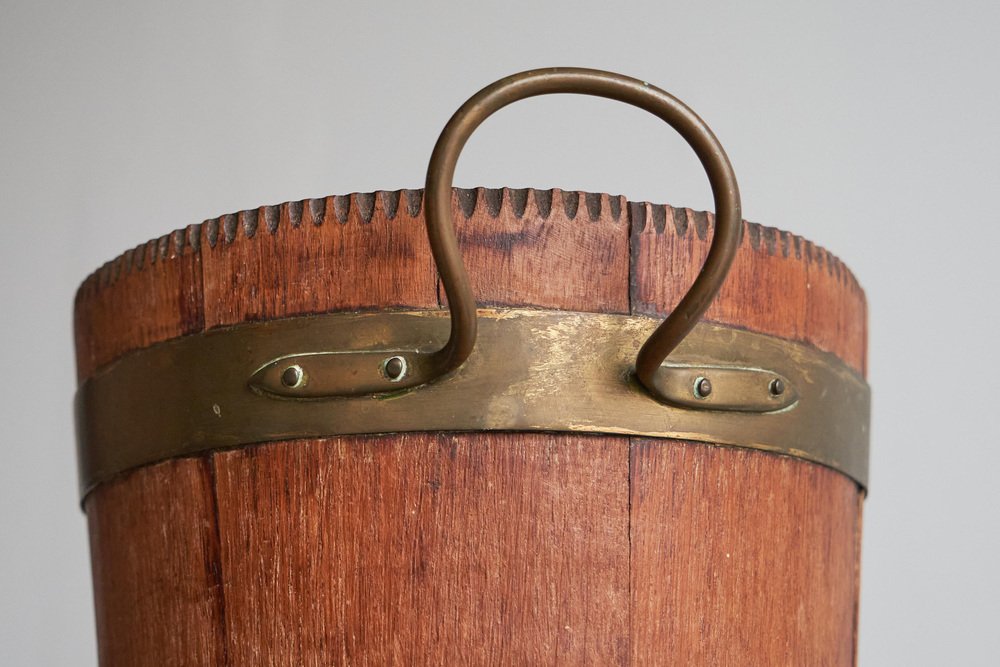 Antique Bucket in Wood and Patinated Brass, 1890s