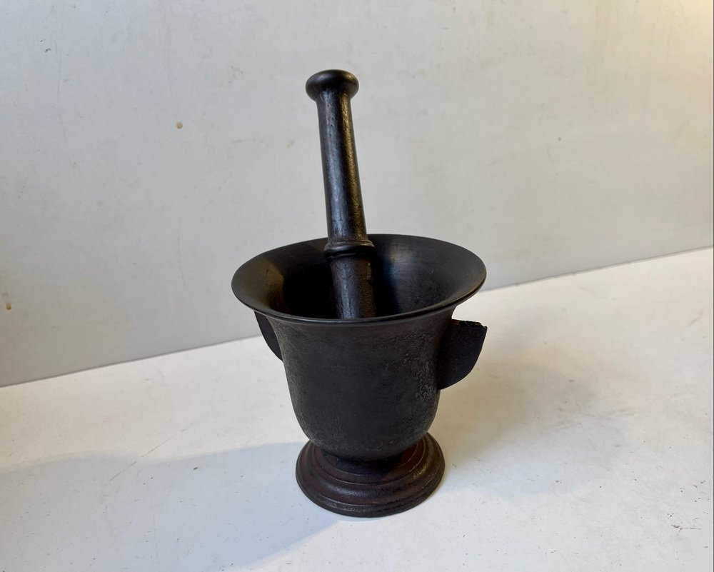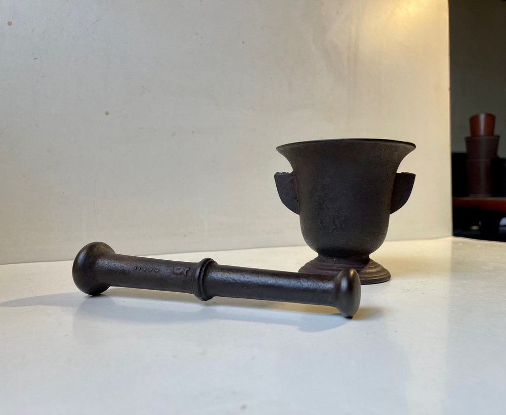 Antique Cast Iron Mortar and Pestle, Set of 2