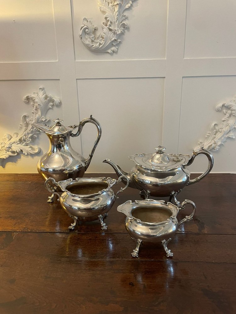 Antique Edwardian Silver Plated Tea Set, 1900s, Set of 4