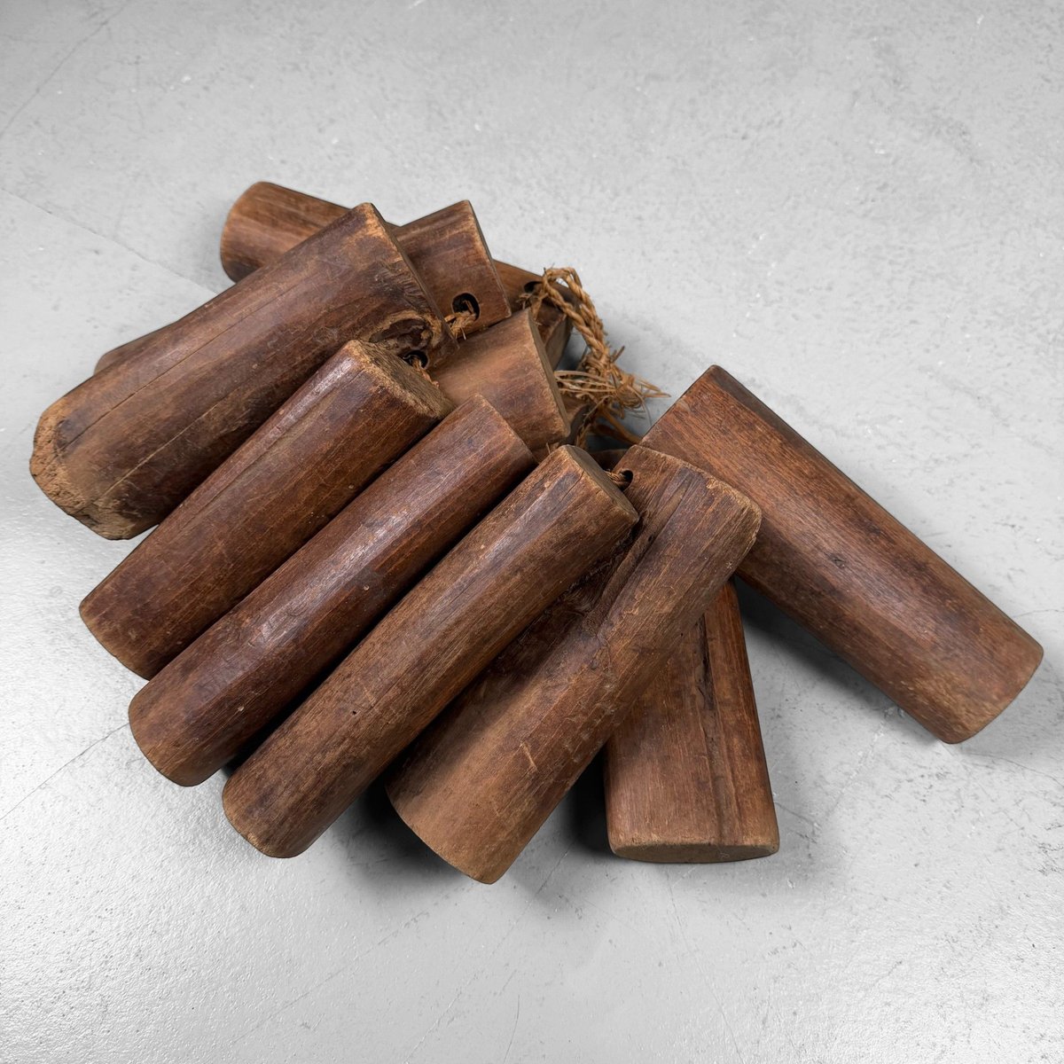 Antique Japanese Loom Wooden Decoration, 1900s, Set of 11