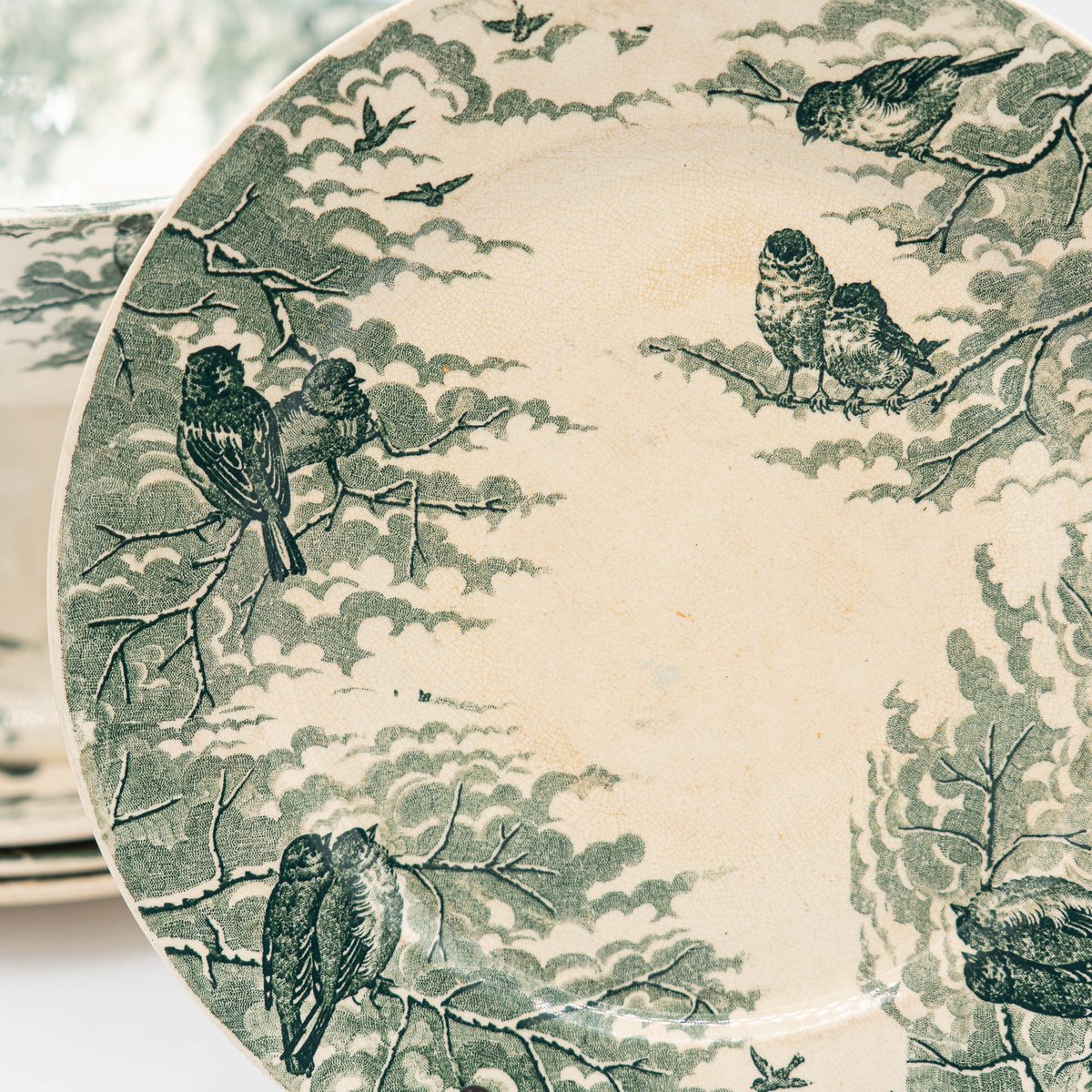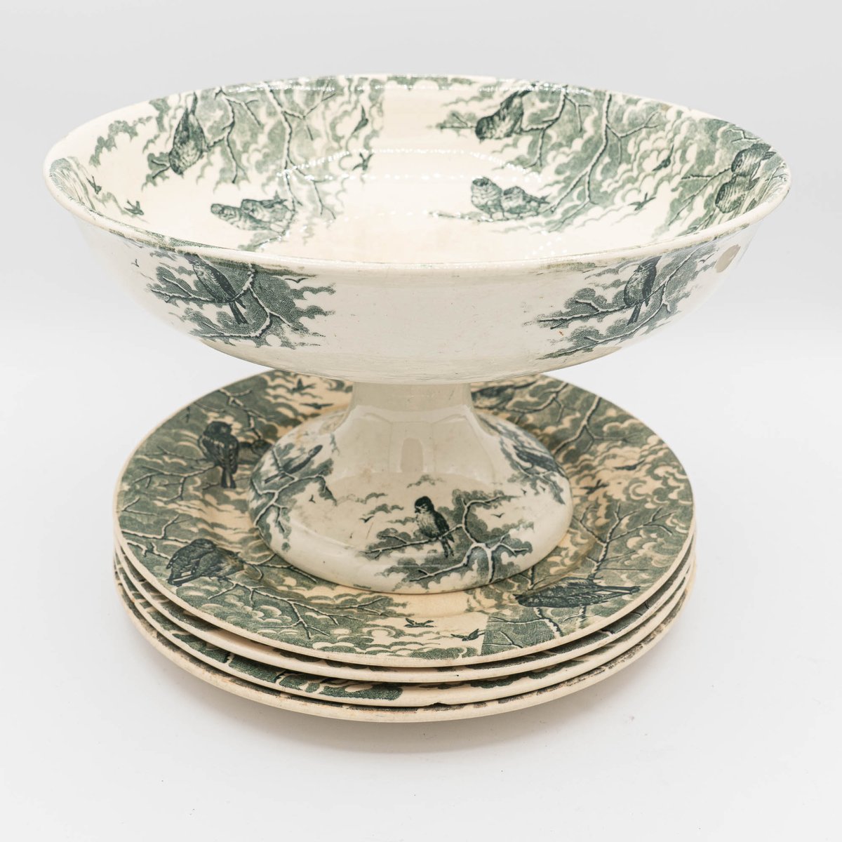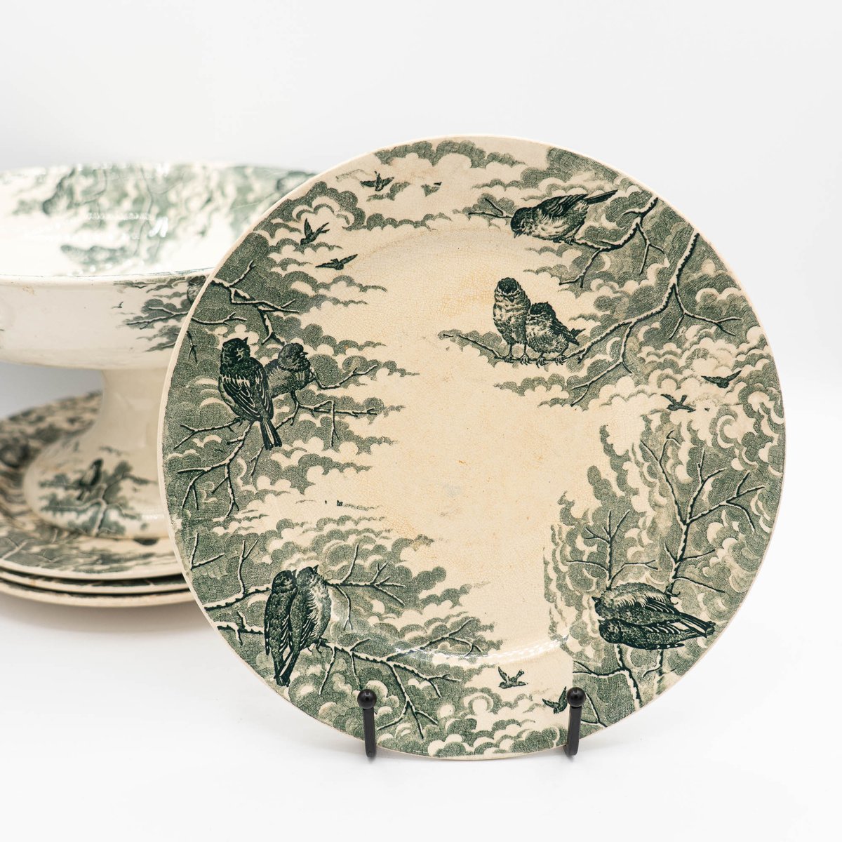 Antique Neige Cake Stand and Plates from Sarreguemines, 1900s, Set of 5