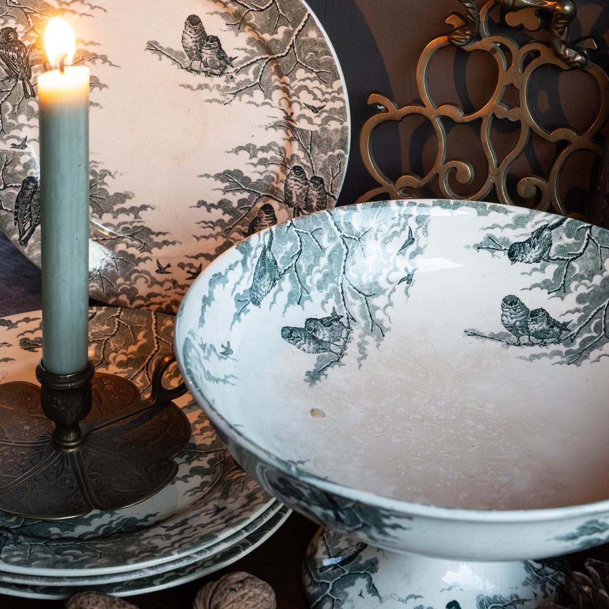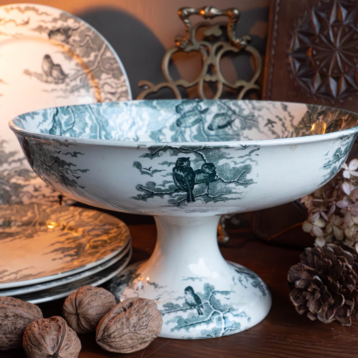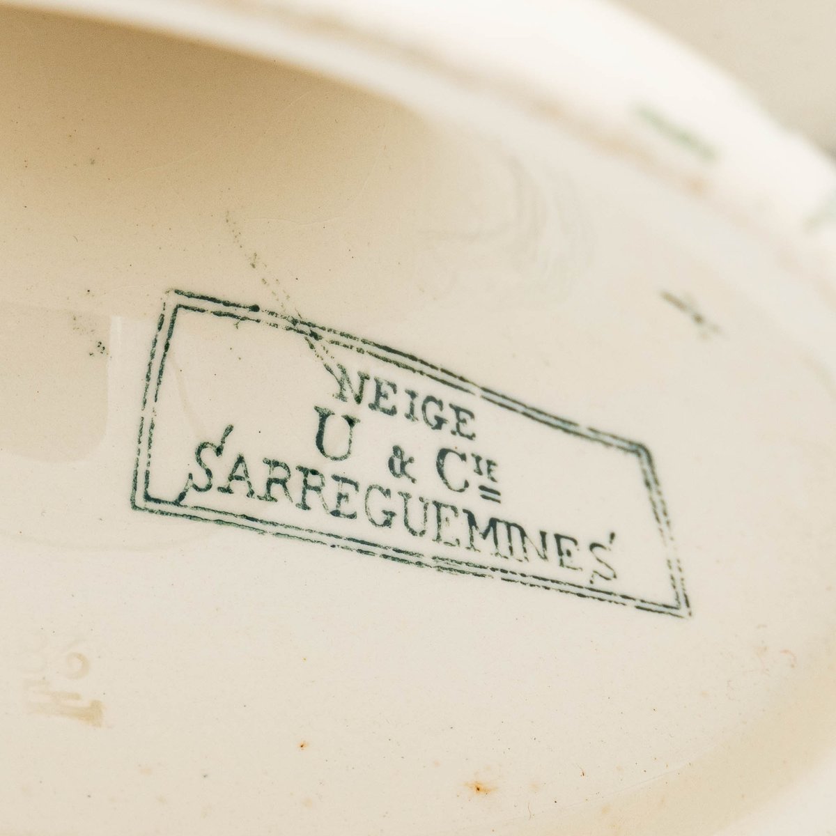 Antique Neige Cake Stand and Plates from Sarreguemines, 1900s, Set of 5
