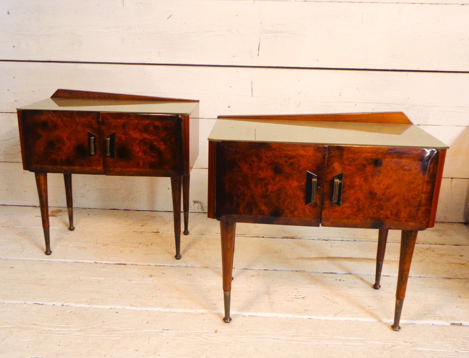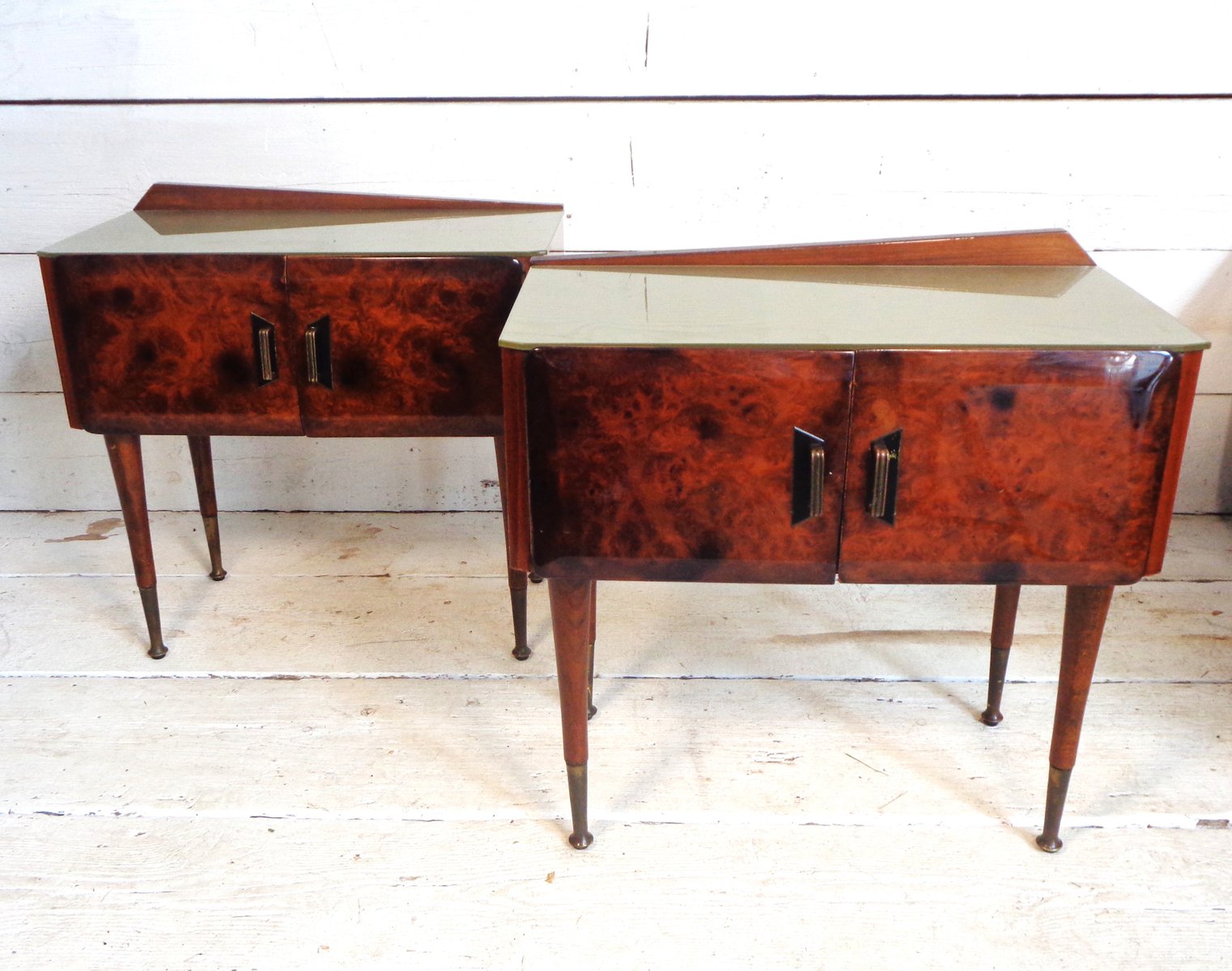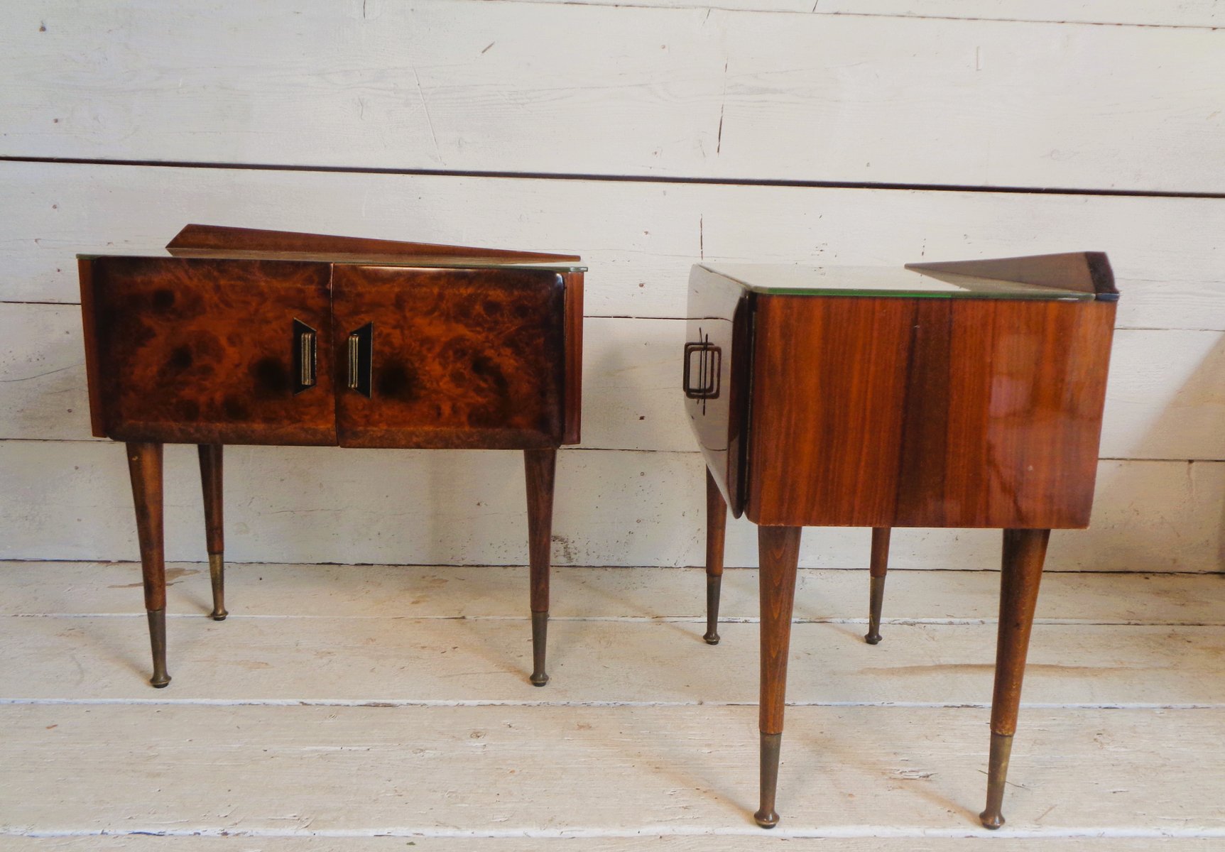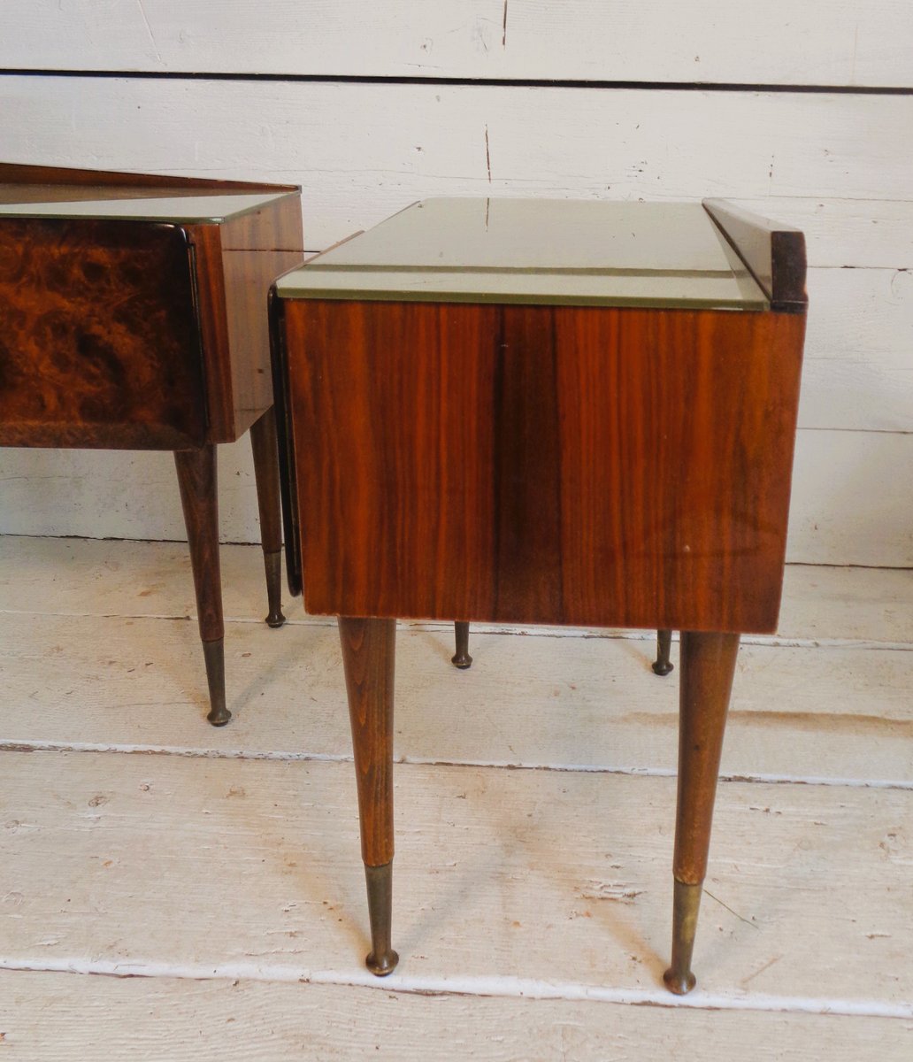 Art Deco Bedside Tables in Briar Brass and Glass, 1950s, Set of 2