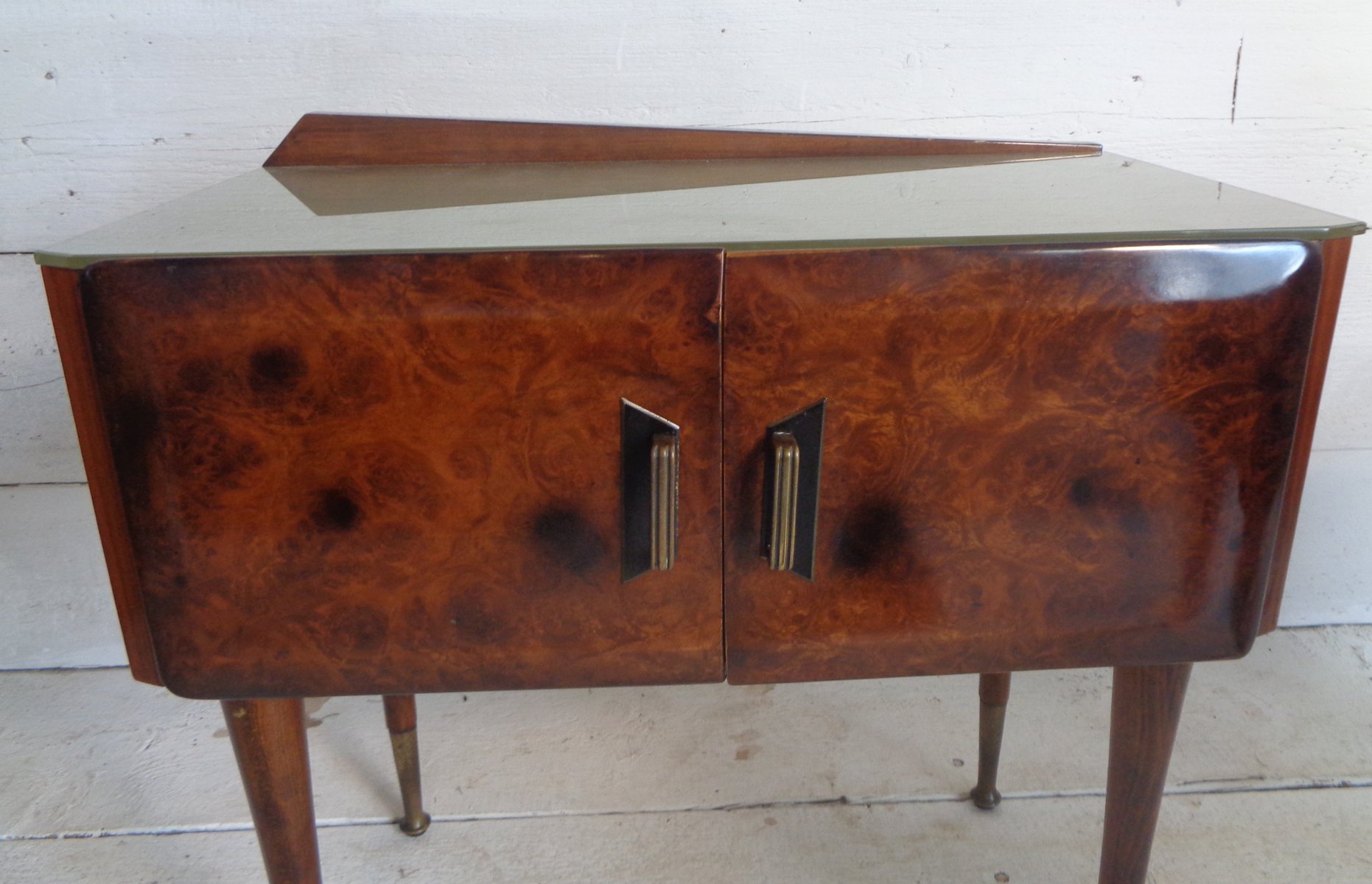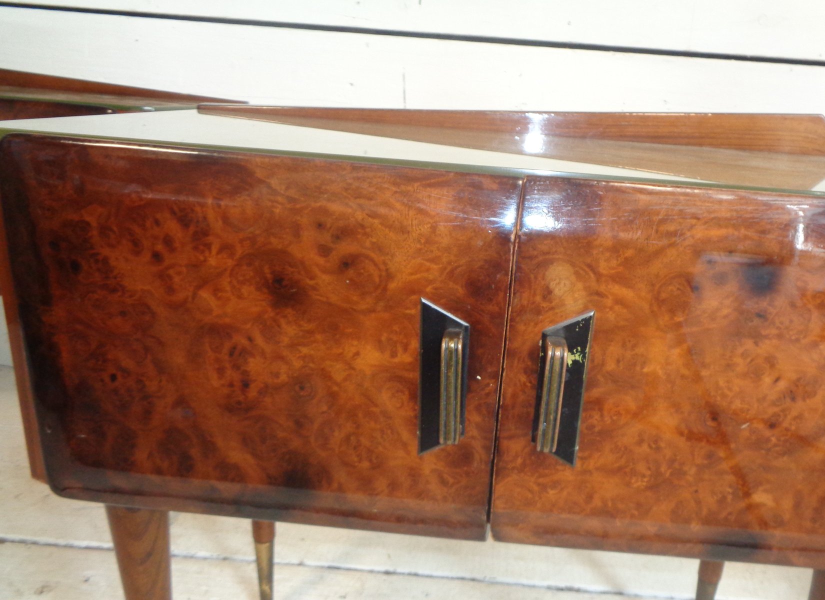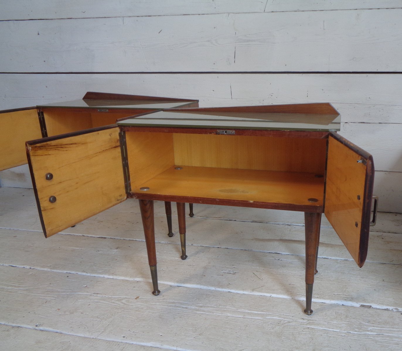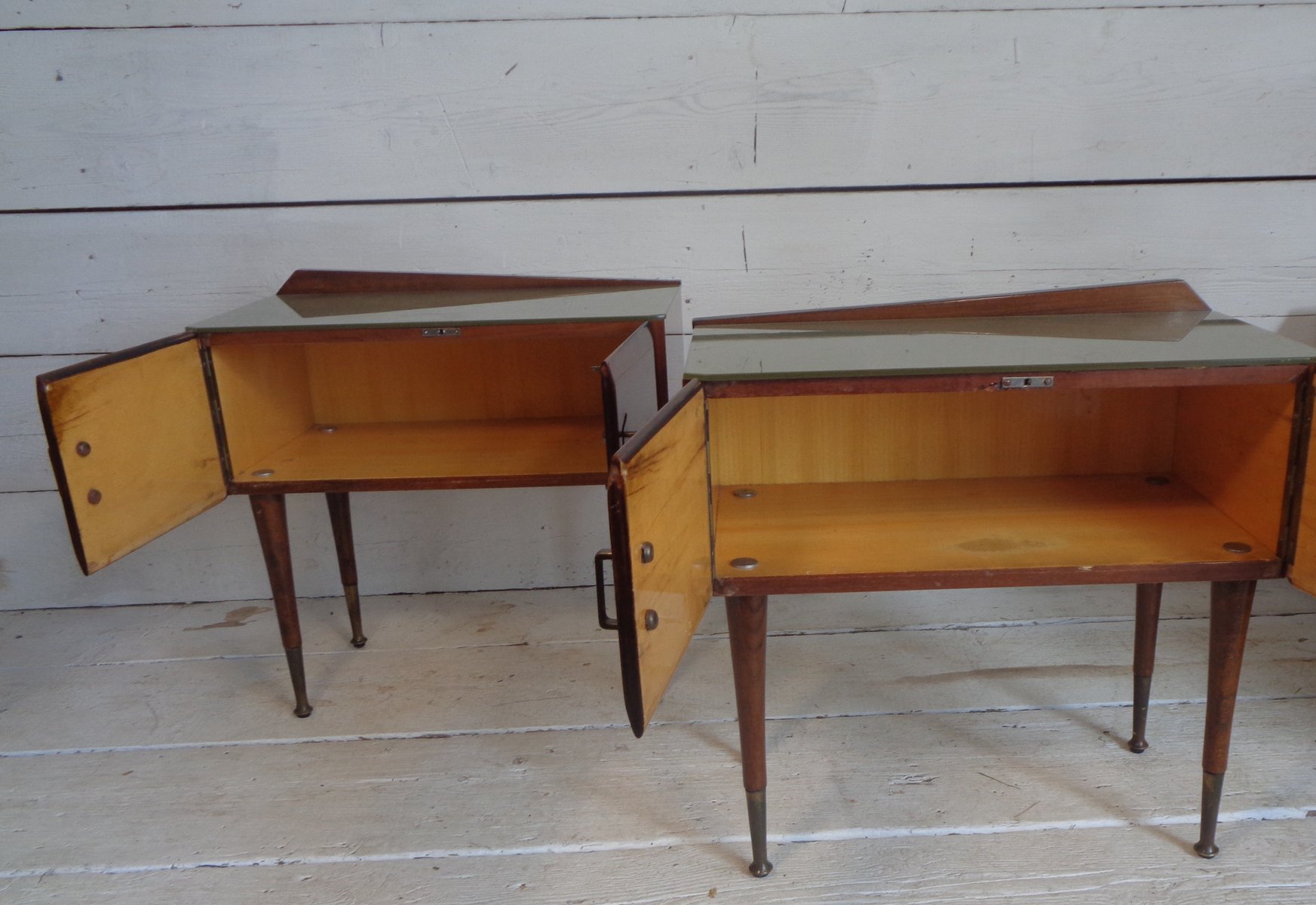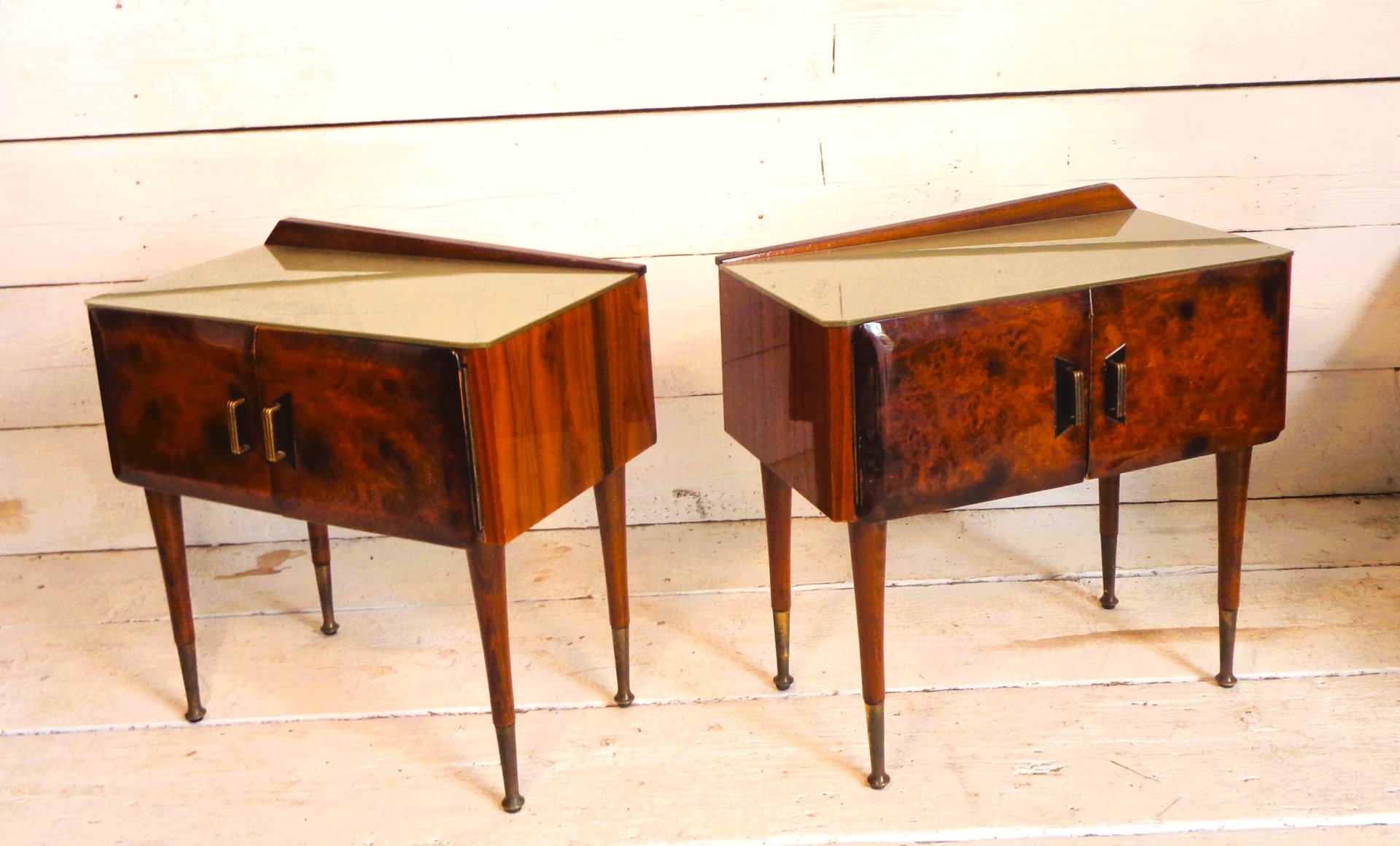 Art Deco Bedside Tables in Briar Brass and Glass, 1950s, Set of 2