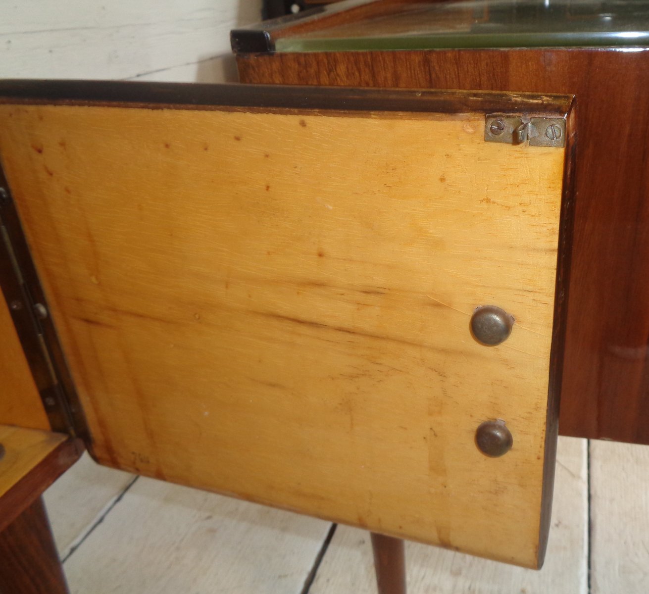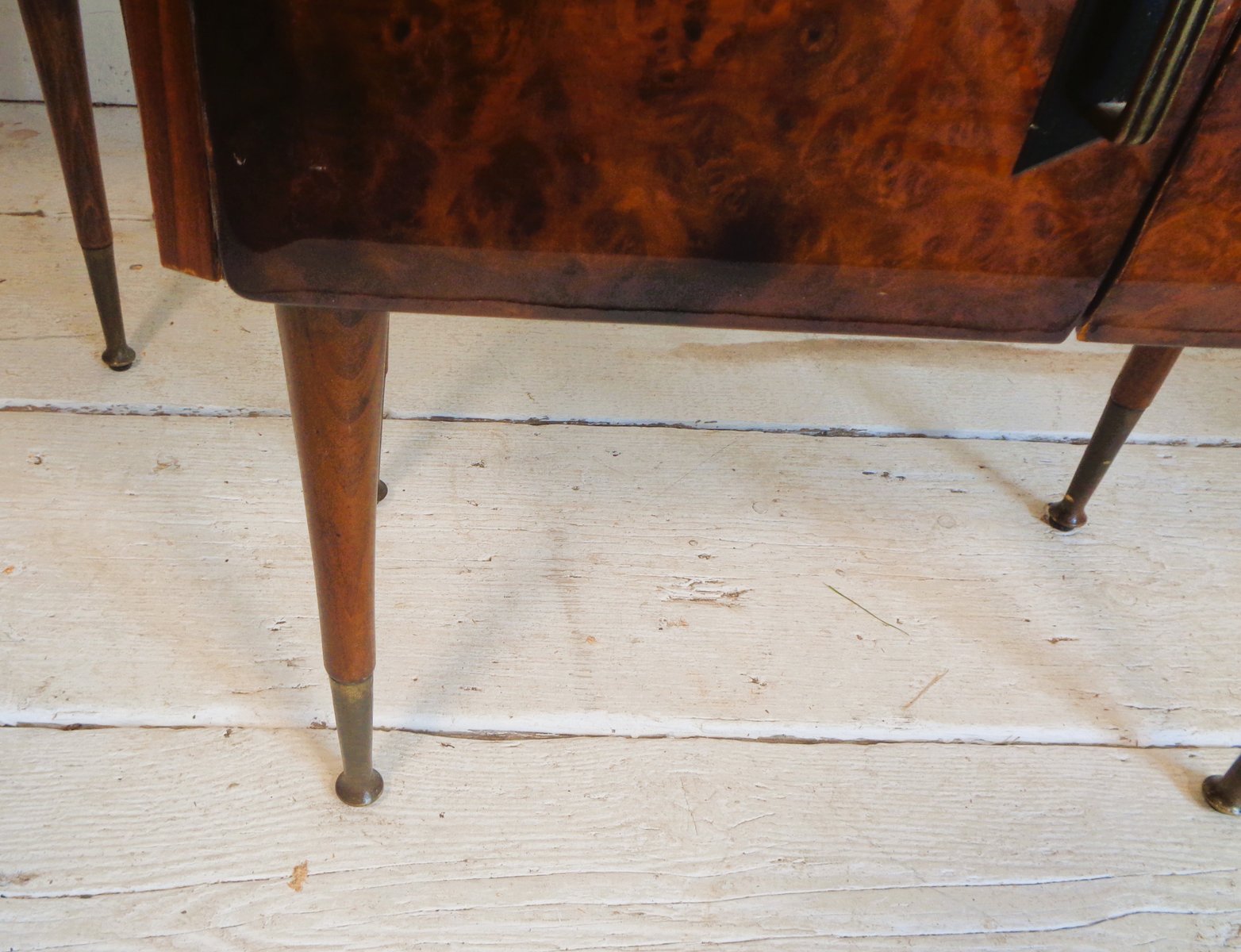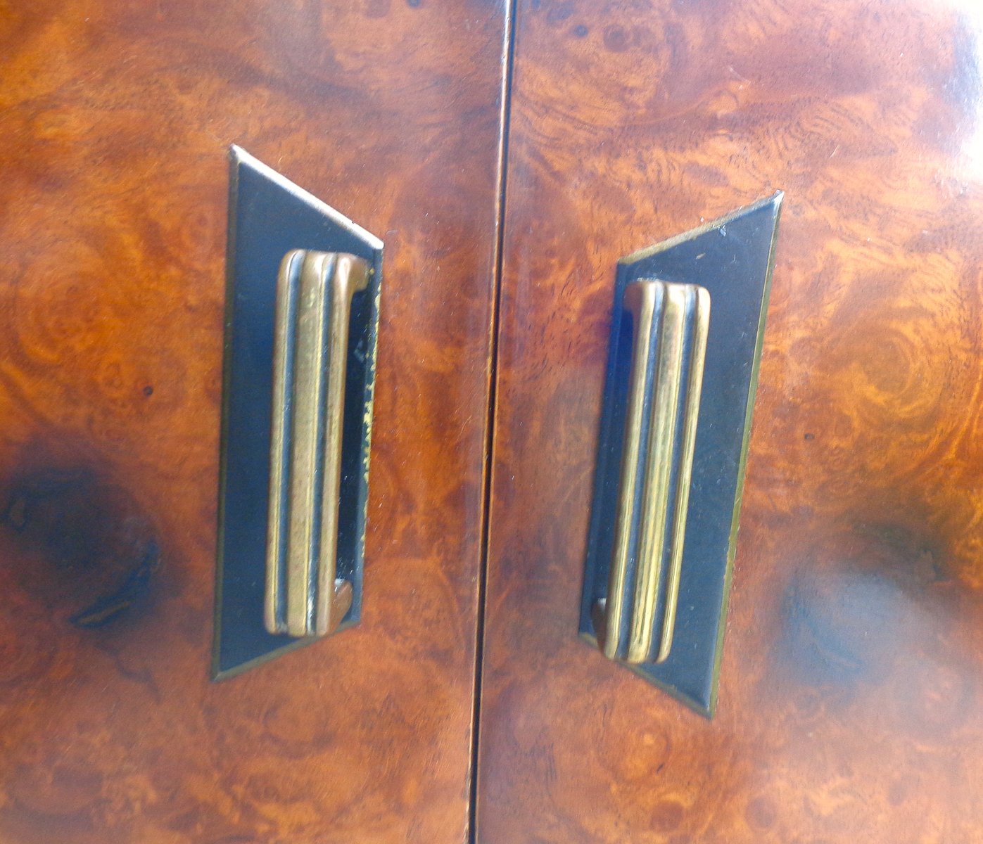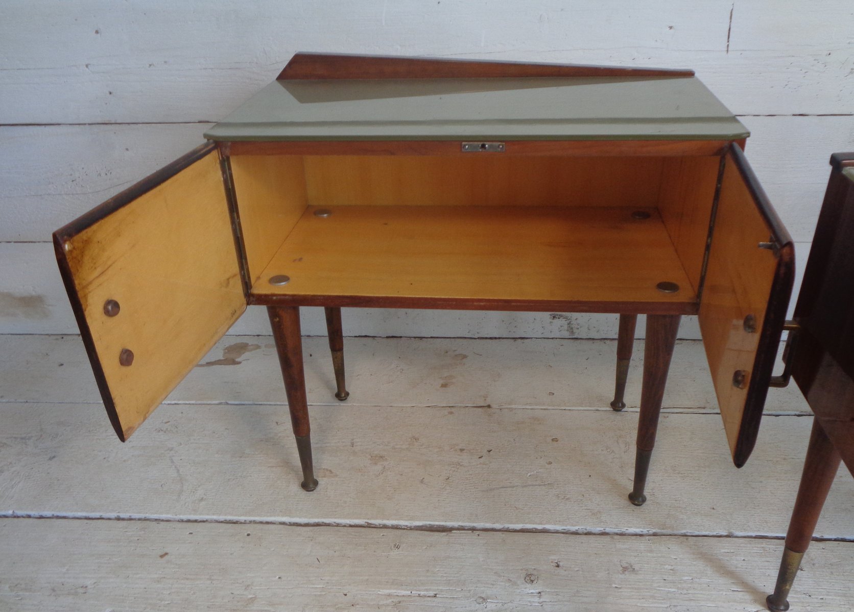 Art Deco Bedside Tables in Briar Brass and Glass, 1950s, Set of 2