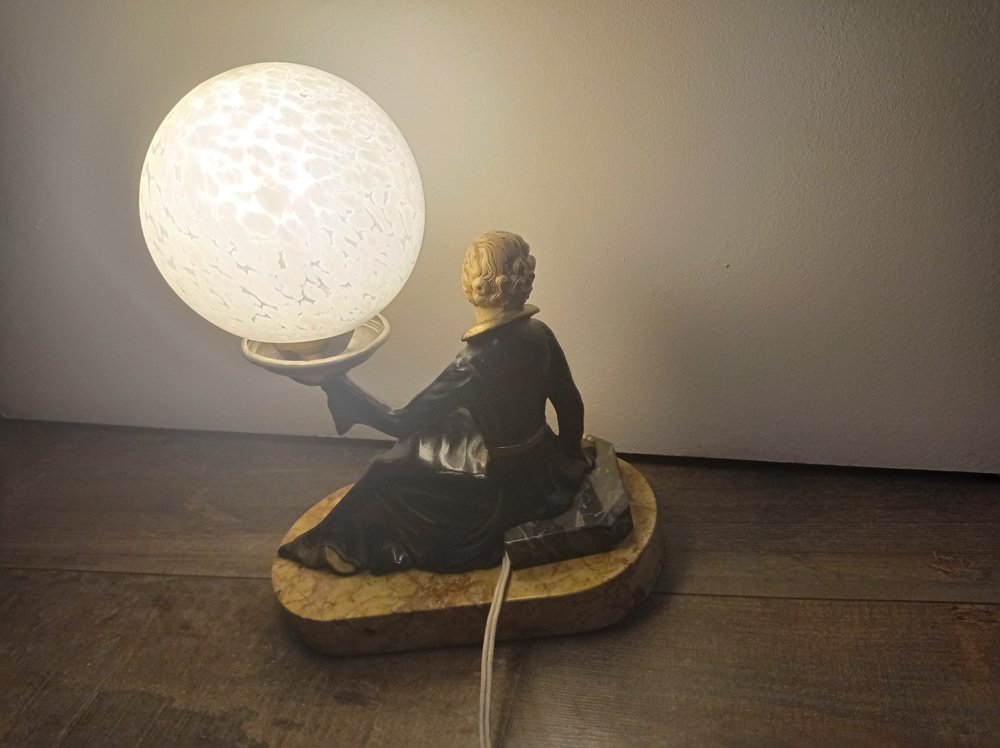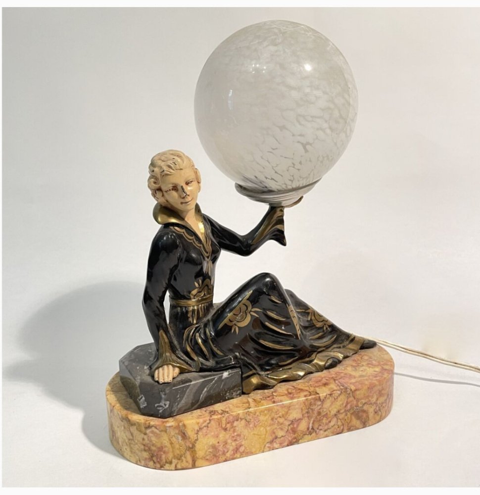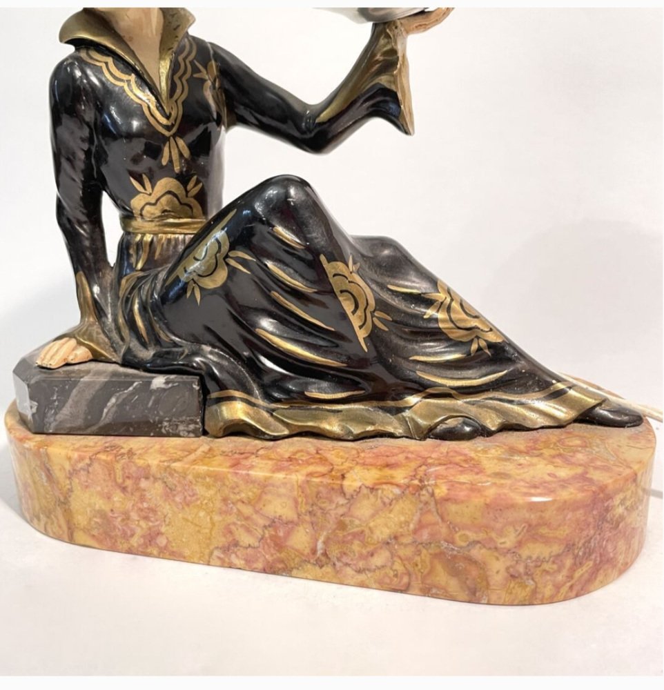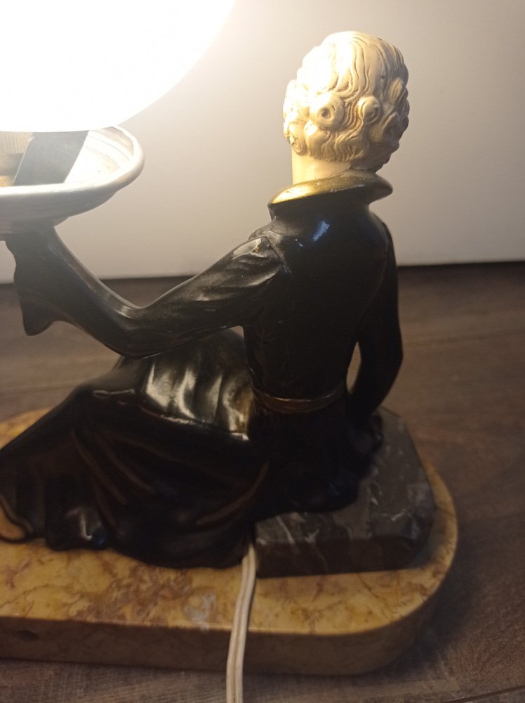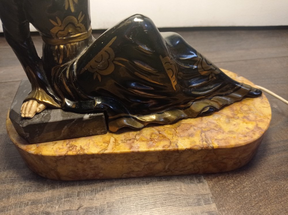 Art Deco Hand Painted Table Lamp on Marble Base