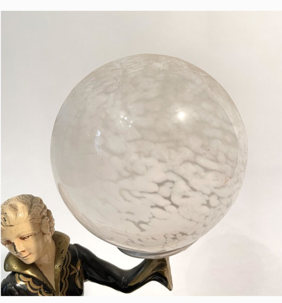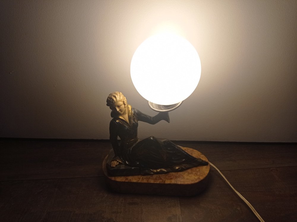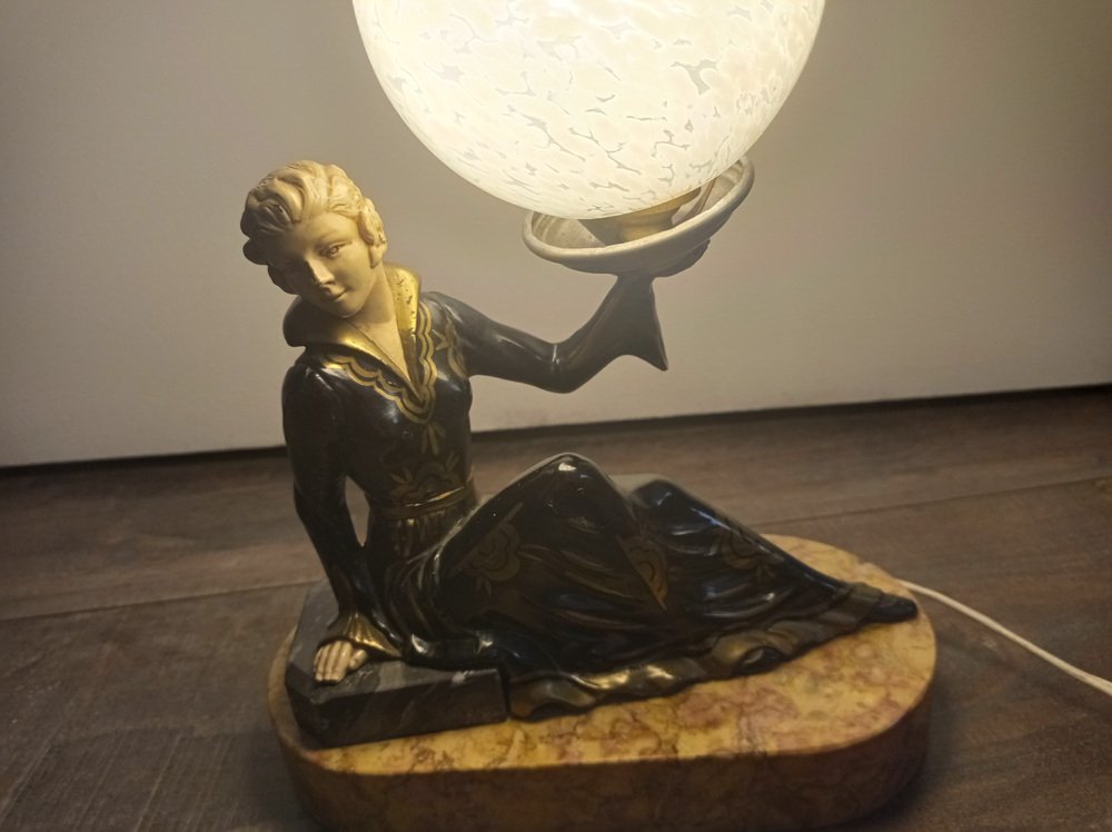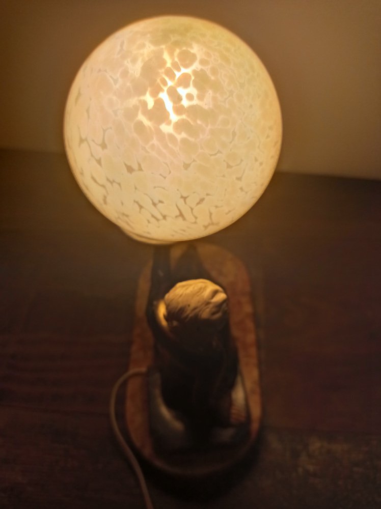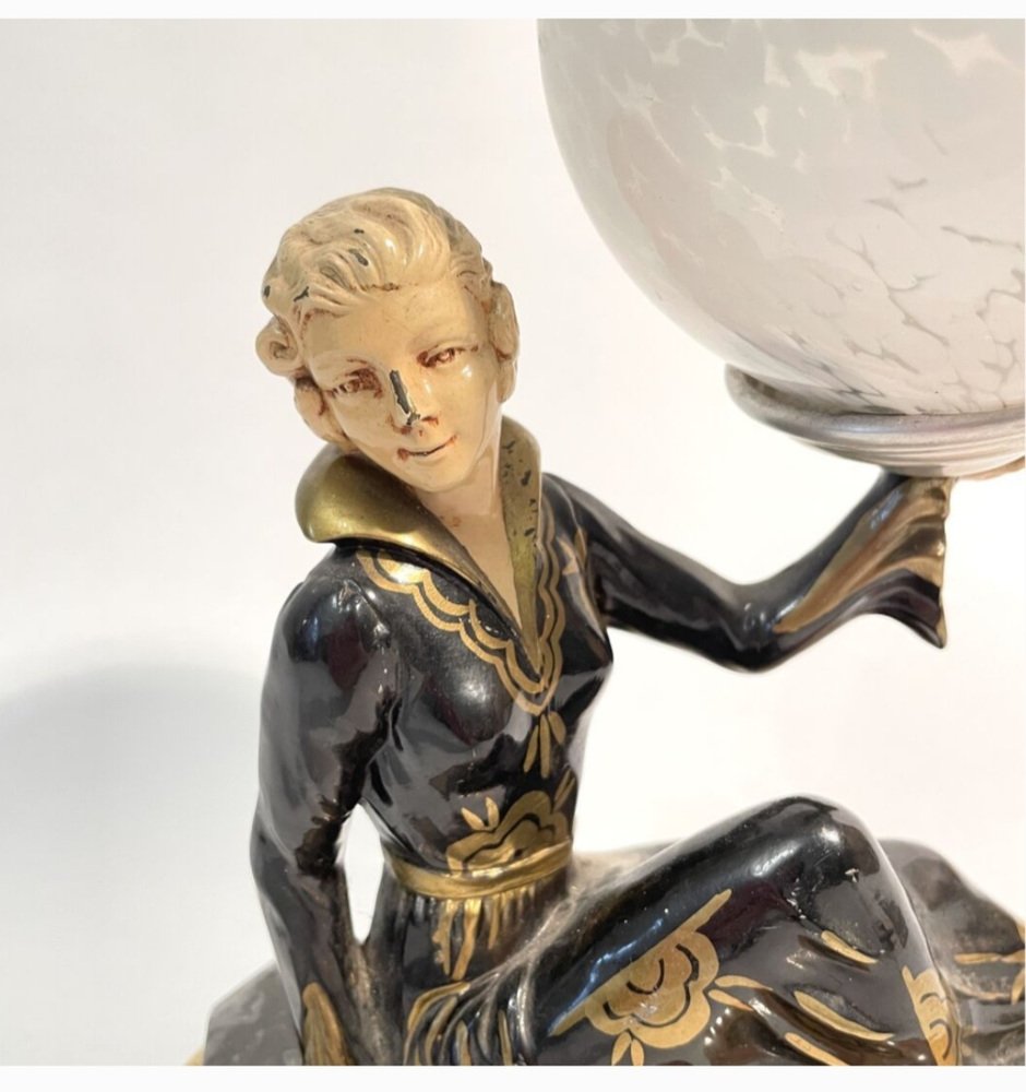 Art Deco Hand Painted Table Lamp on Marble Base