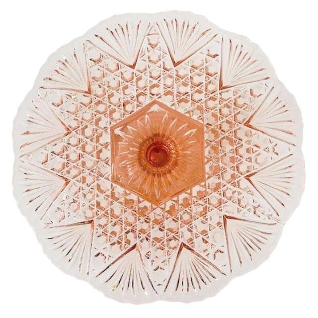 Art Deco Pink Cake Plateau from Luxval Val St. Lambert, 1930s