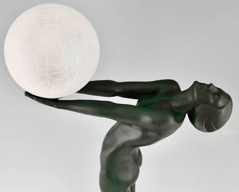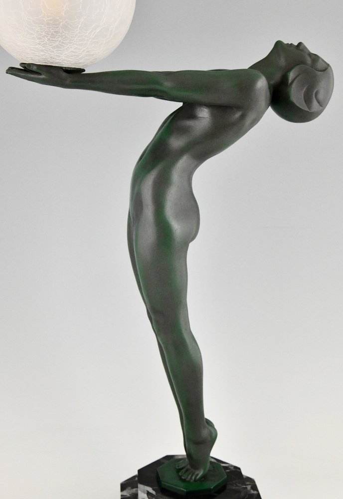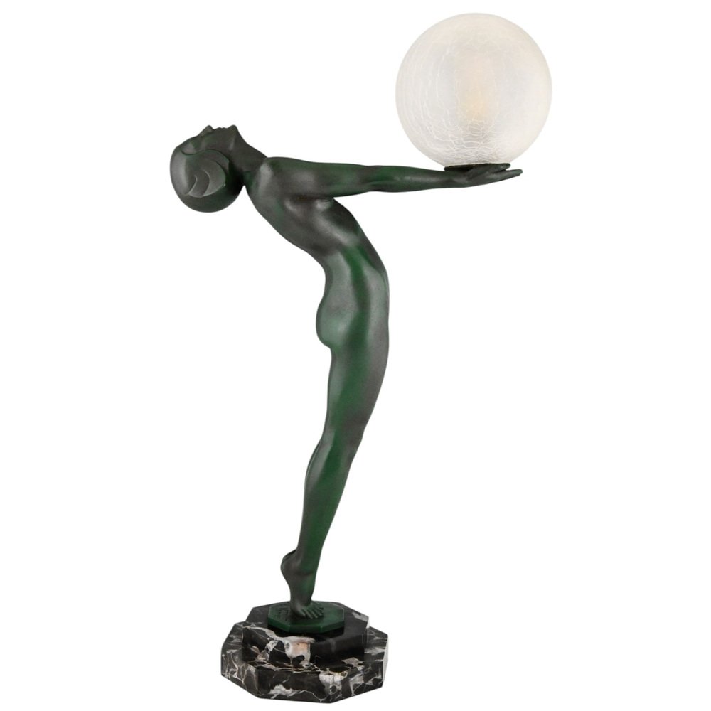 Art Deco Table Lamp Standing Nude with Globe Lumina Clarté by Max Le Verrier, 1928