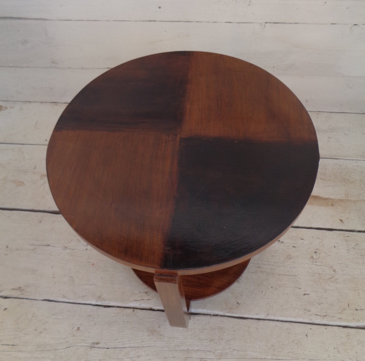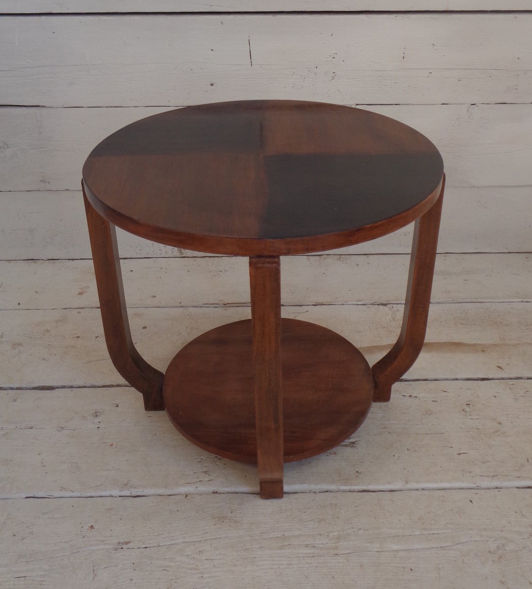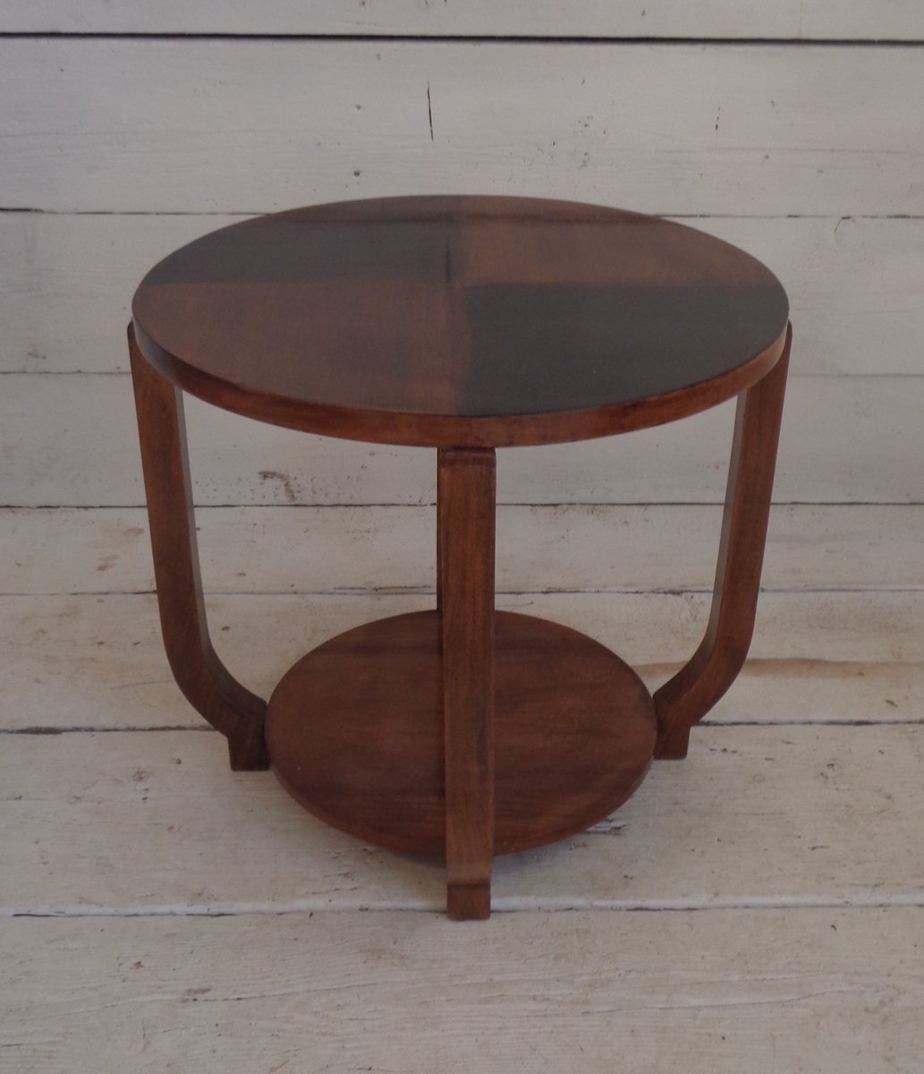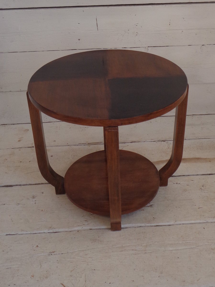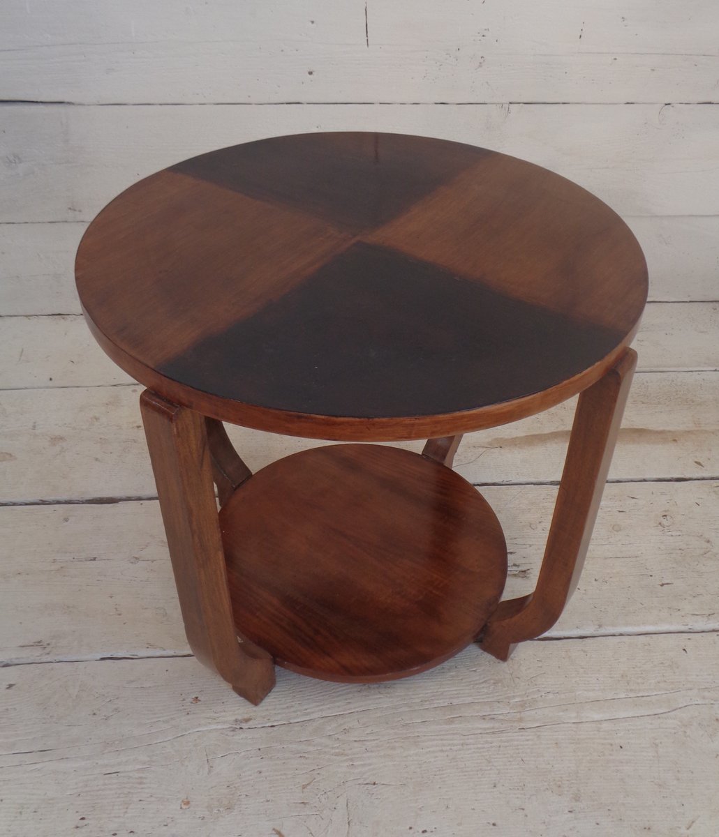 Art Deco Walnut Coffee Table with Curved Legs and Ebonized Segmented Top, 1930s