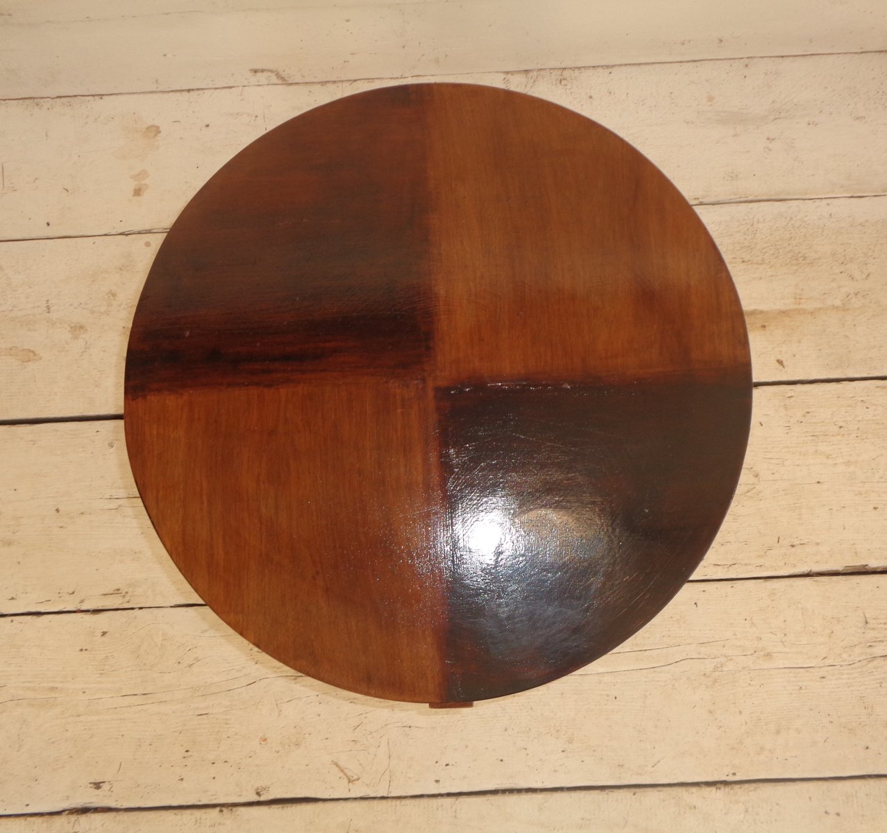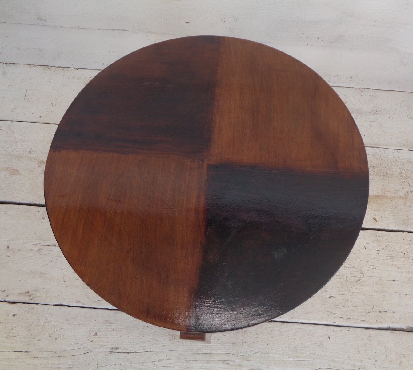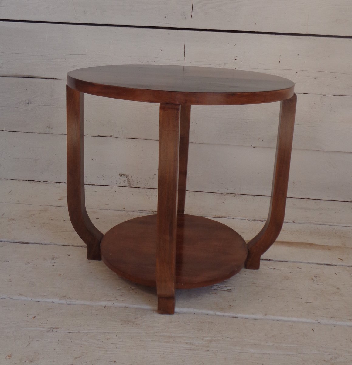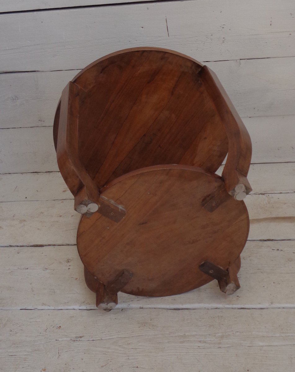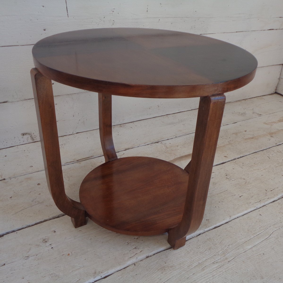 Art Deco Walnut Coffee Table with Curved Legs and Ebonized Segmented Top, 1930s
