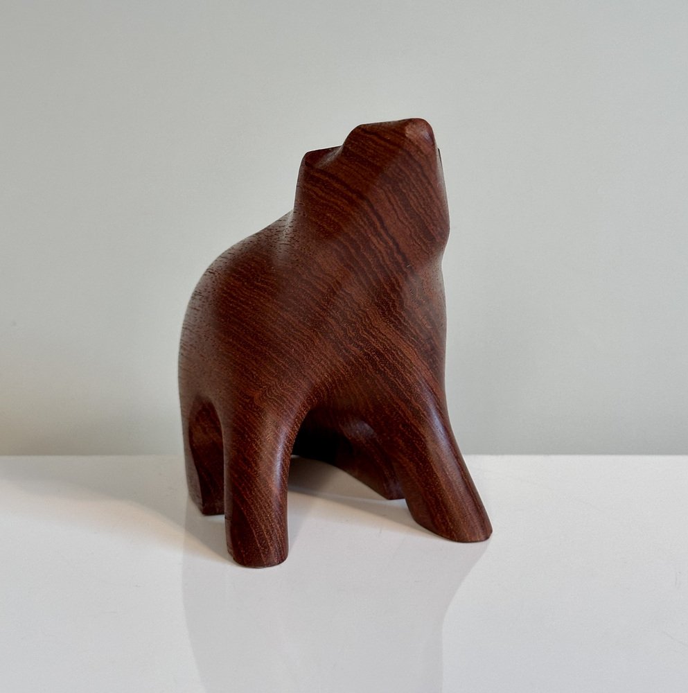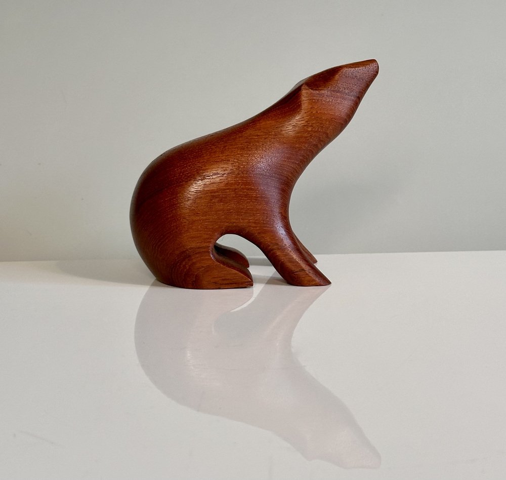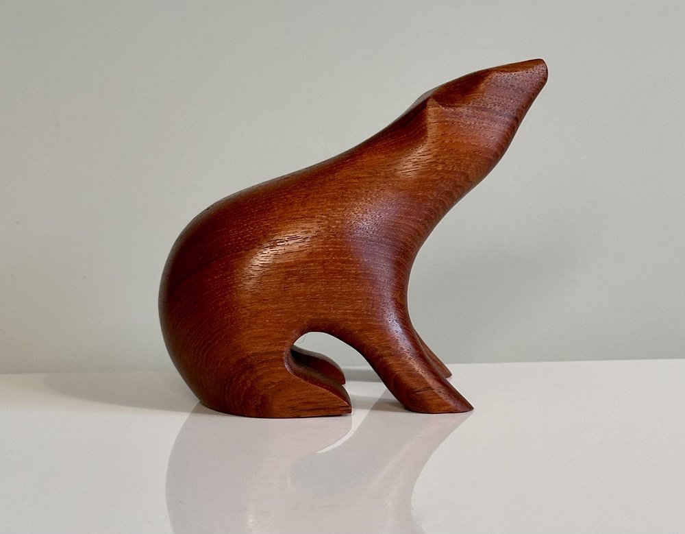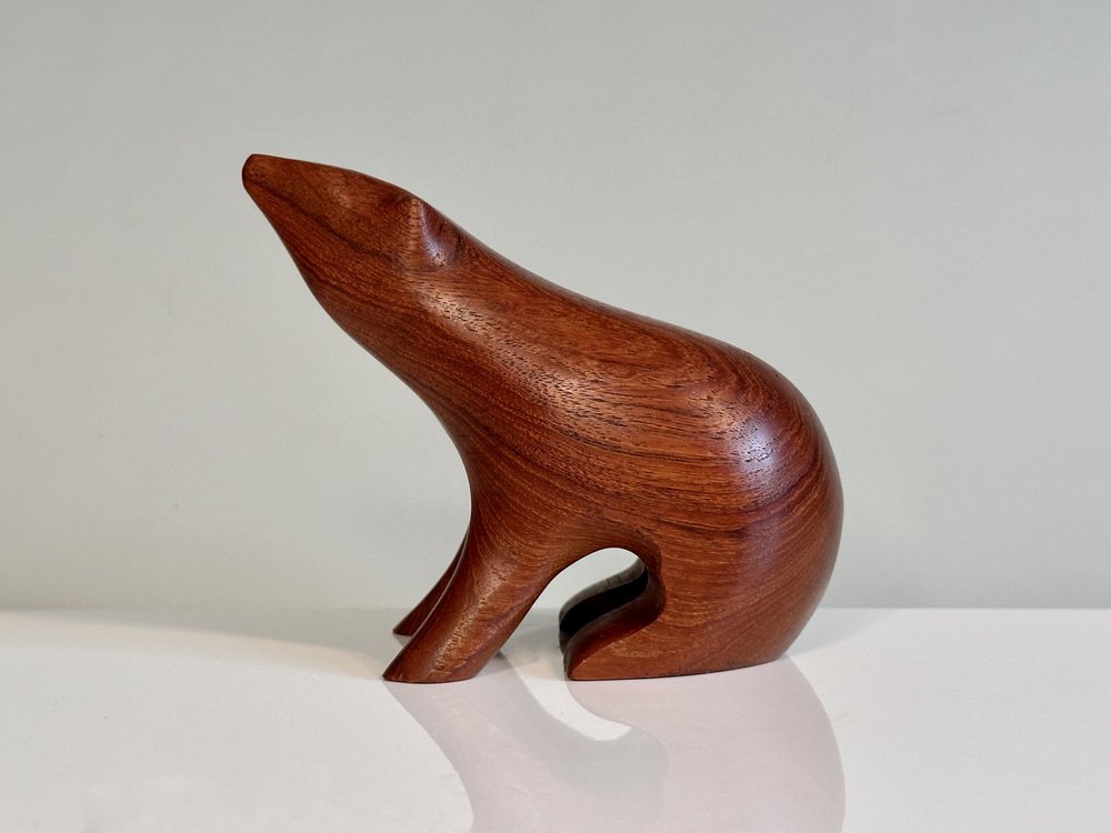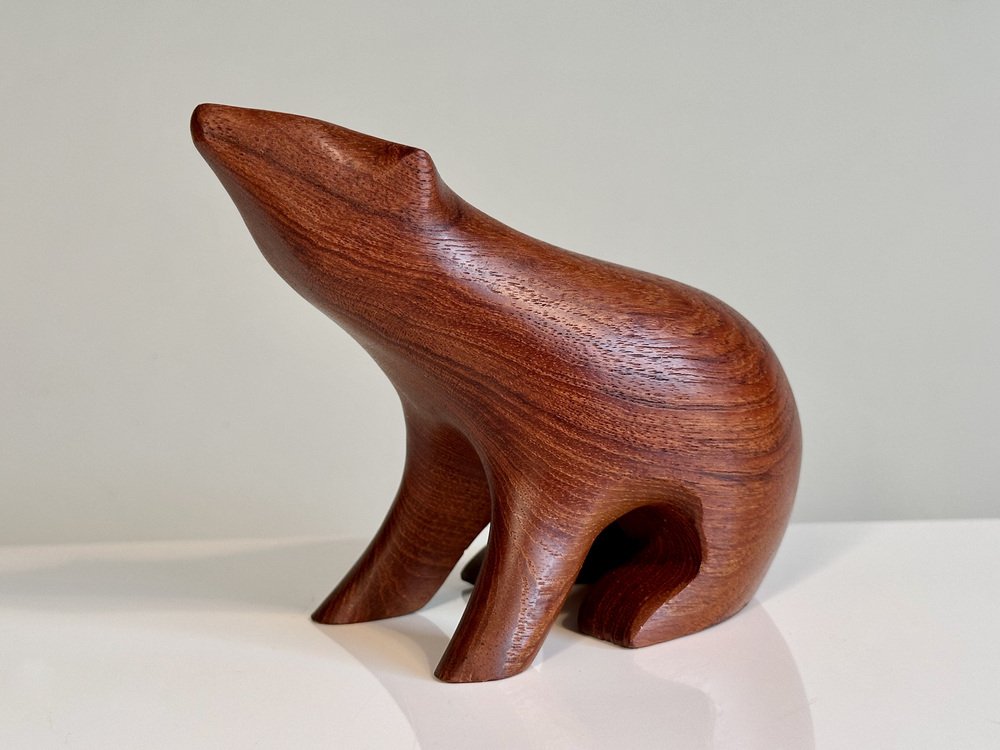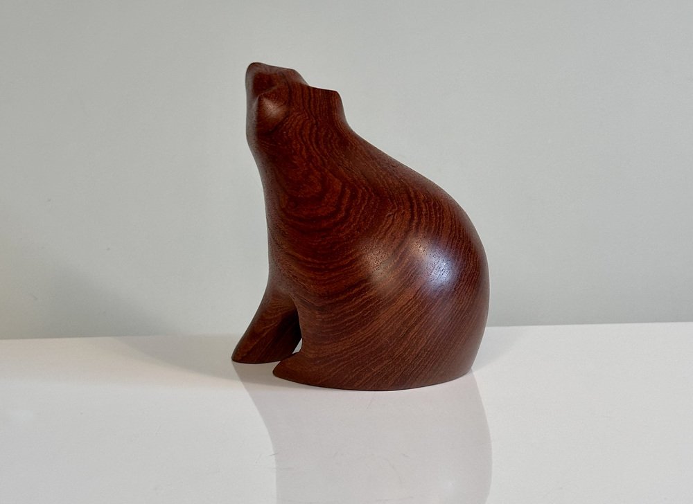 Artisan Hand-Carved Brown Bear Teak Figurine in the style of Arne Tjomsland, Norway, 1960s