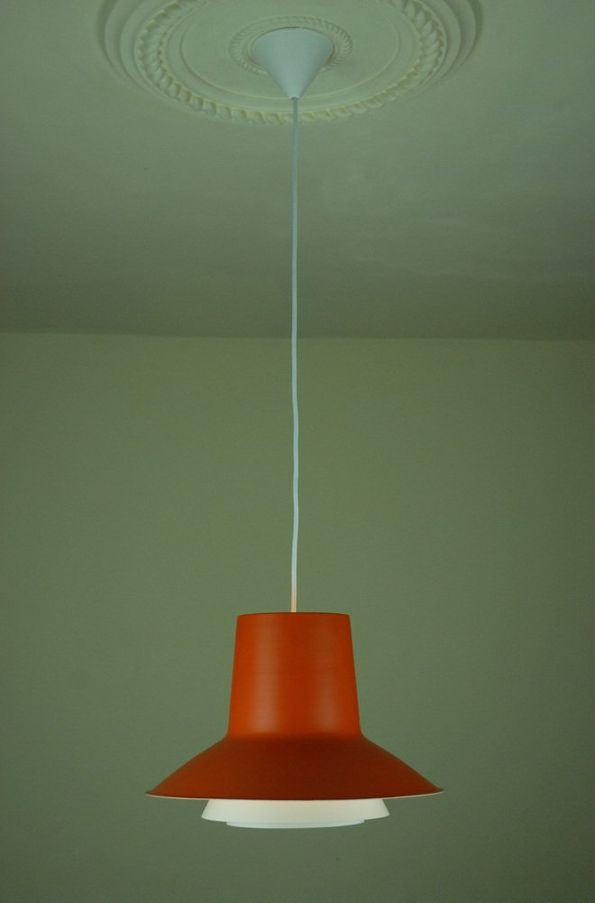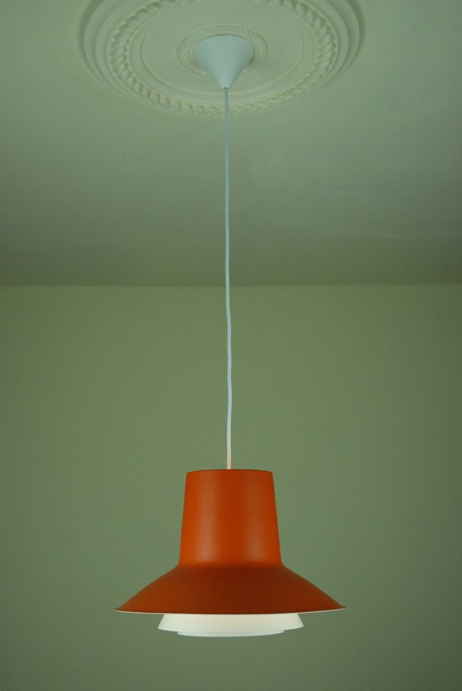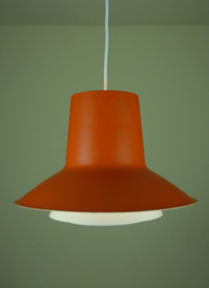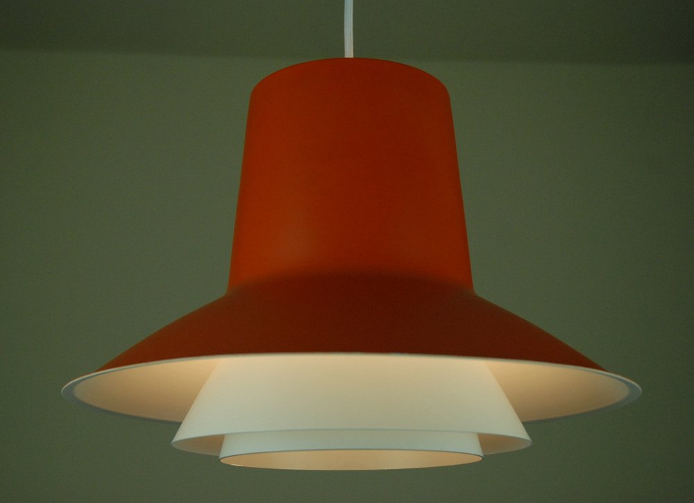 Nordisk Solar used its expertise in using plastic for the production of radio sets, to create many colorful plastic lighting fixtures in the late-1950s and 1960s. The company also commissioned notable Danish architects and designers including Sigvard Bernadotte, Acton Bjørn, Max Brüel, Vagn Dyring, Anton Fogh Holm, Jørgen Kastholm & Preben Fabricius, Eva and Nils Koppel, Sven Middelboe, and Jørn Utzon—who later designed the Sydney Opera House—to create lighting fixtures for Solar. The manufacturer’s most iconic productions include Sven Middleboe’s Verona Pendant Lamp (1960s); Jørn Utzon’s Tivoli Pendant (1947-48, renamed P254 and reintroduced in the 1960s) and Navy Pendant or Sovaernspendel (1956)—which was created for the Royal Danish Navy offices, and was later updated and re-launched by Louis Poulsen under the new name Doo Wop; K Kewo’s Minisol Light (1960s); Preben Fabricius & Jørgen Kastholm’s P376 (1964, renamed Kastholm Pendant in 1980); and Vagn Dyring’s Granada Light (1982).