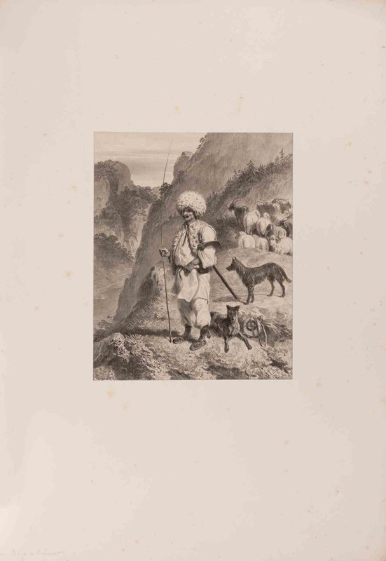 Auguste Raffet, Shepherds and Caucasian Cattle Dogs, 1800s, Lithograph