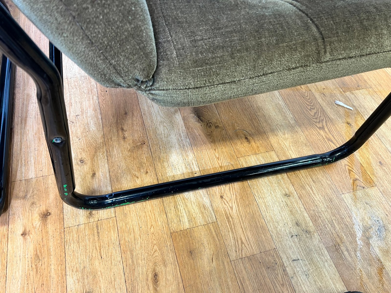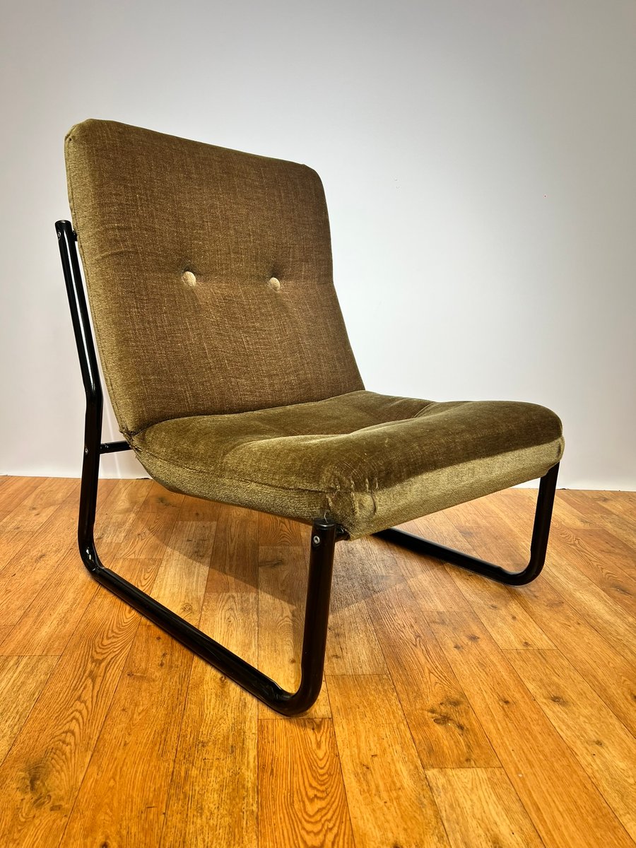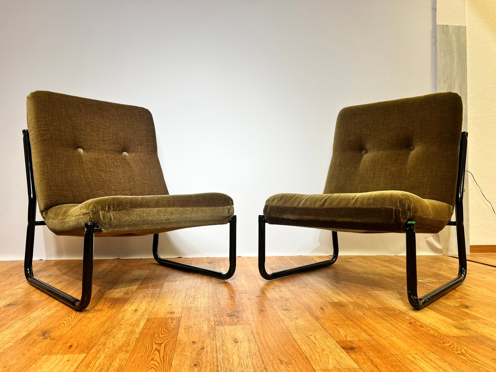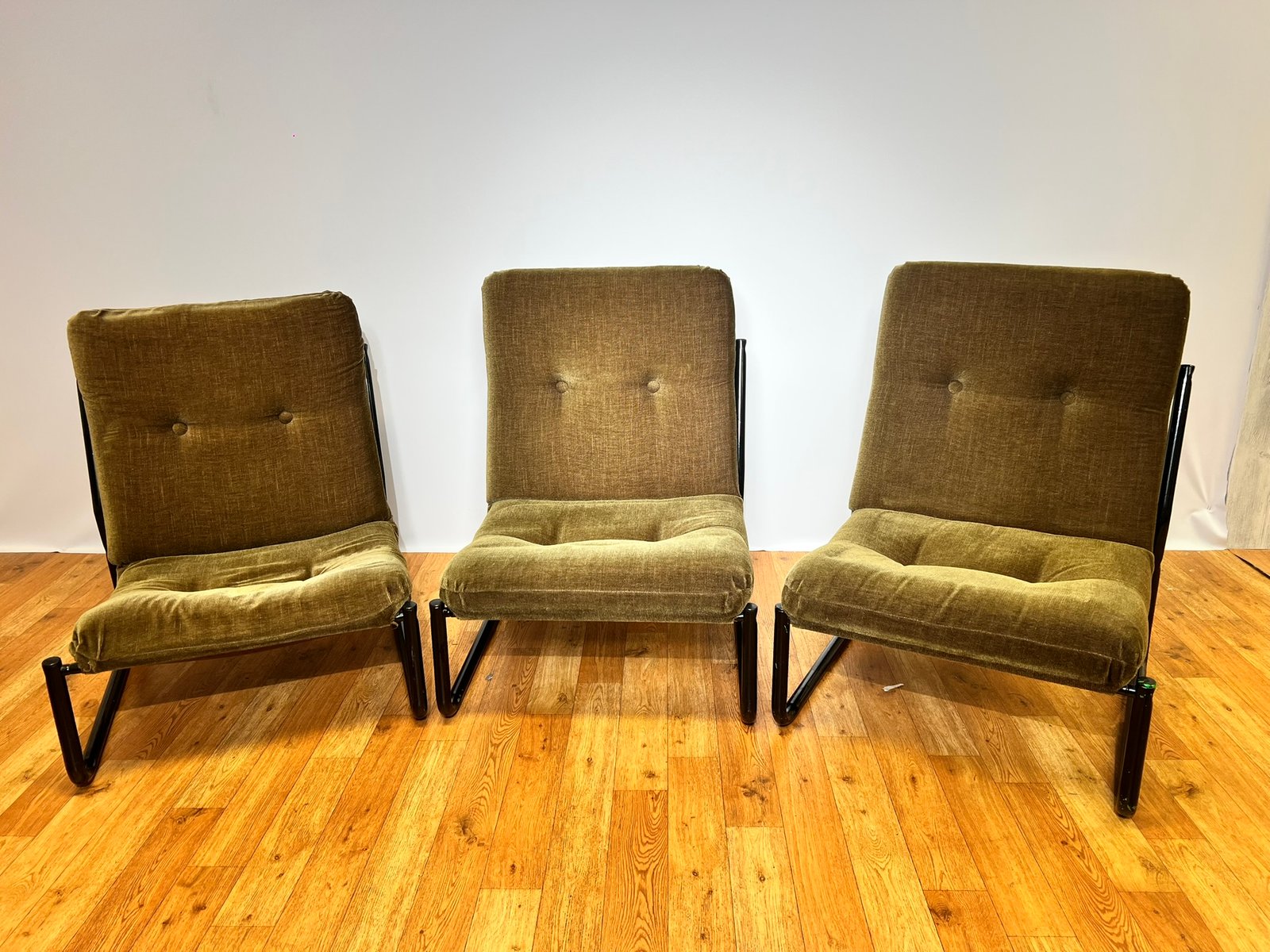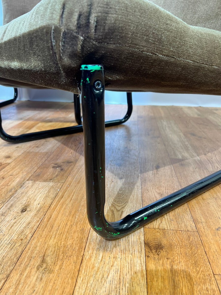 Bauhaus Black Steel and Green Upholstery Lounge Chairs, 1970s, Set of 3