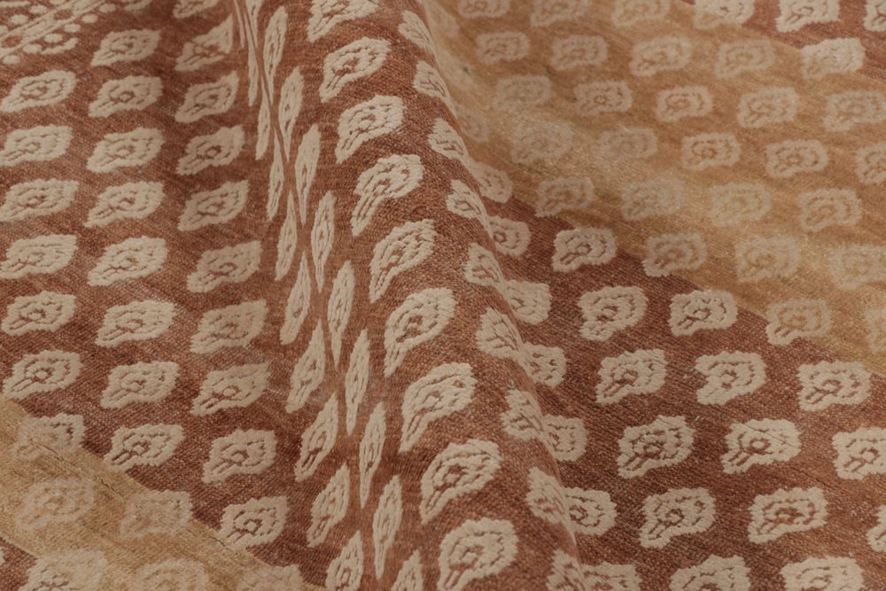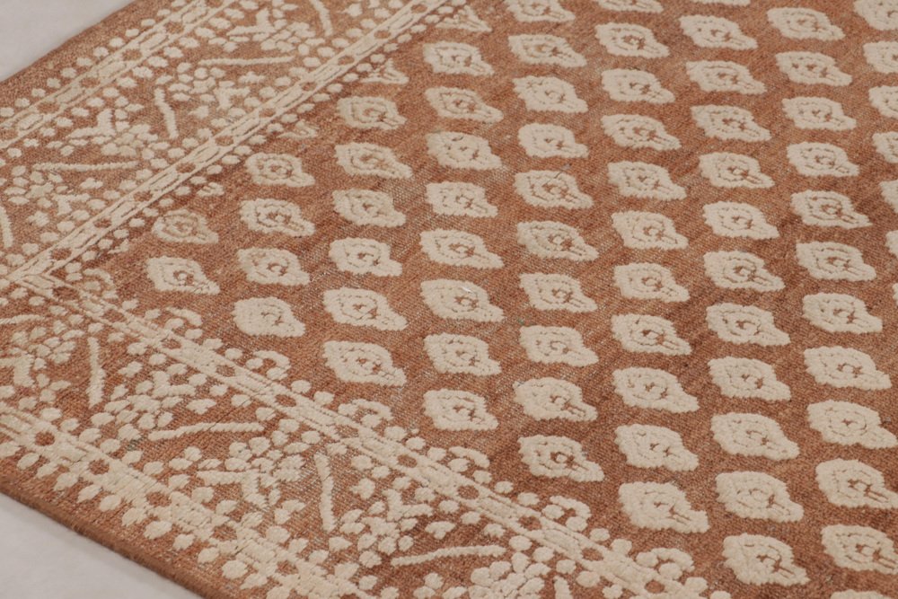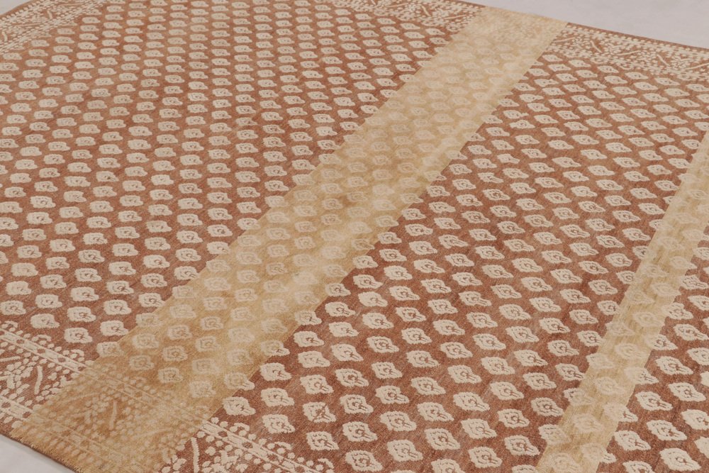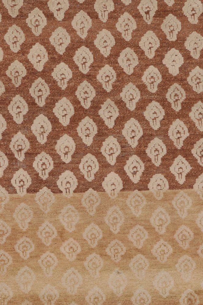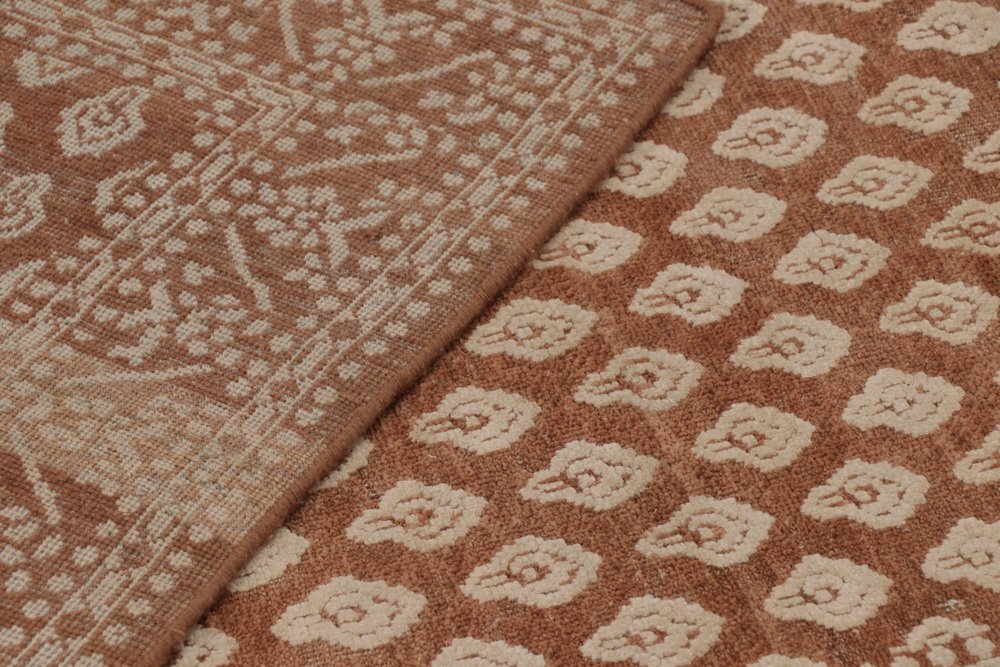 Block Print Rug in Brown with Beige-Cream Motifs by Rug&Kilim