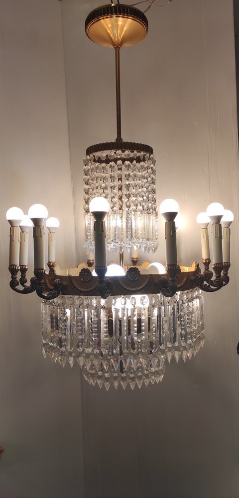 Bronze and Crystal Chandelier by Lumi Milano, 1940s
