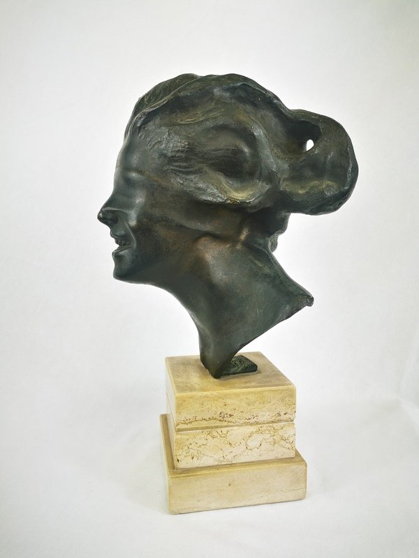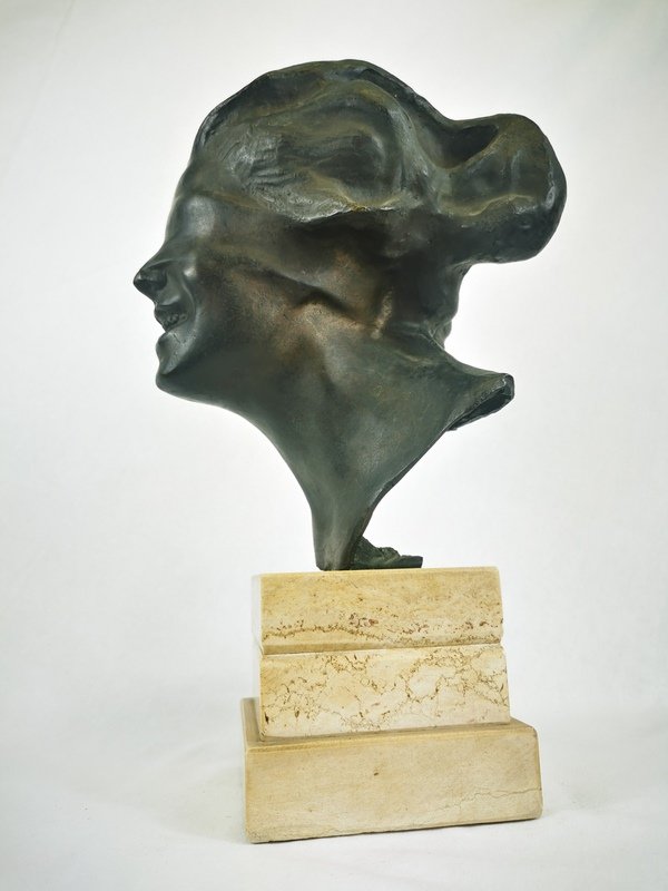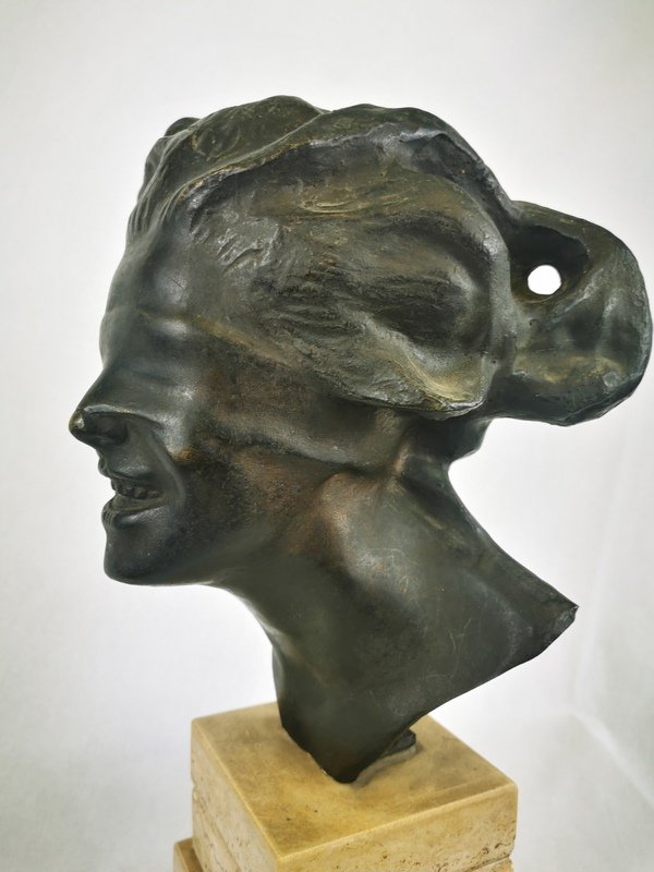 Bronze Sculpture of Head on Base of the Goddess Fortuna by Aurisicchio Vincenzo, 1890s-1910s