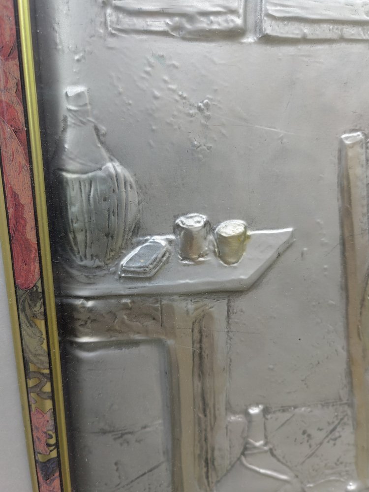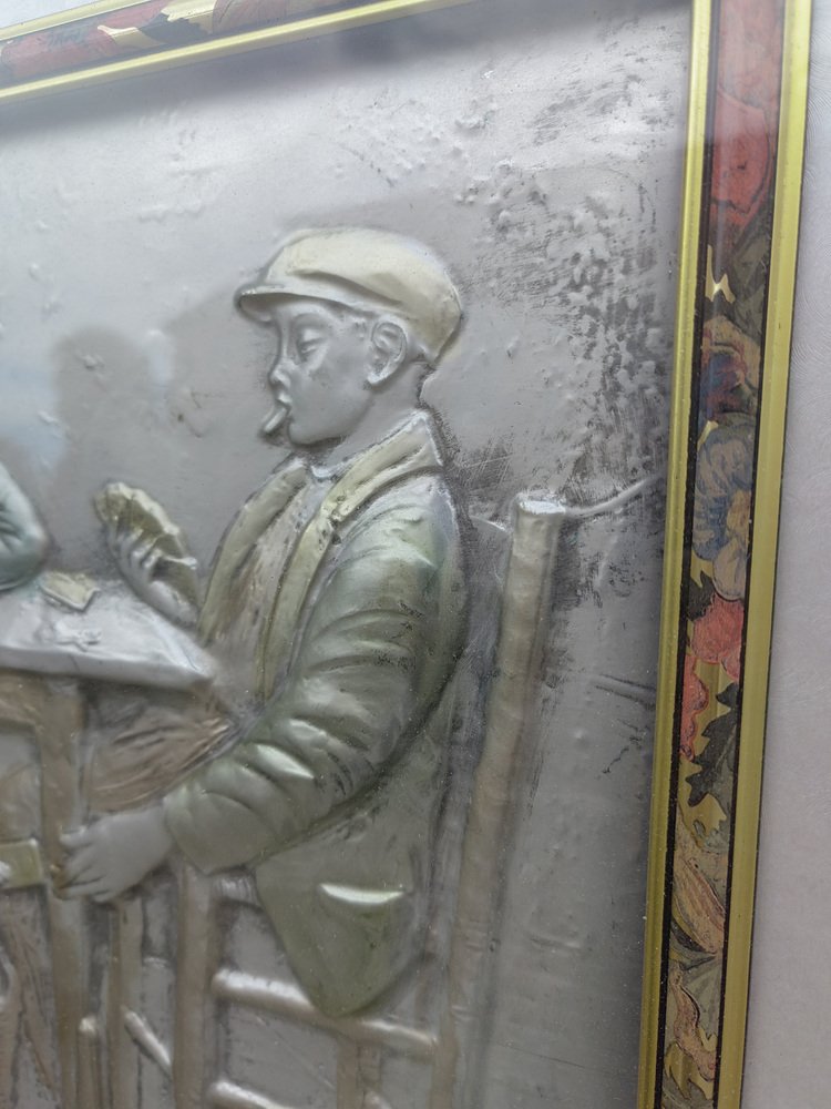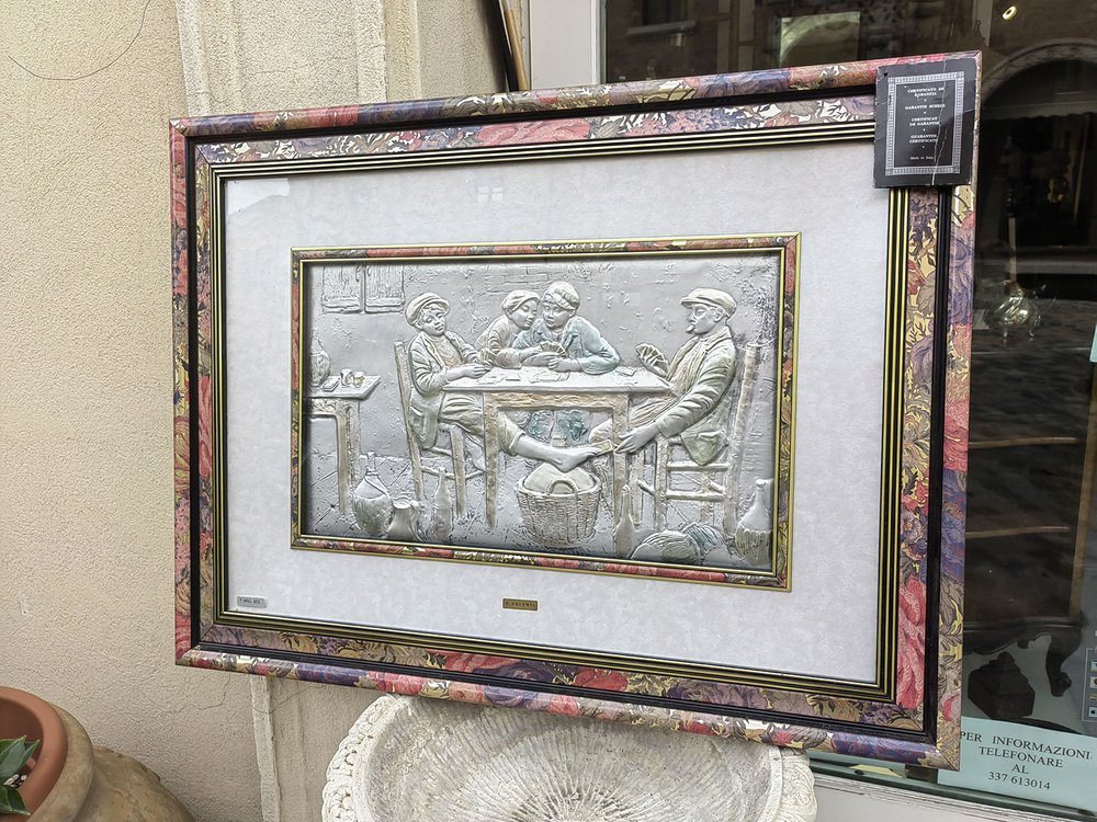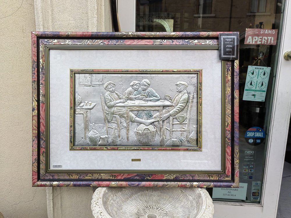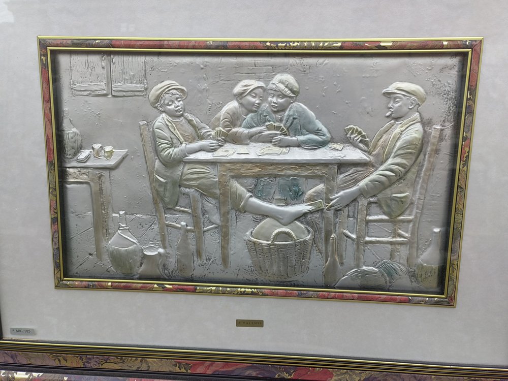 Card Game Bas-Relief on 925 Silver Plate by P. Valenti, 1950s