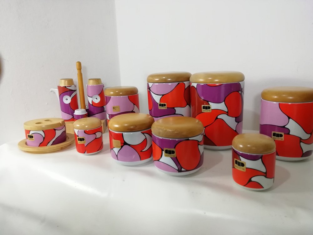 Ceramic Kitchen Set by Franco Pozzi, Italy, 1960s, Set of 15