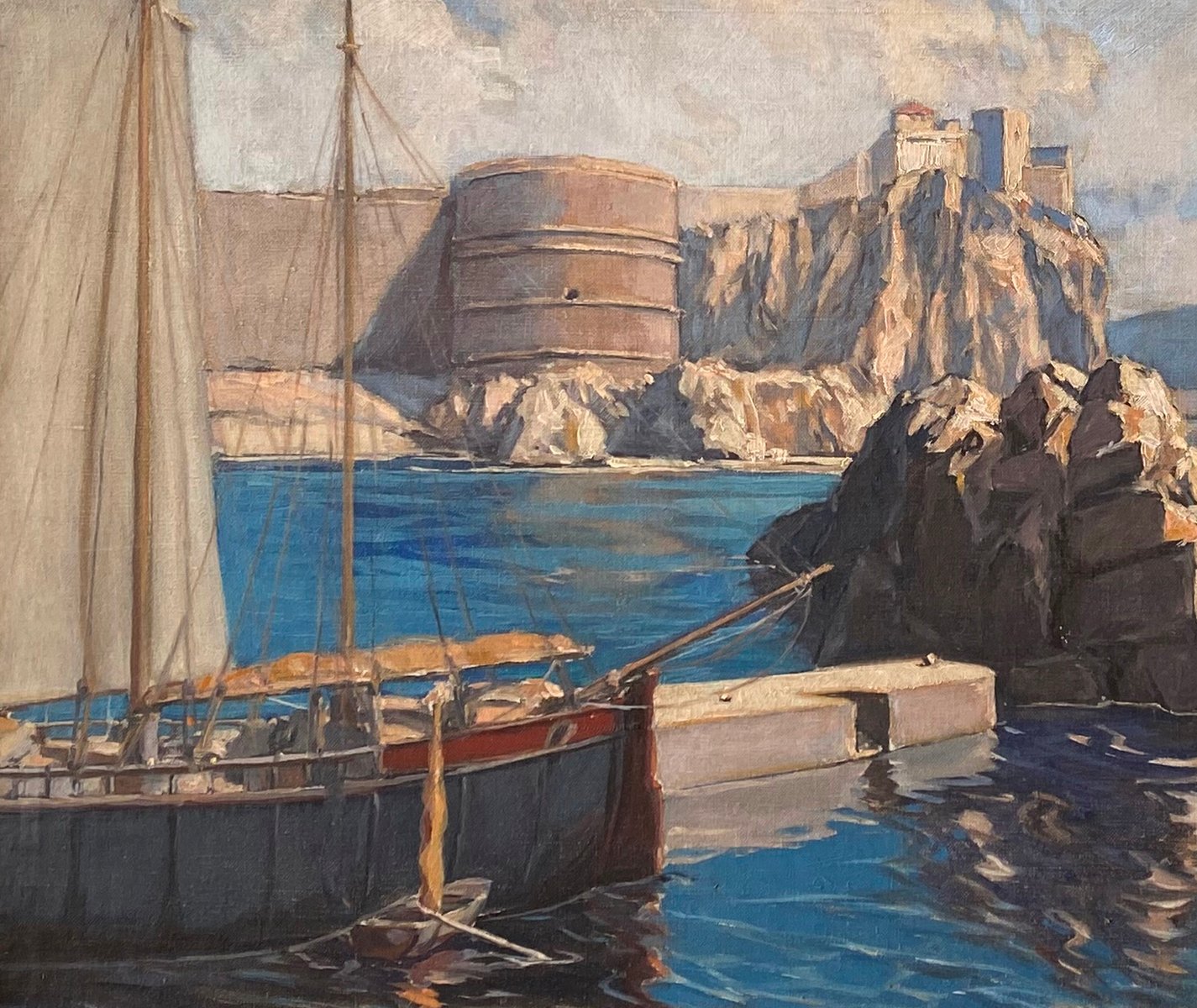 Circle of Aleksei Hanzen, Dubrovnik Walls, 1930s, Oil on Canvas, Framed