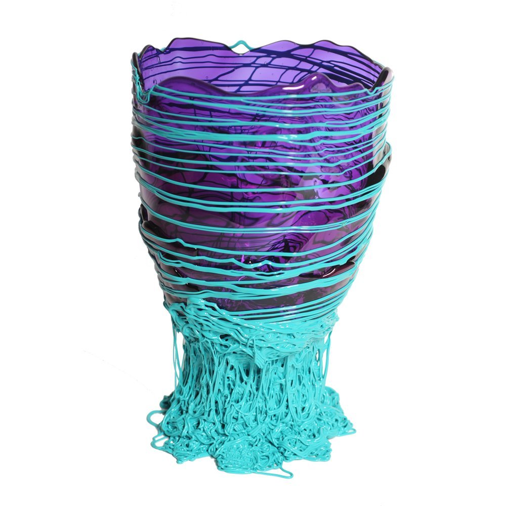 Clear Purple and Matt Turquoise Spaghetti Vase by Gaetano Pesce for Fish Design