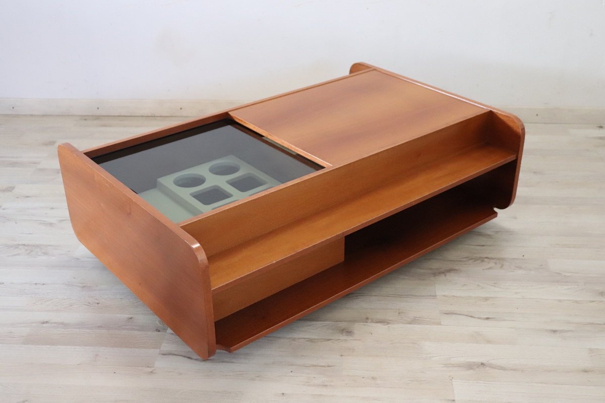 Coffee Table with Bar in Plywood, 1970s