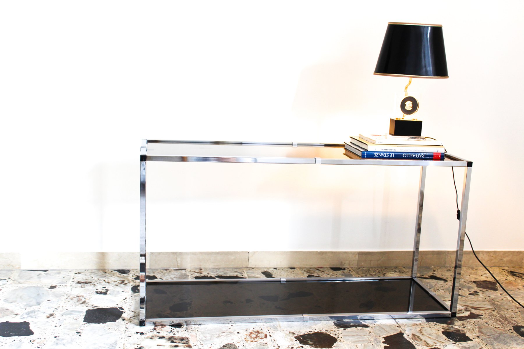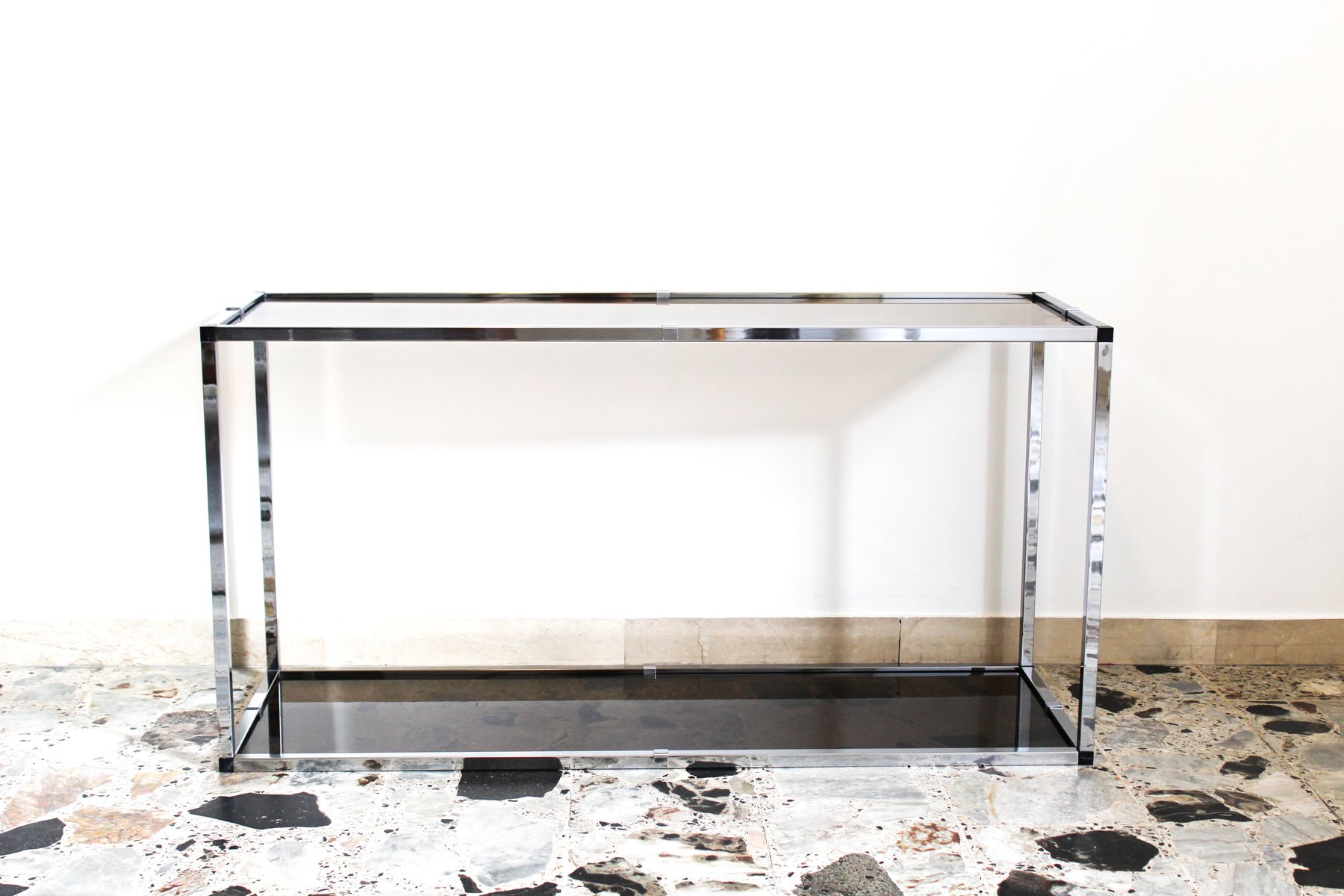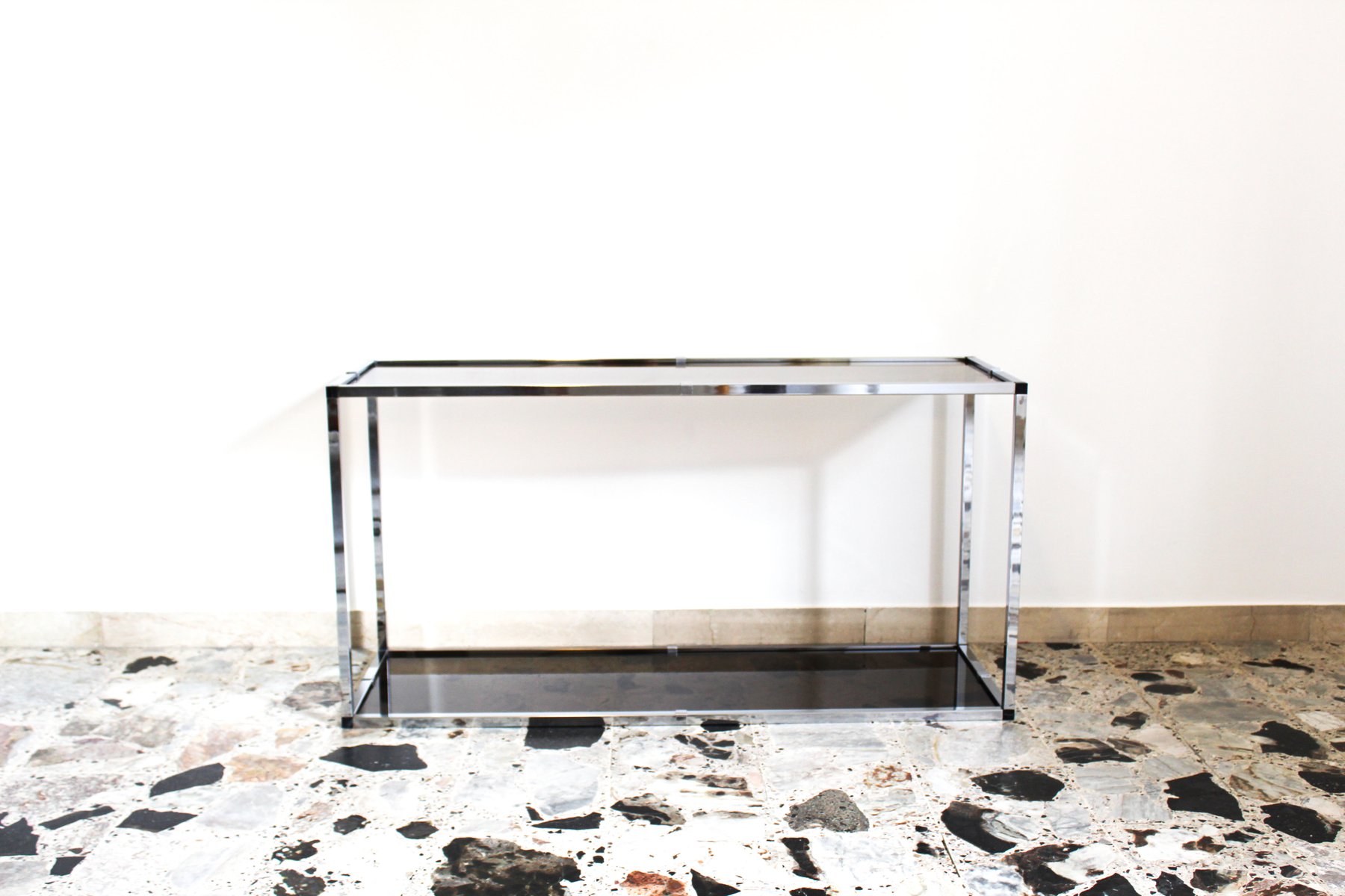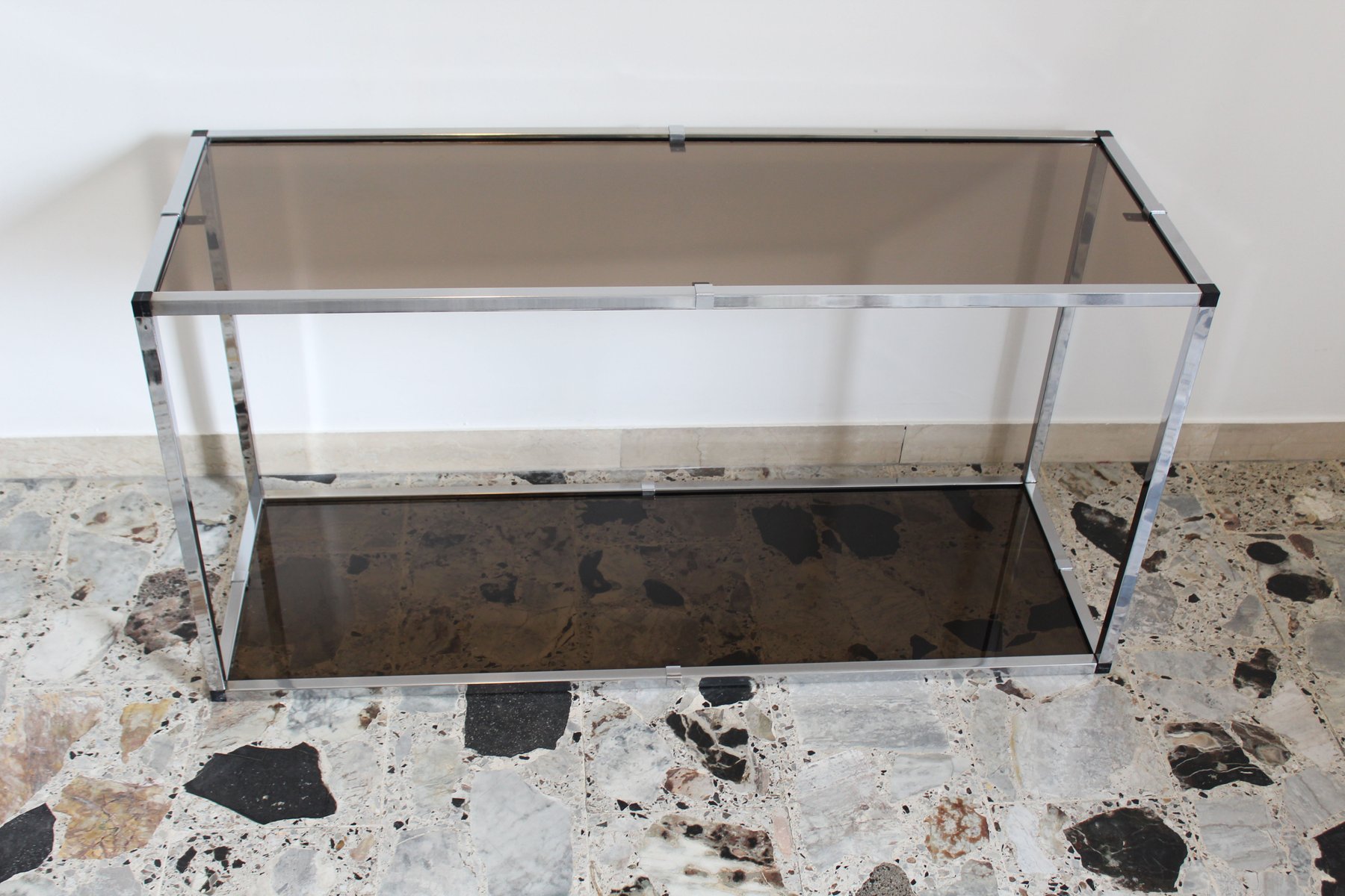 Console in Chromed Metal and Smoked Glass, Italy, 1970s