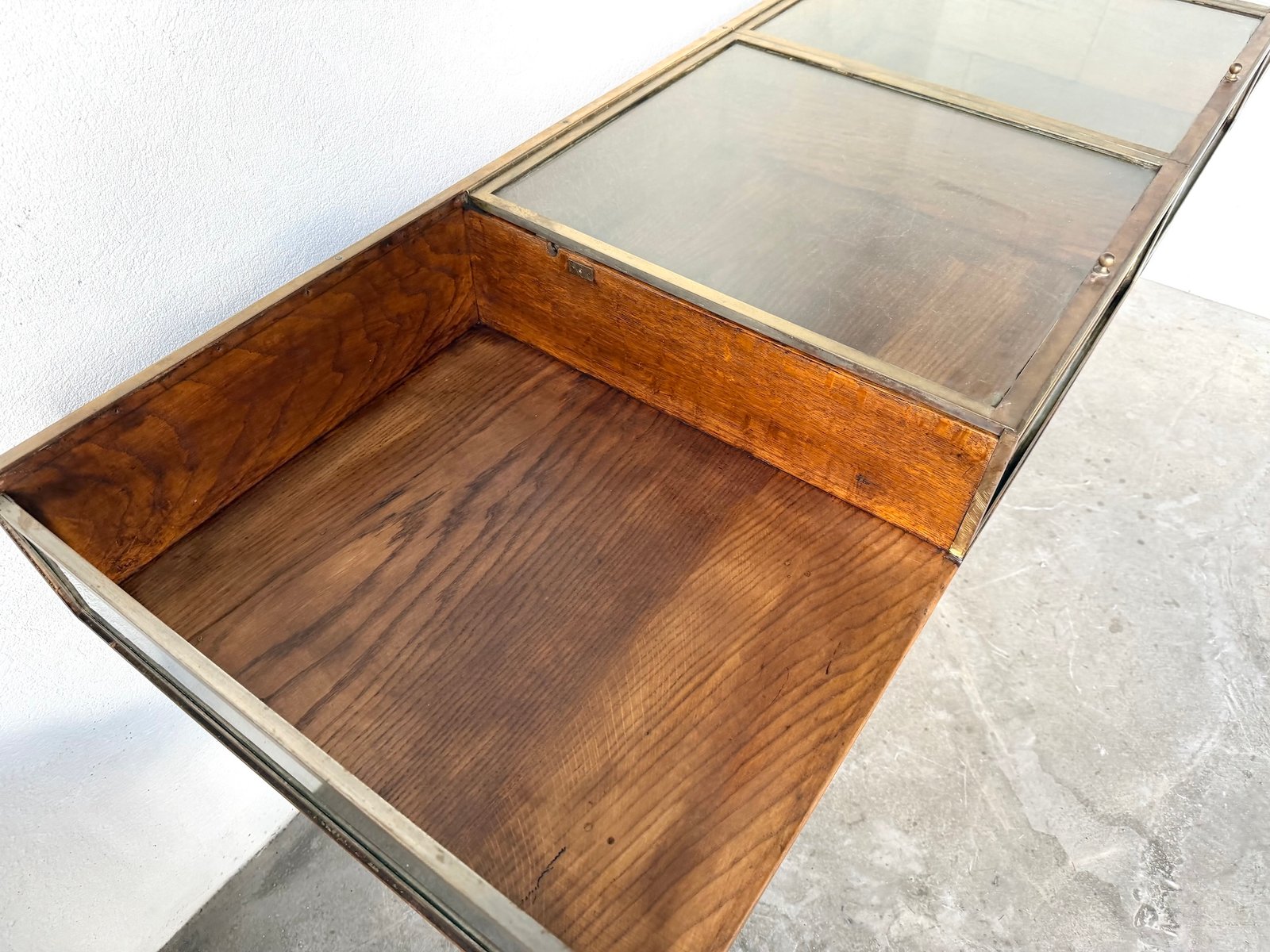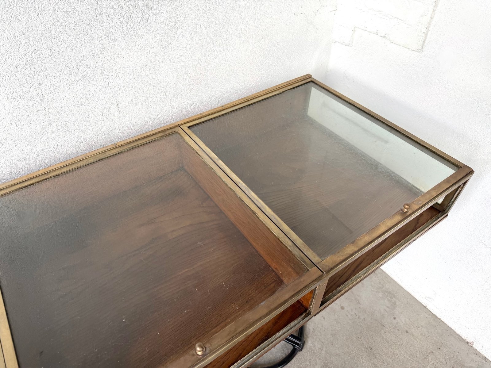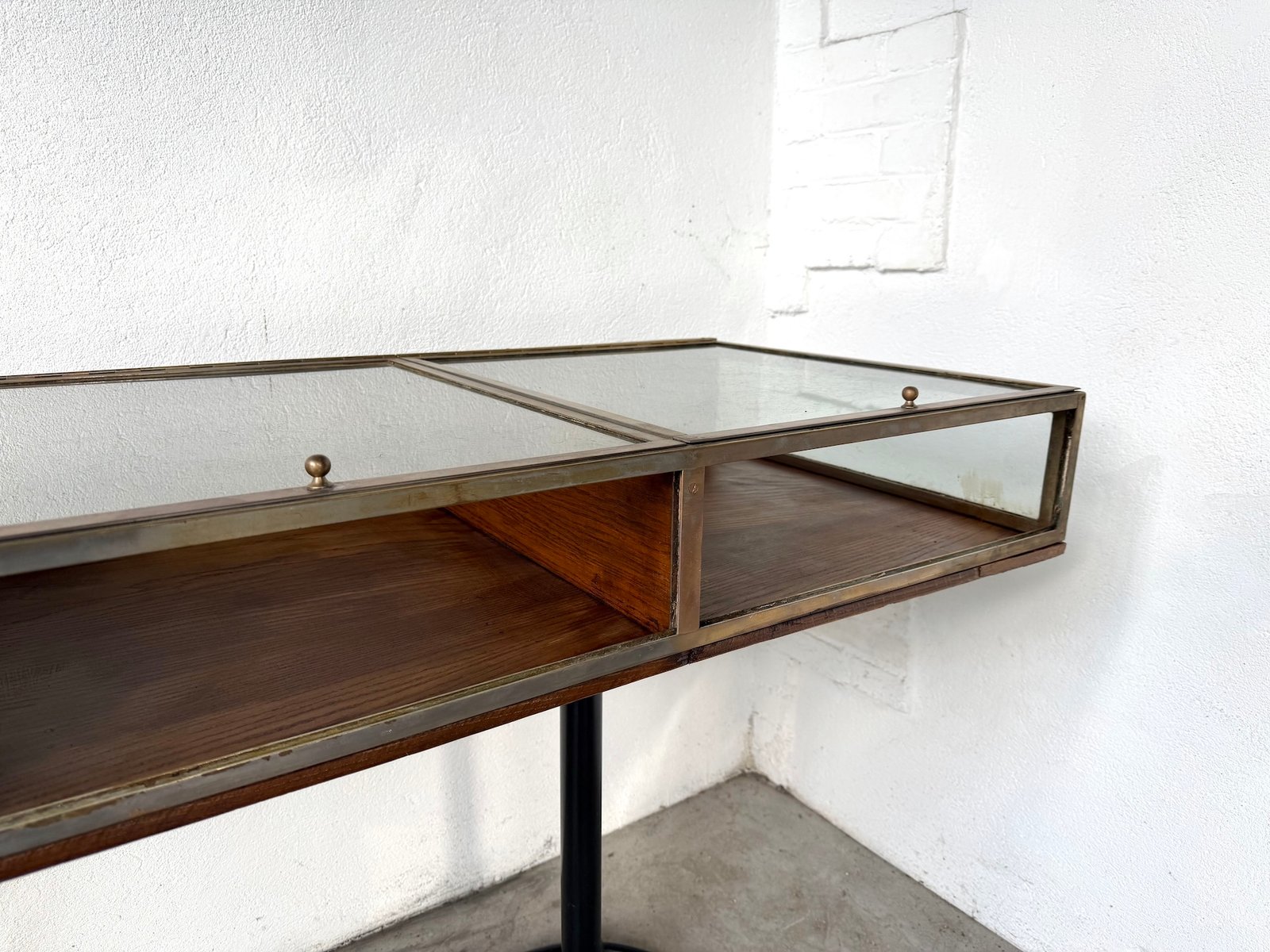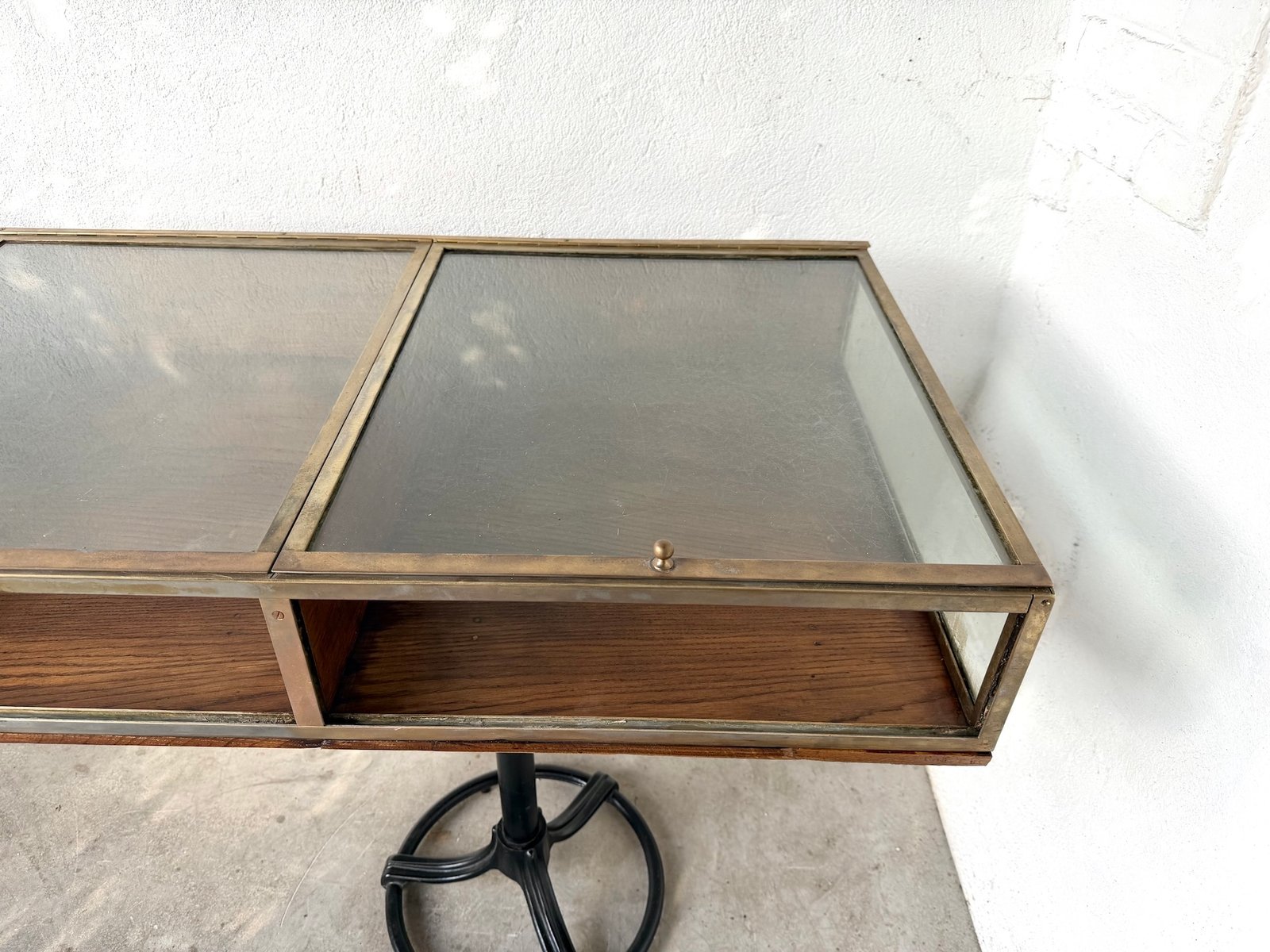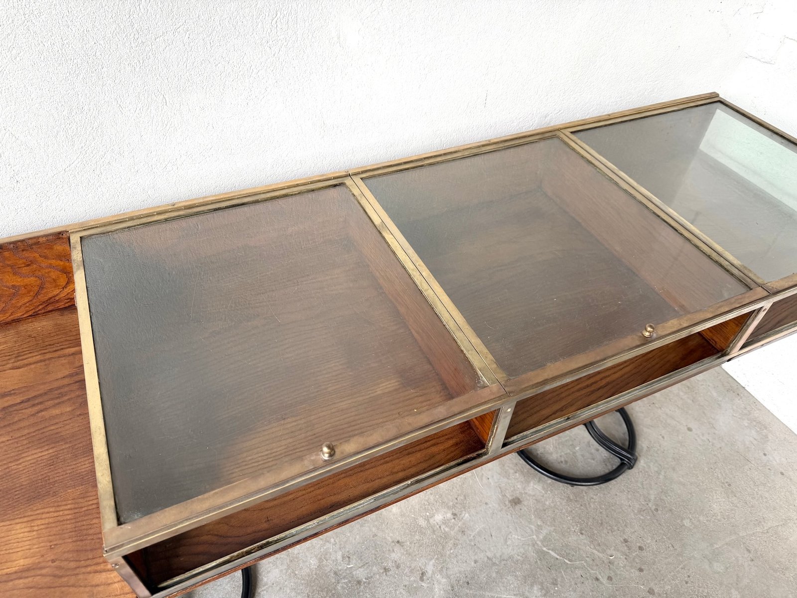 Display Cabinet on Legs in Oak and Brass-Plated Metal, 1950