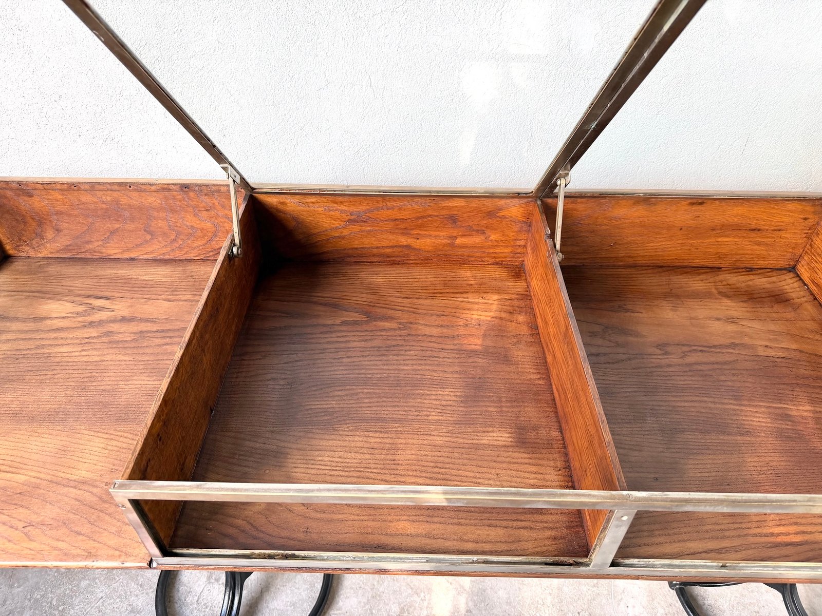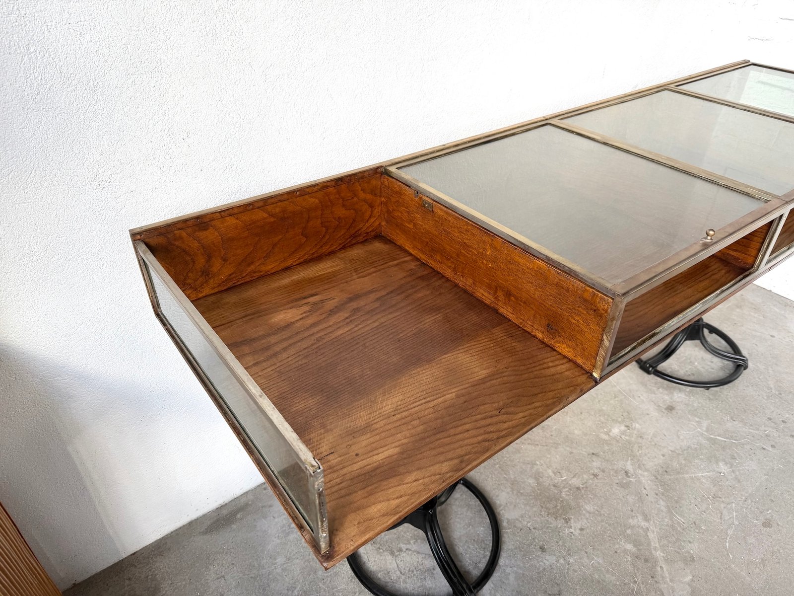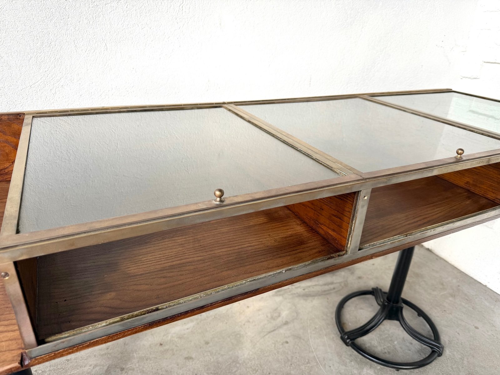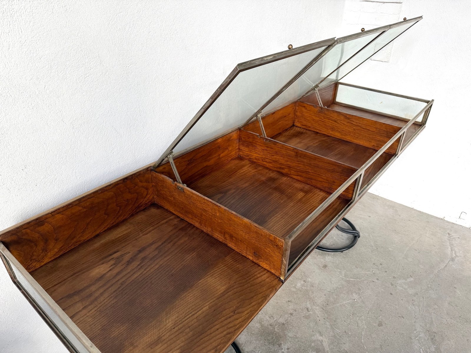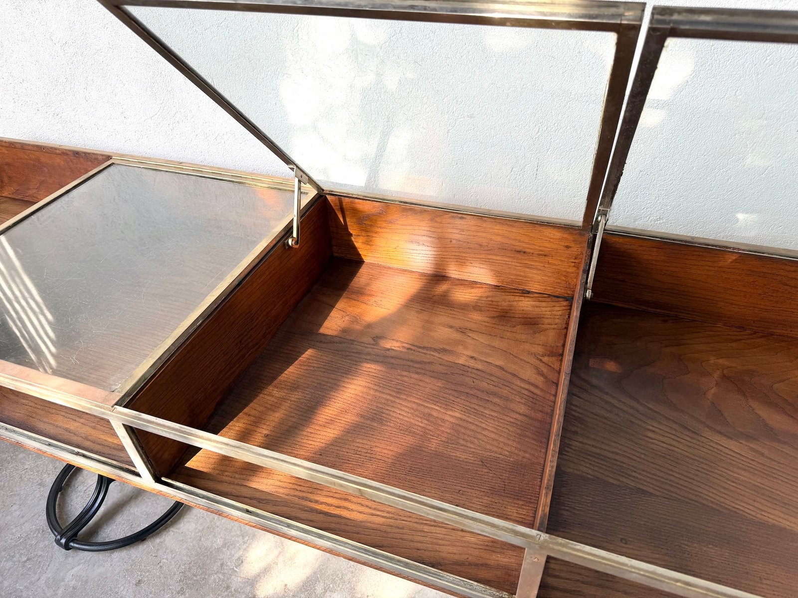 Display Cabinet on Legs in Oak and Brass-Plated Metal, 1950