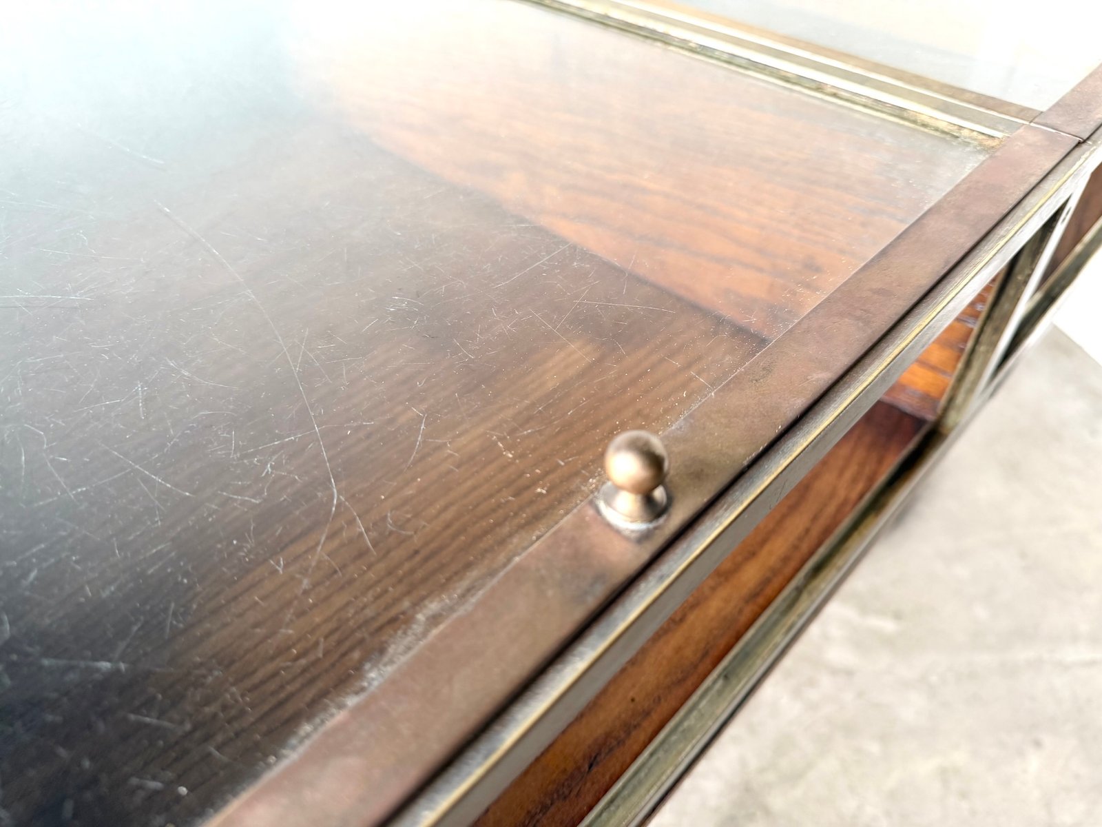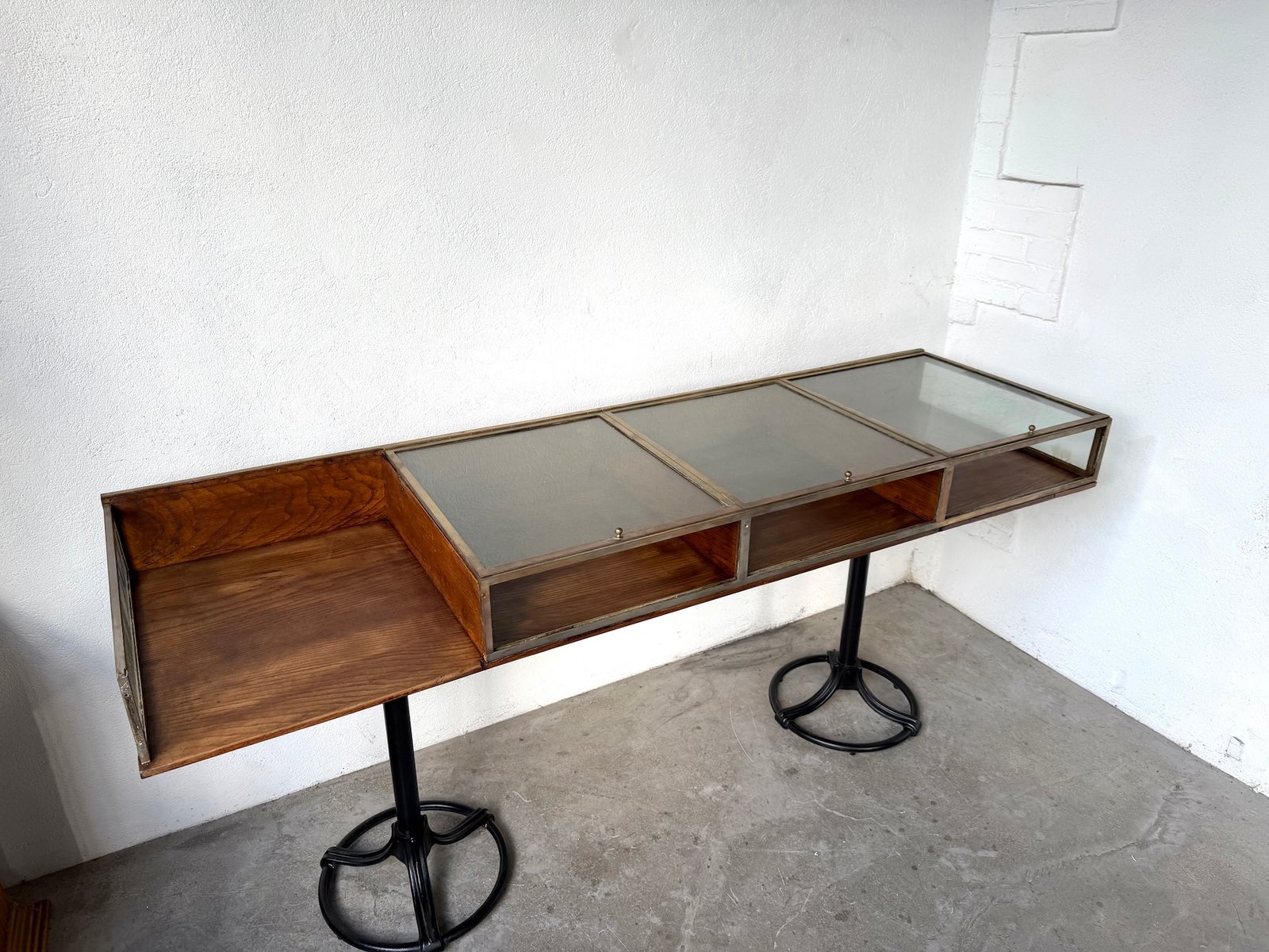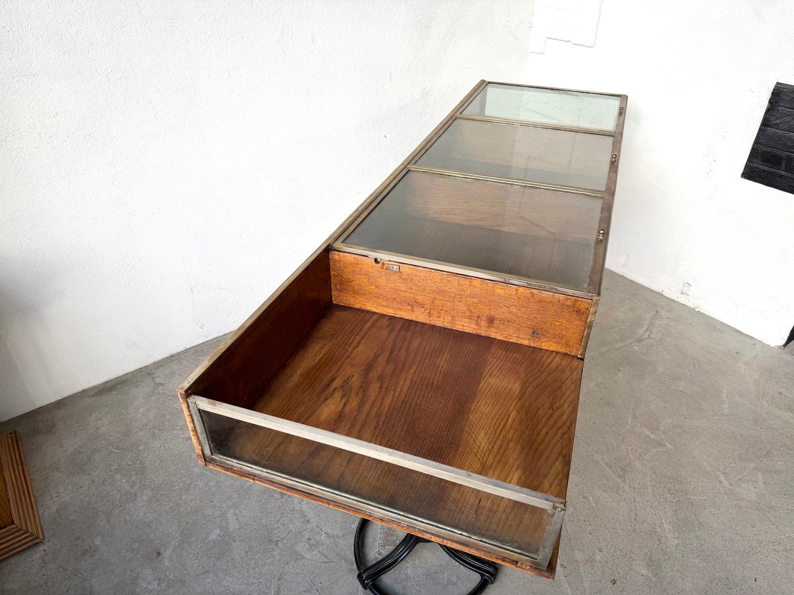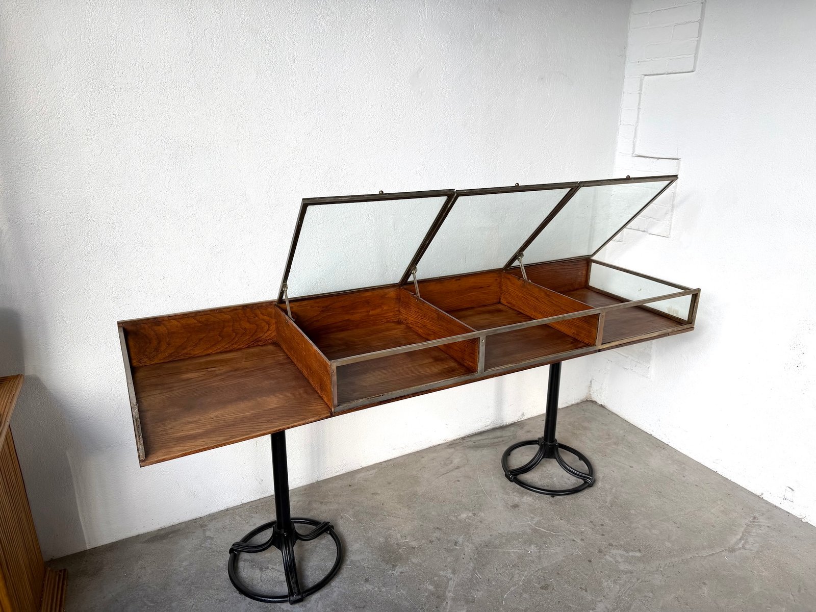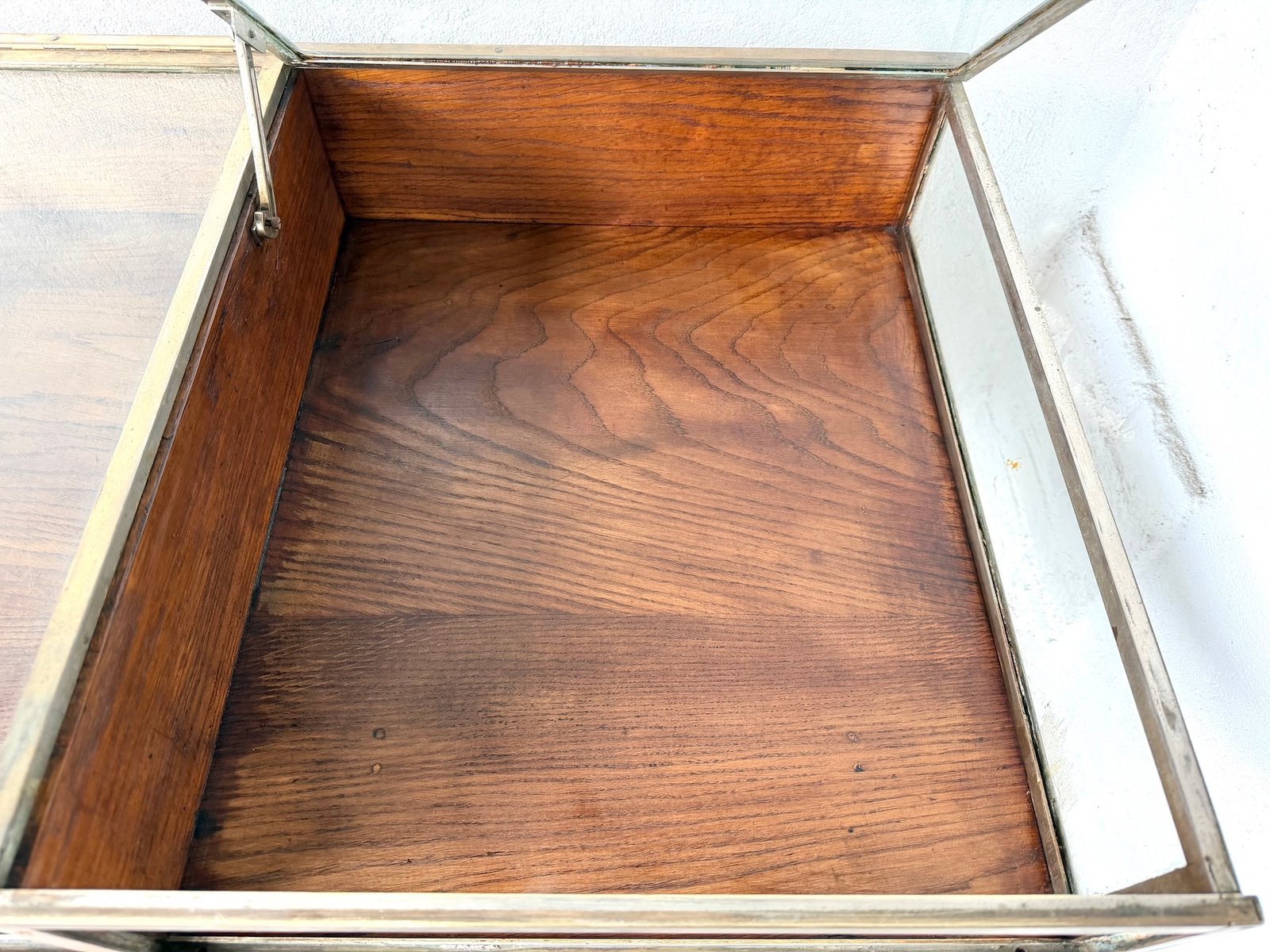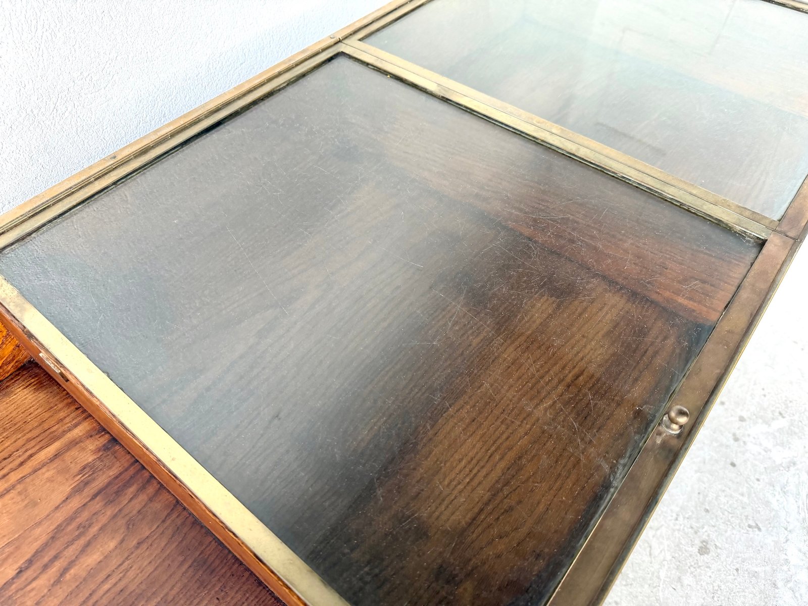 Display Cabinet on Legs in Oak and Brass-Plated Metal, 1950