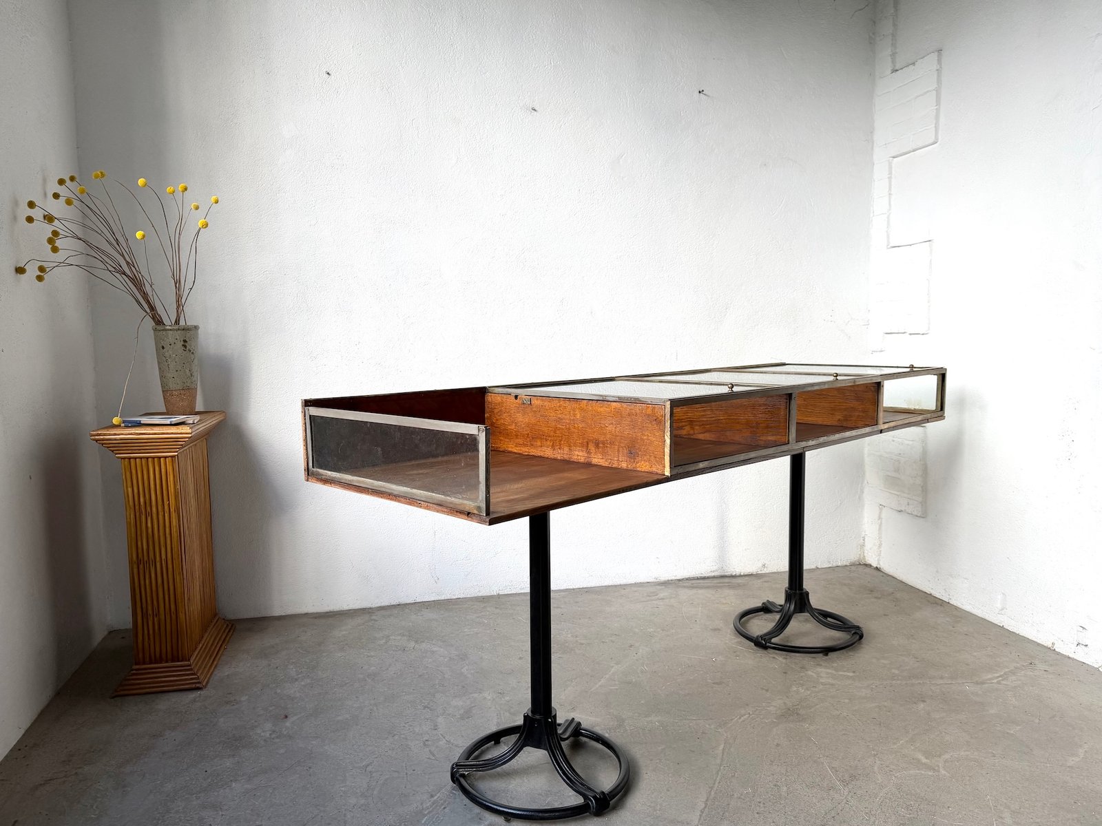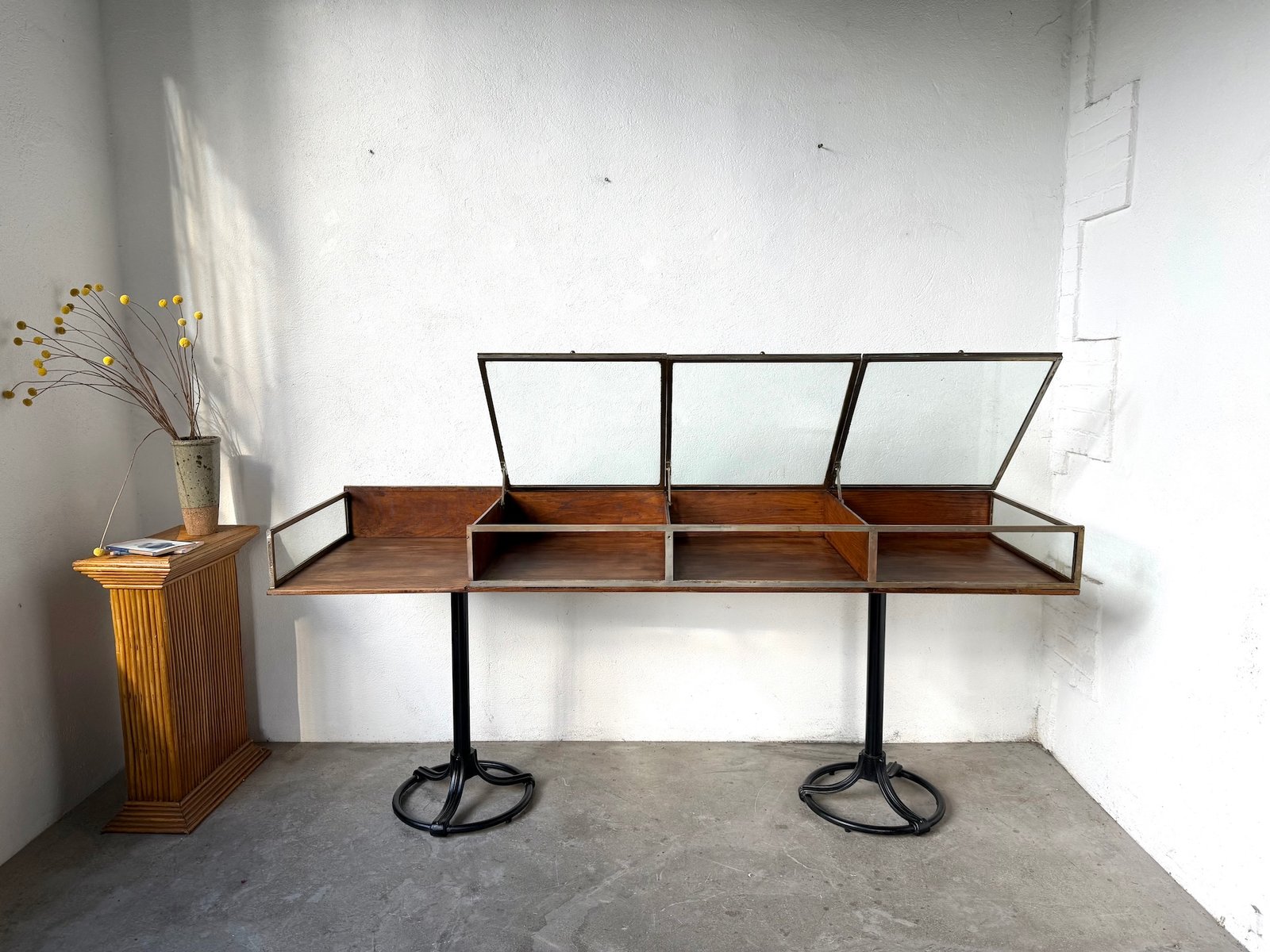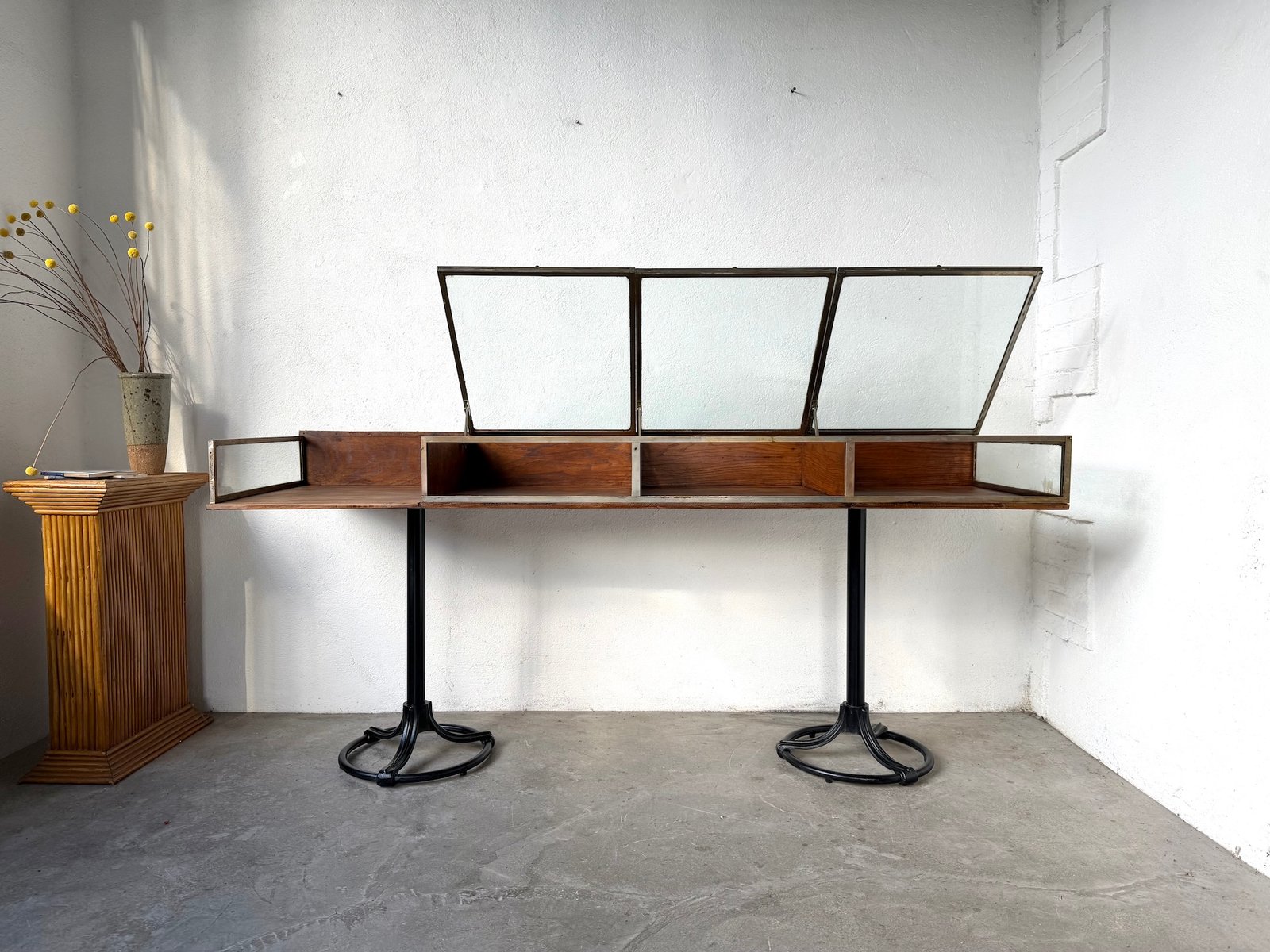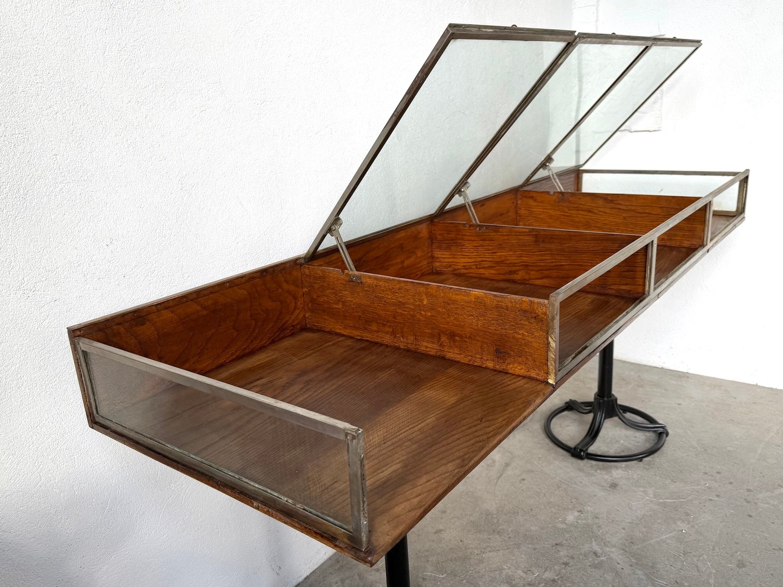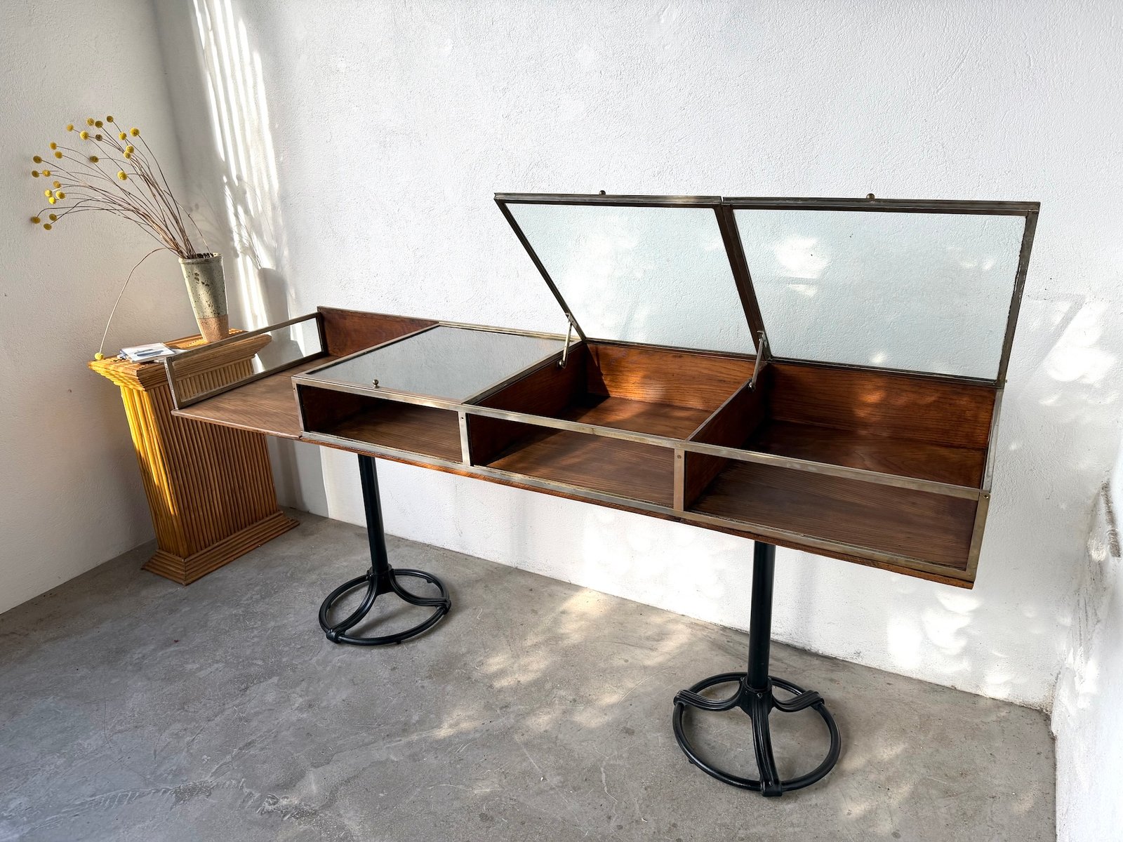 Display Cabinet on Legs in Oak and Brass-Plated Metal, 1950