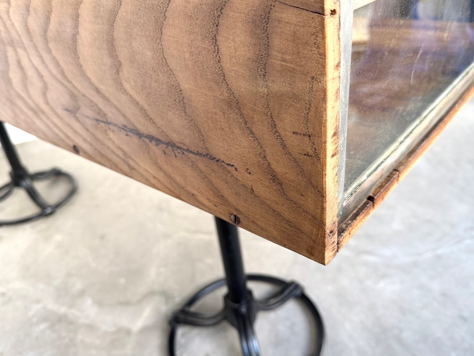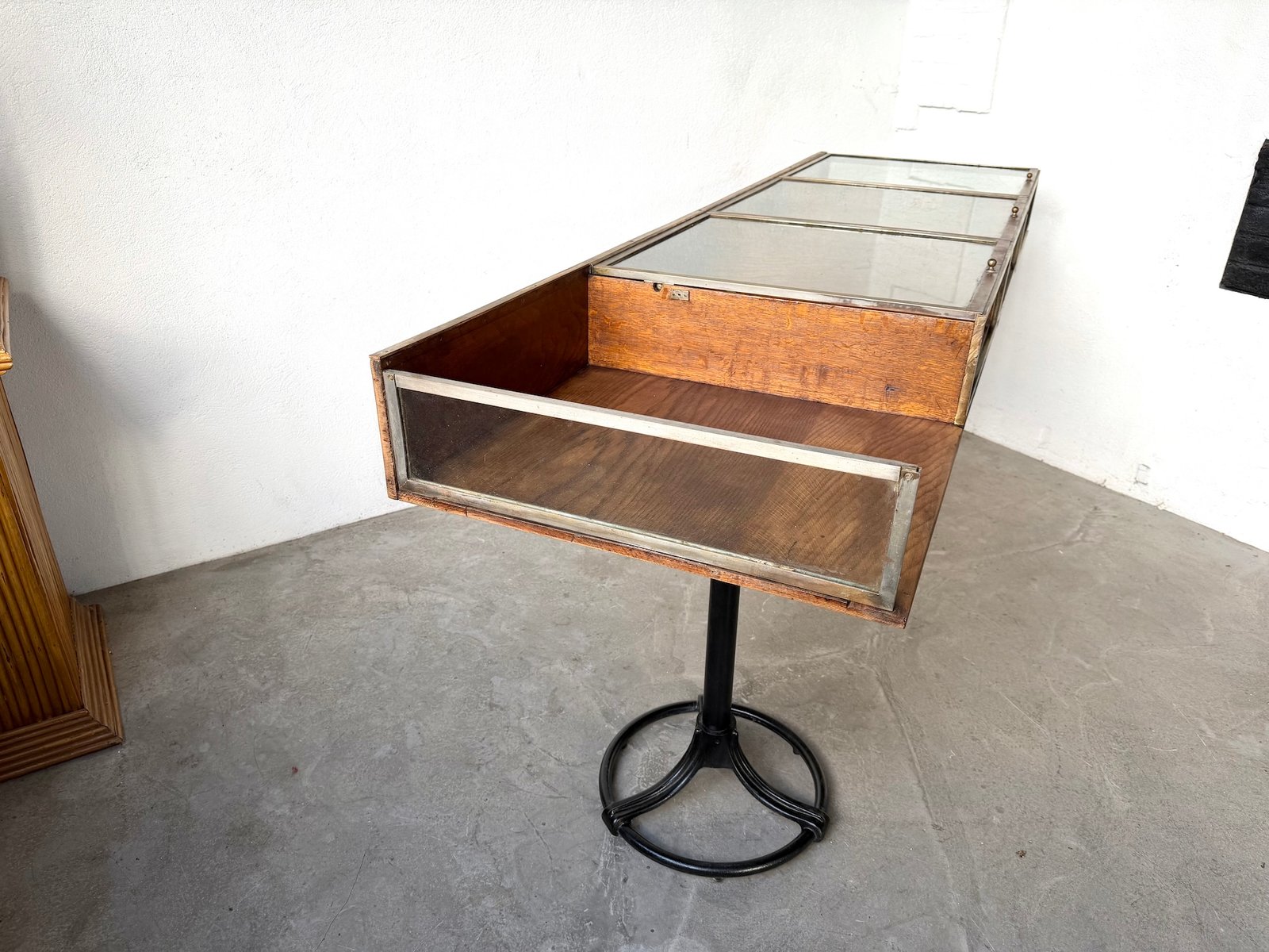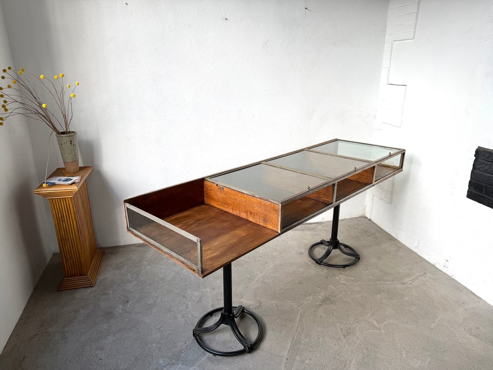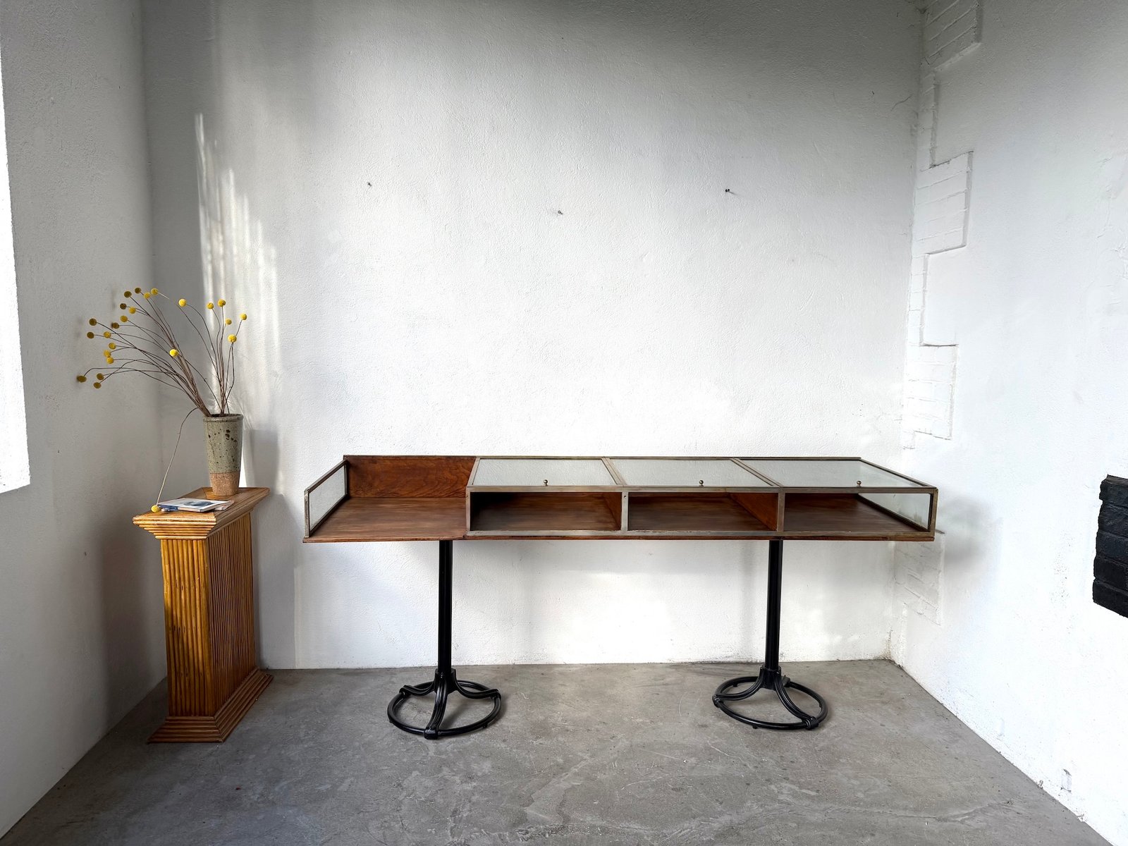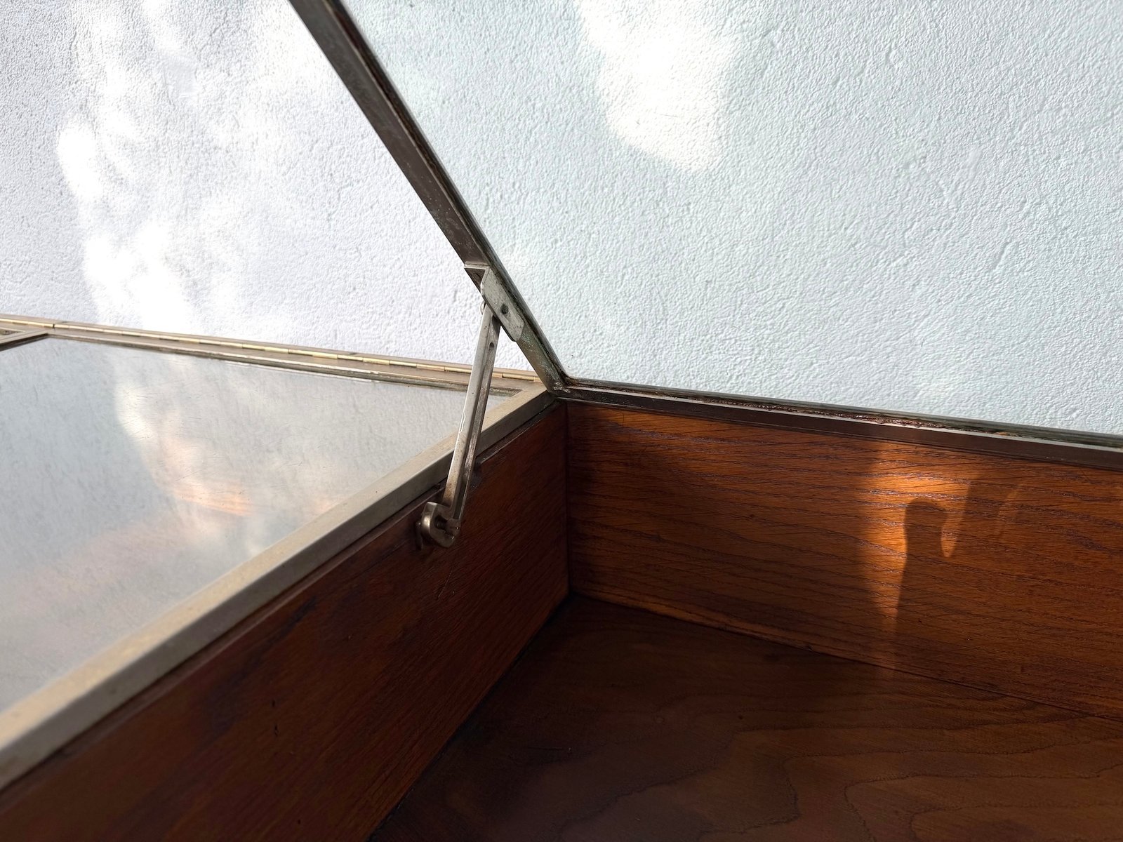 Display Cabinet on Legs in Oak and Brass-Plated Metal, 1950