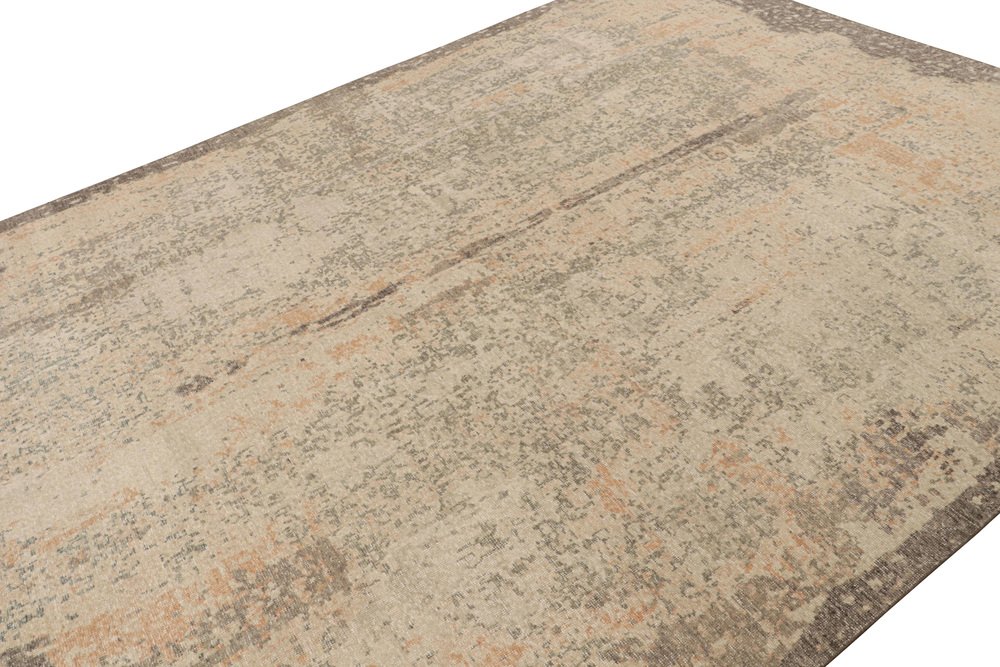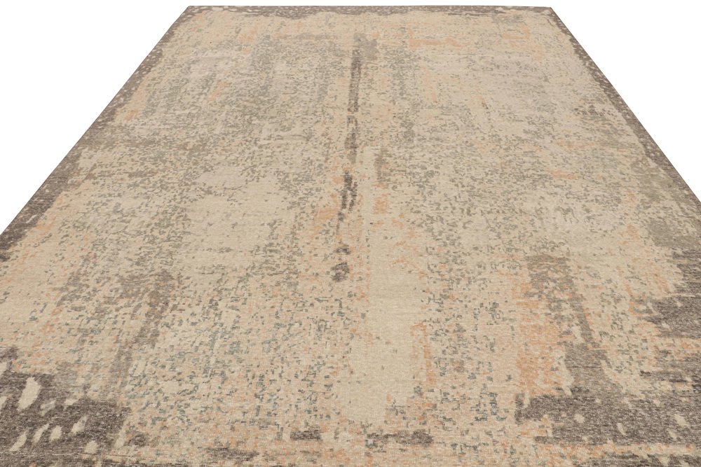 Distressed Abstract Rug in Beige and Gray Tones by Rug&Kilim