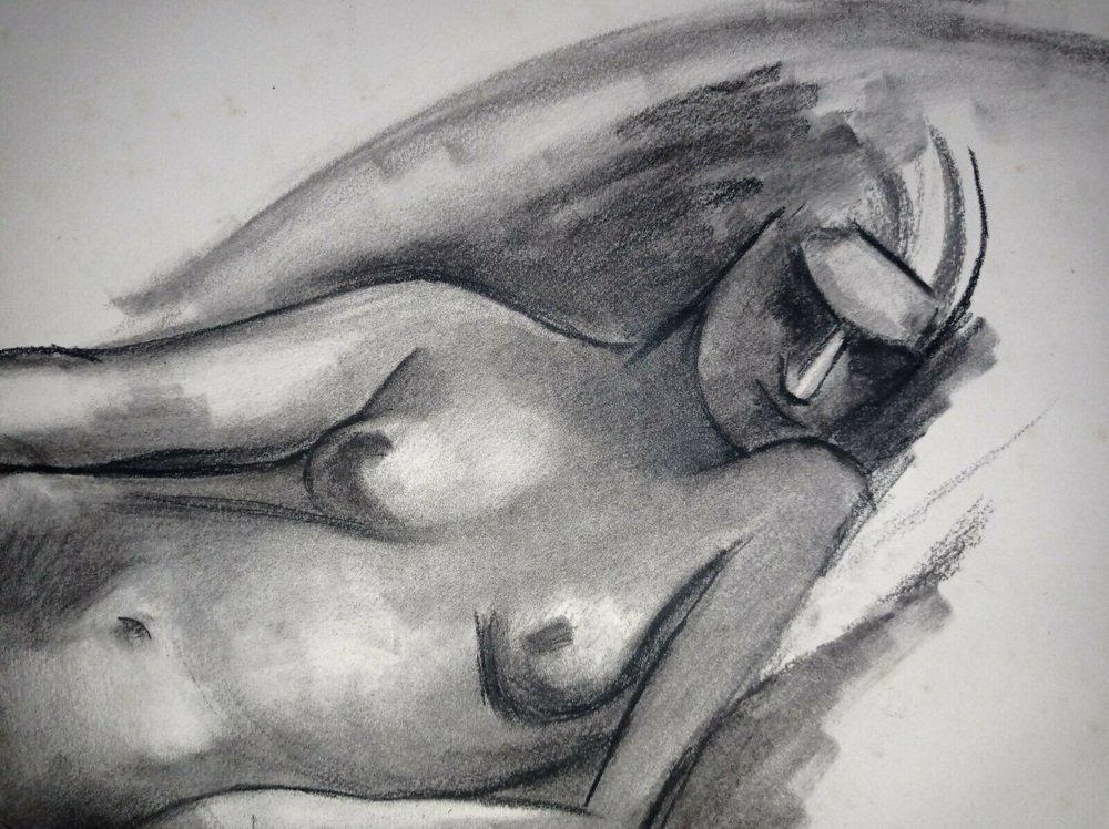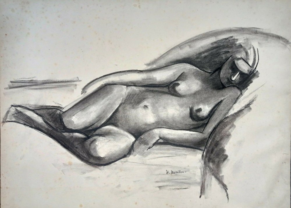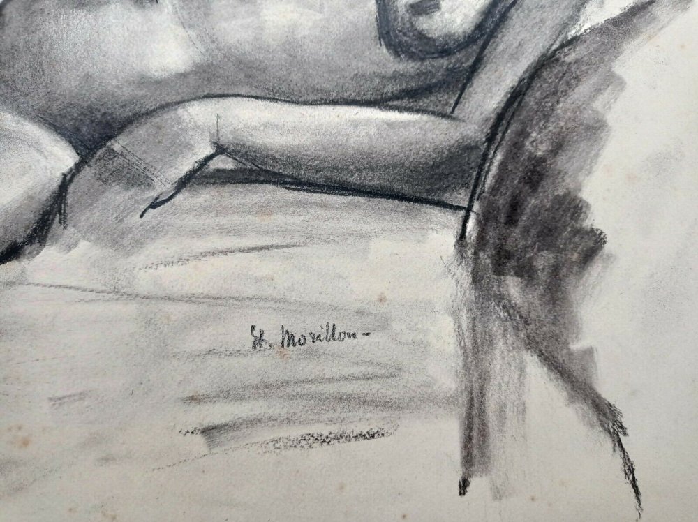 Etienne Morillon, Art Deco Nude, 1920s-1930s, Charcoal on Paper