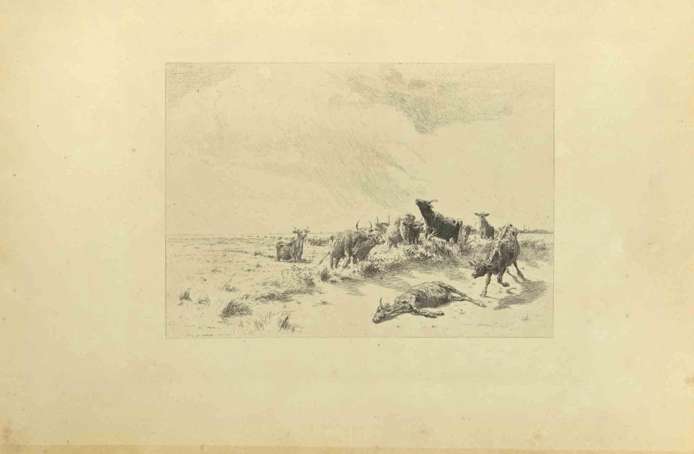 Eugène Burnand, Herd, Etching, Late 19th Century