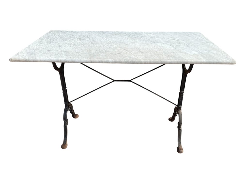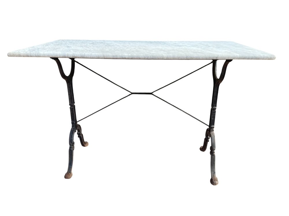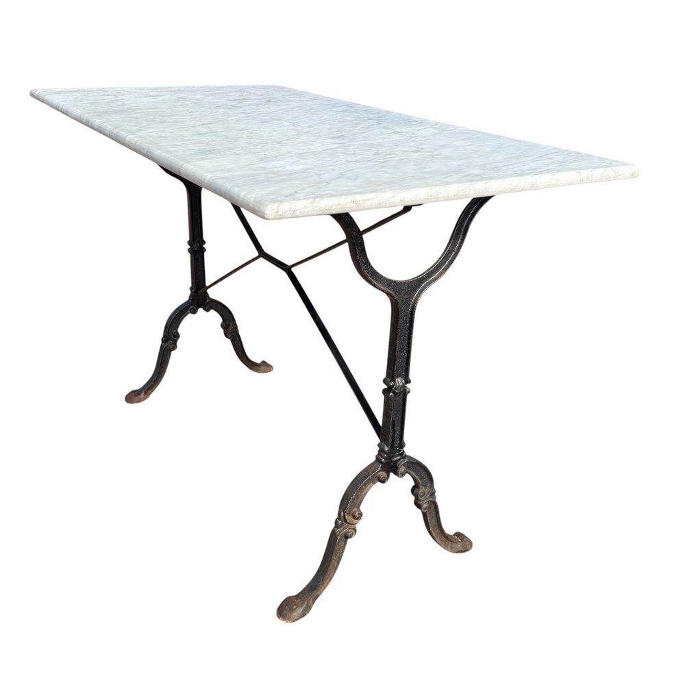 French Cast Iron and Marble Bistro Table, 1960s