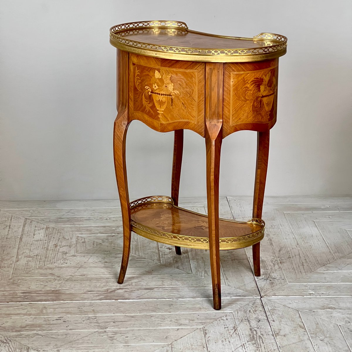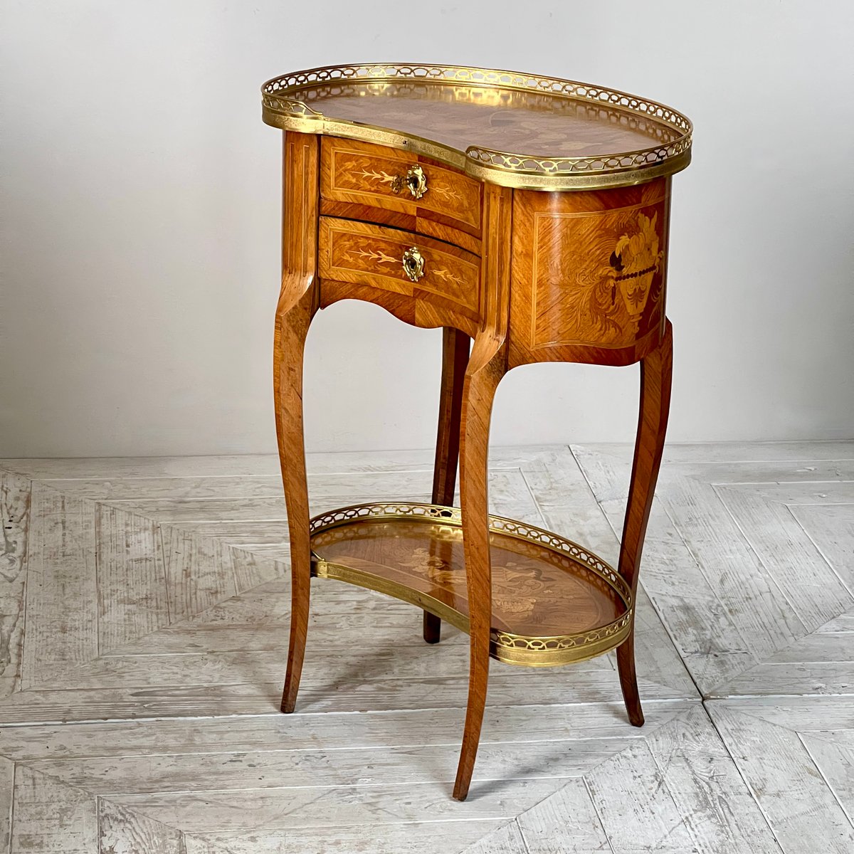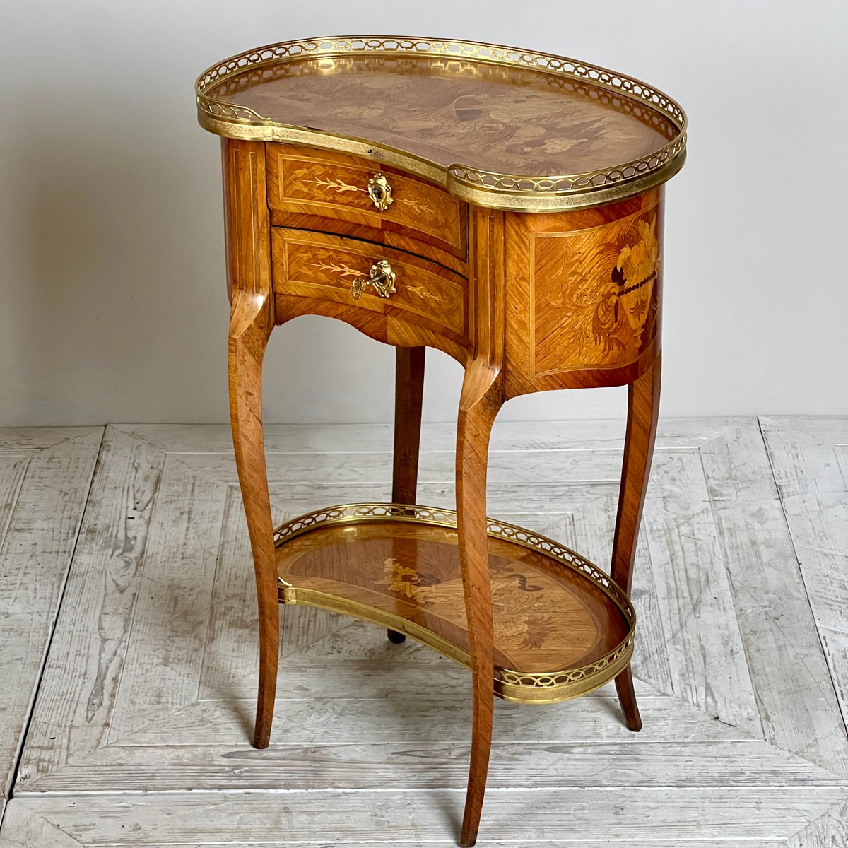 French Kingwood and Marquetry Inlaid Kidney Shaped Side Table