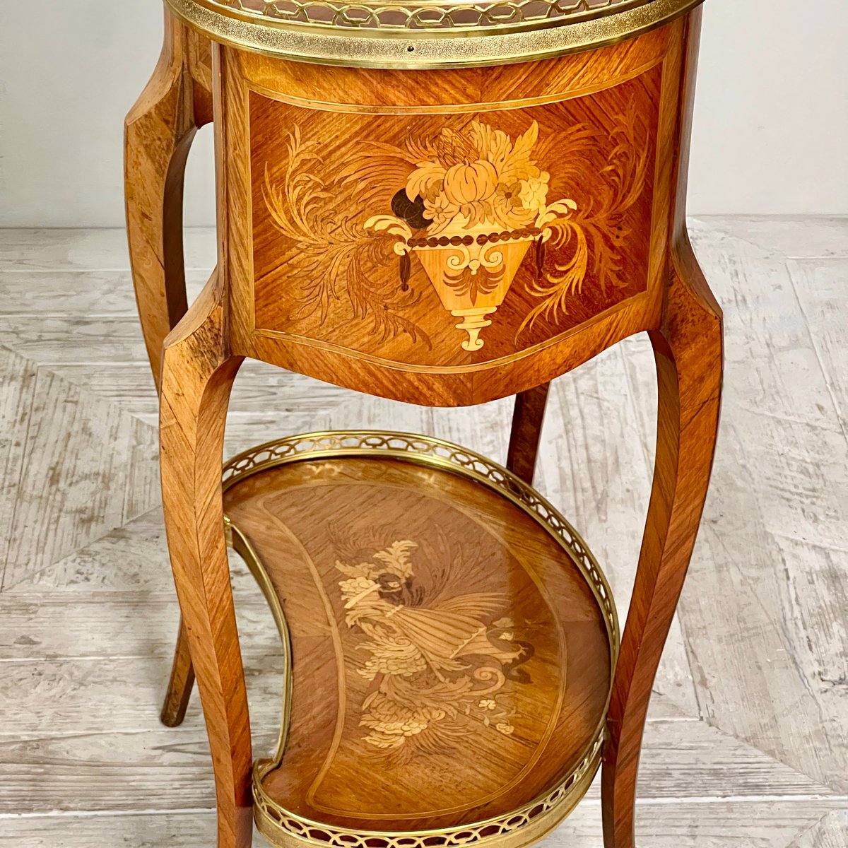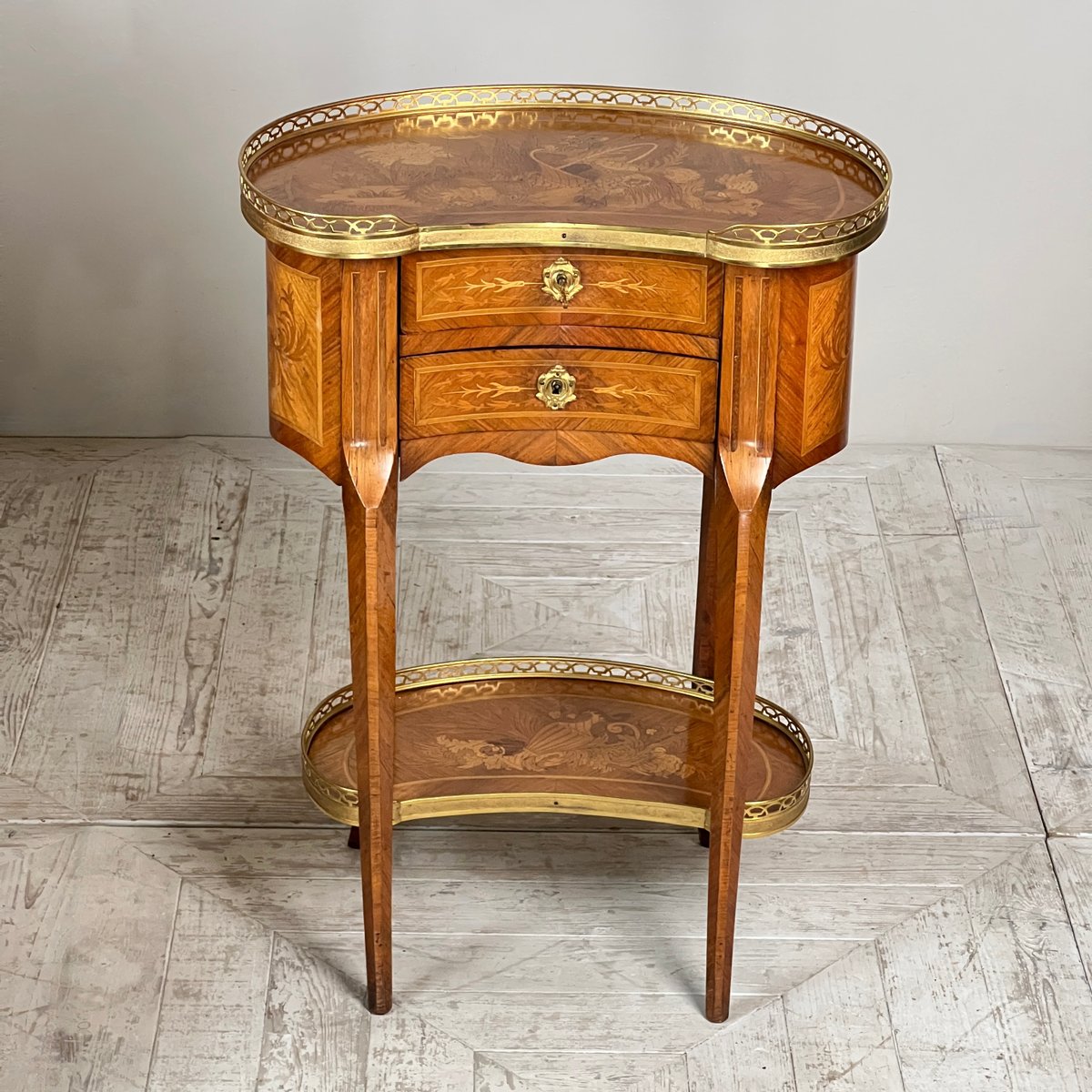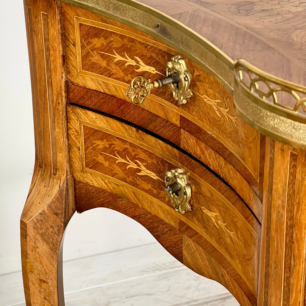 French Kingwood and Marquetry Inlaid Kidney Shaped Side Table