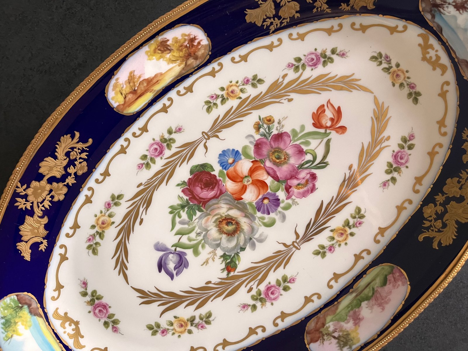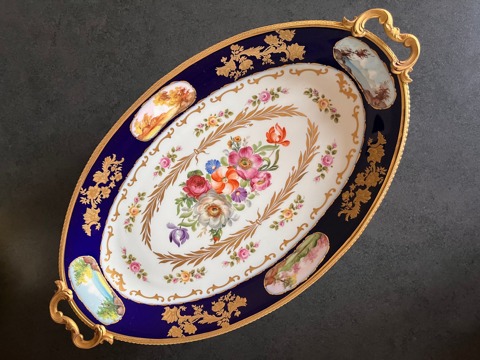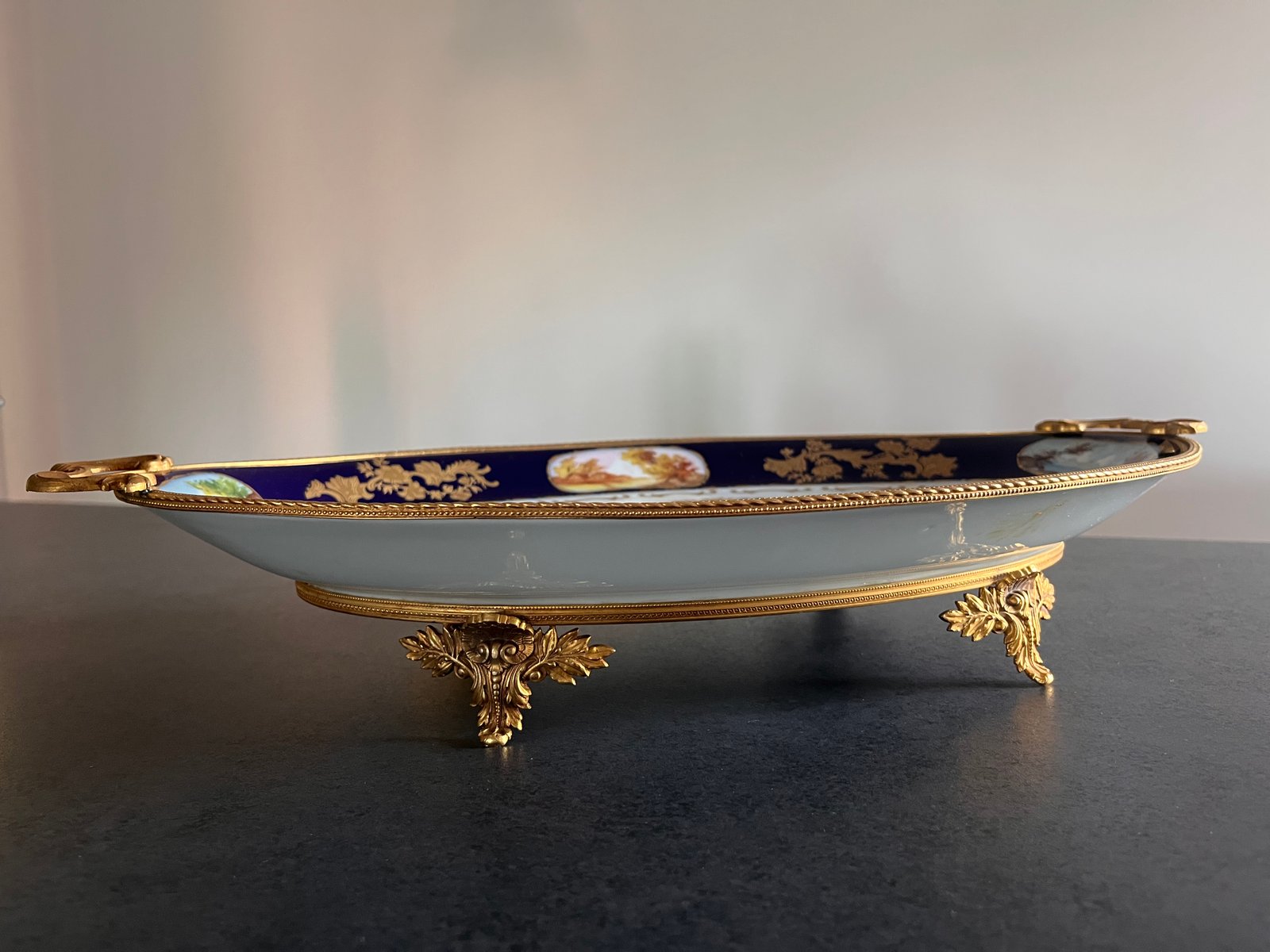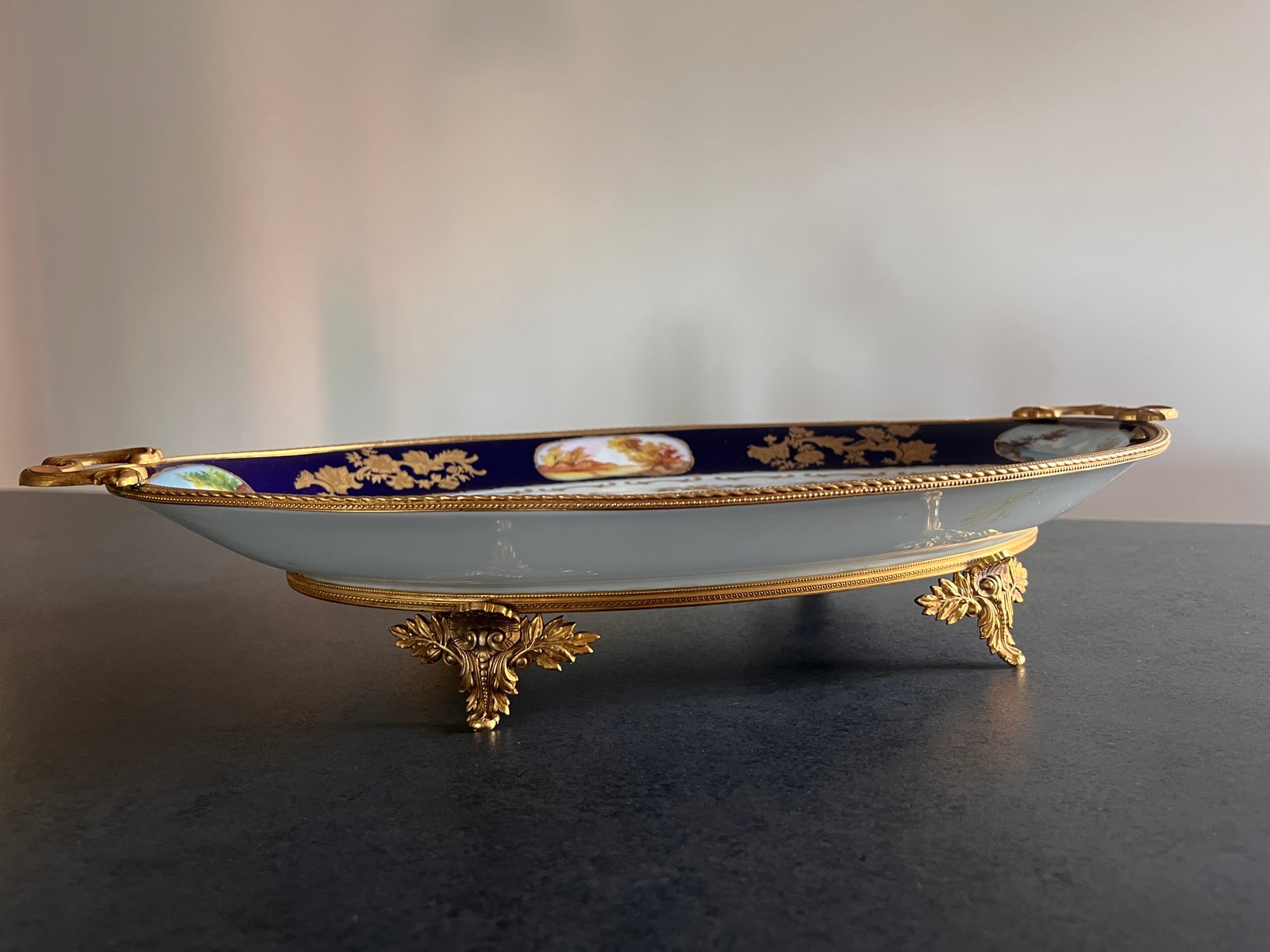 French Louis XV Hand-Painted Blue Ceramic Stand, 1890s