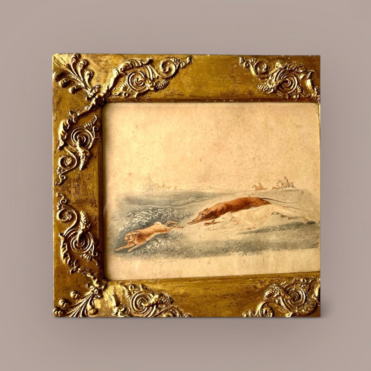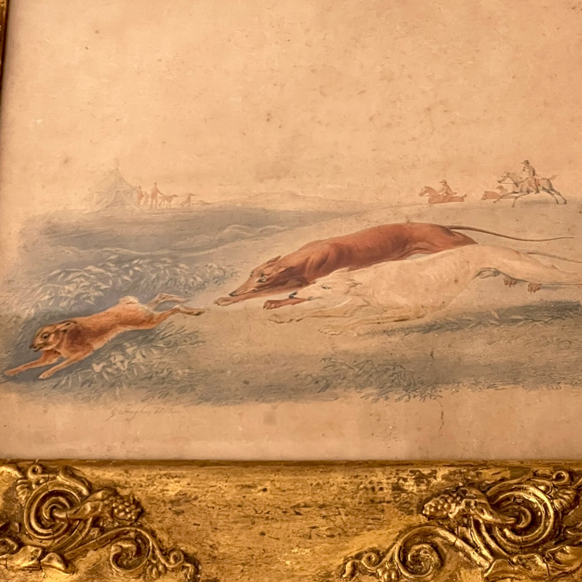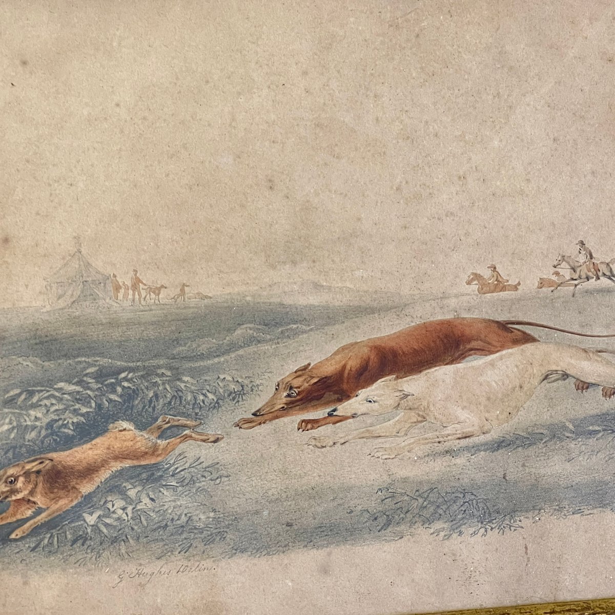 George Hughes, Coursing Greyhounds, Lurchers, 1800s, Watercolour