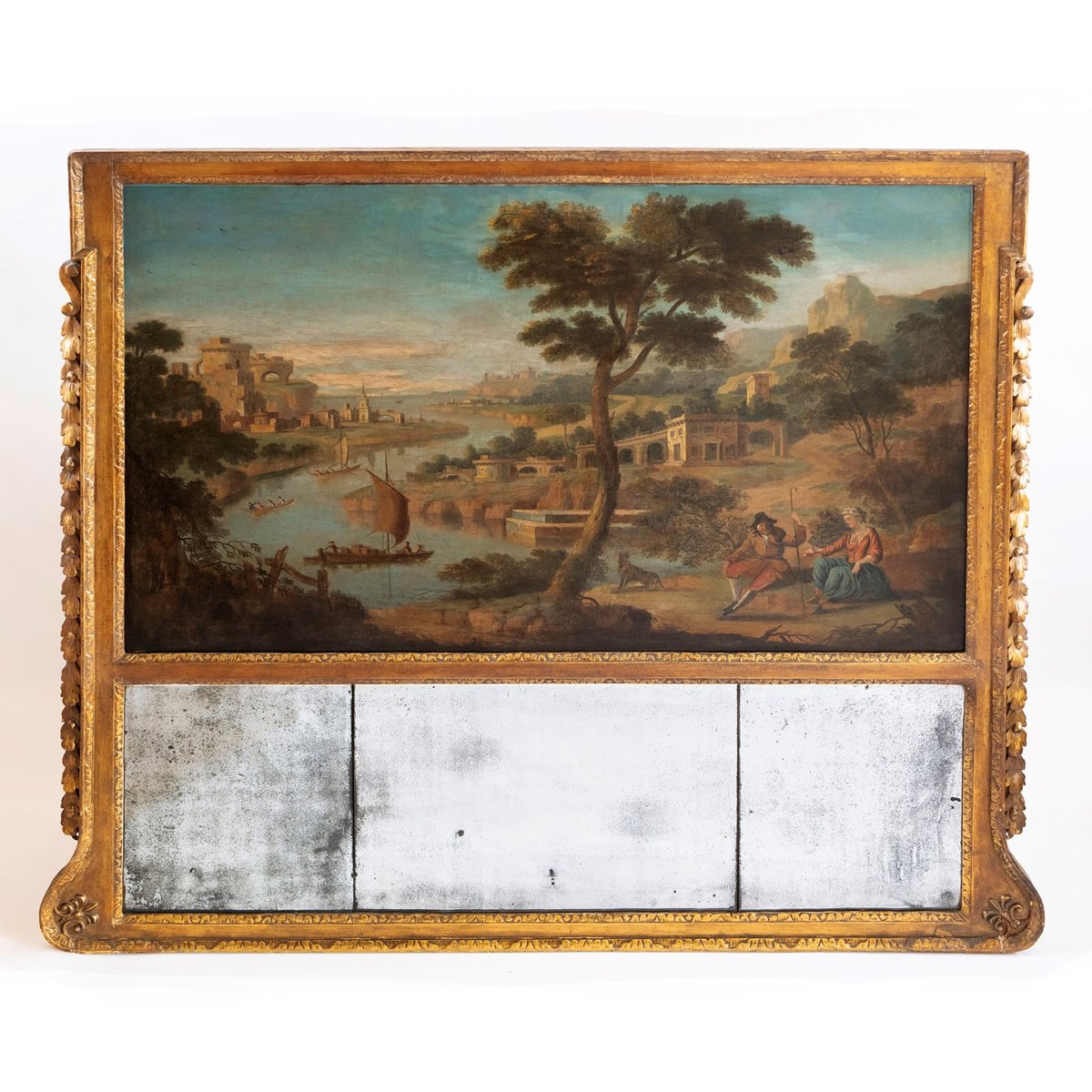 Georgian Giltwood Overmantel Trumeau Mirror, 1750