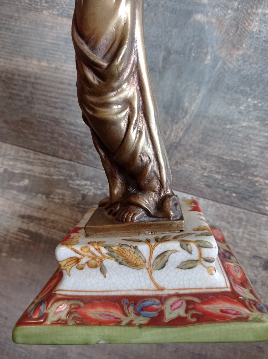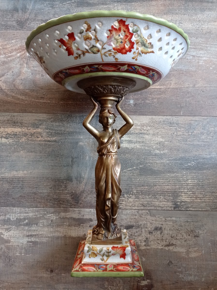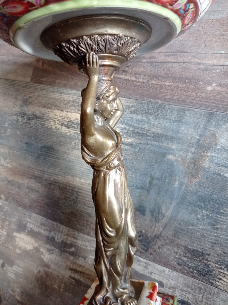 Gilded Metal and Porcelain Sculpture or Centerpiece by Wong Lee, 1895