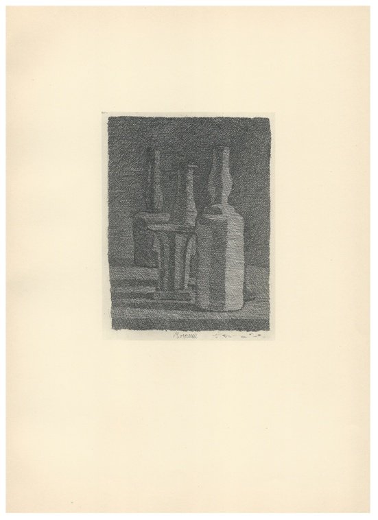Giorgio Morandi, Still Life with Vase and Three Bottles, 1945-1957, Lithograph