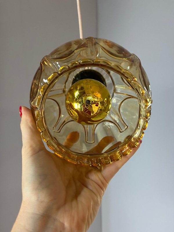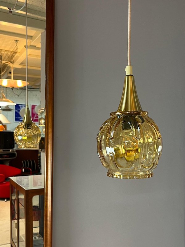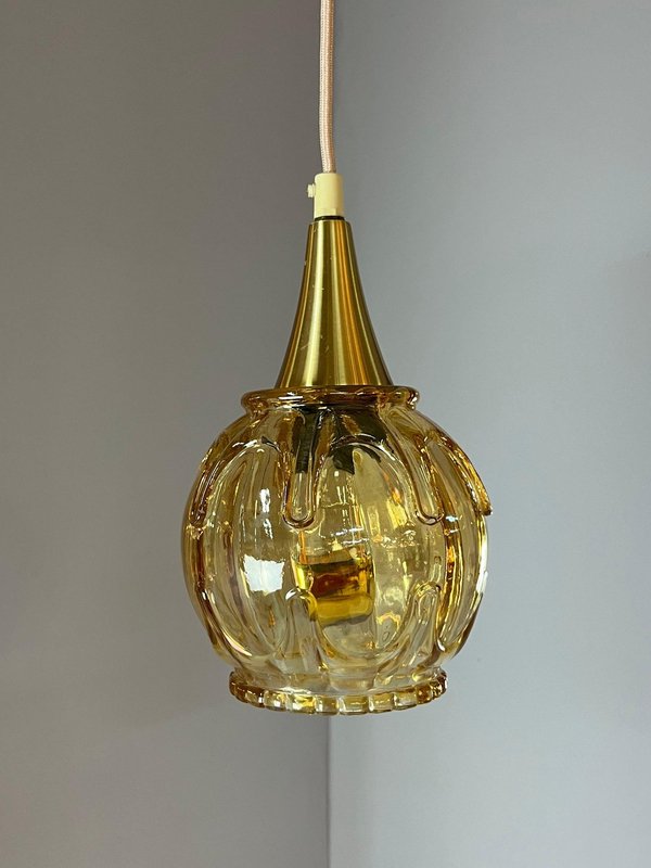 Hanging Lamp in Yellow Gold Glass with Brass